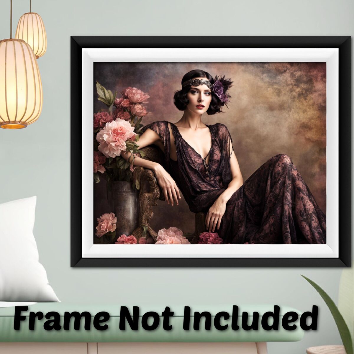 Retro Art Print Art Deco Gatsby Wall Art Painting Print Gatsby Old Hollywood Girl At Piano Glamour Retro Poster 1920s Flapper Wall Art
