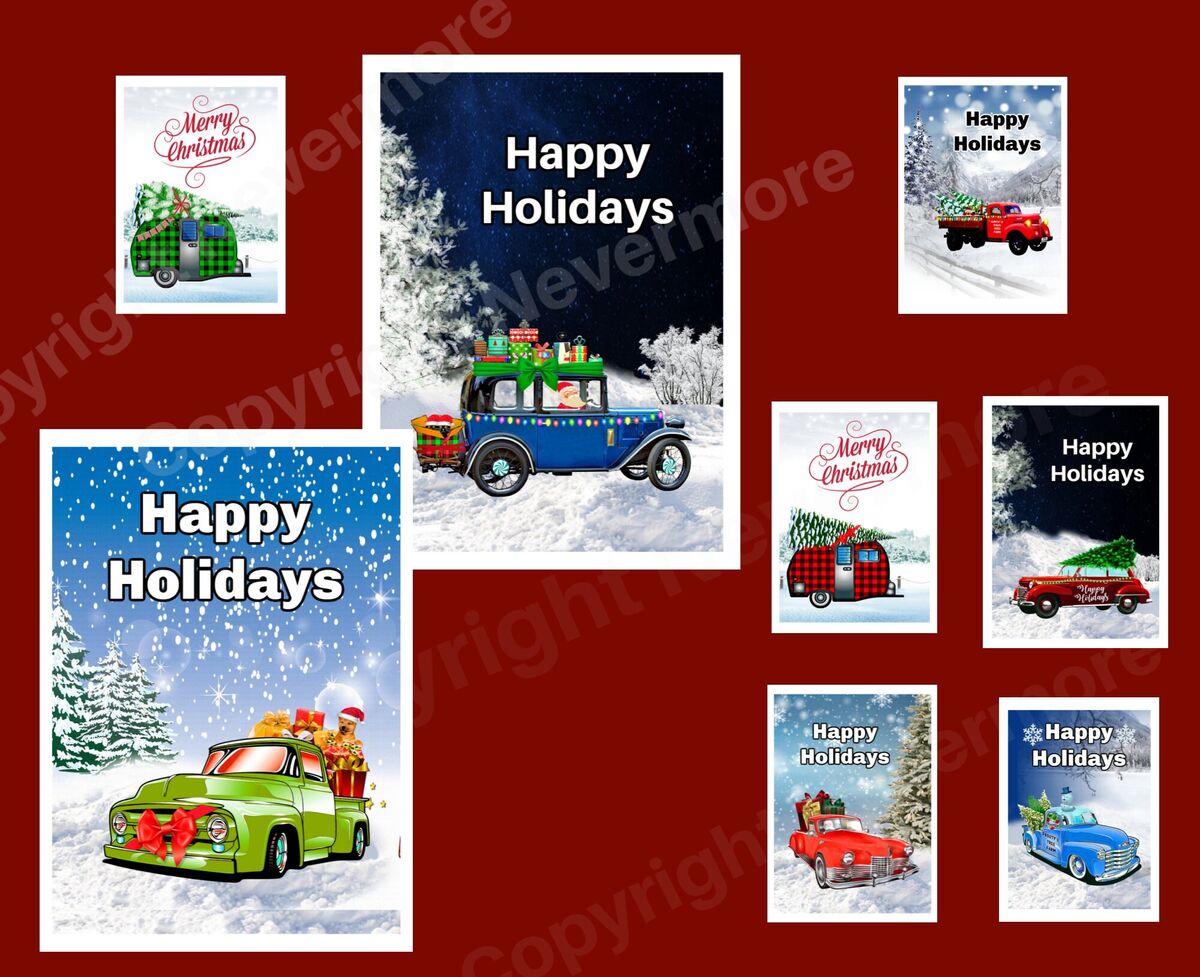 Retro Christmas DIY Printable Card Set Of 8 Vintage Car Trucks Campers DIY Altered Art Digital Instant Download