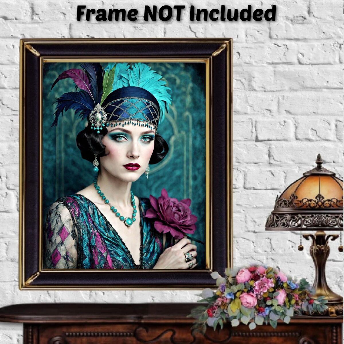 Art Deco Wall Art Showgirl Zeigfeld Girl Canvas Wall Art Print Gatsby GIrl Portrait 1920s Gatsby Style Home Decor Painting Print