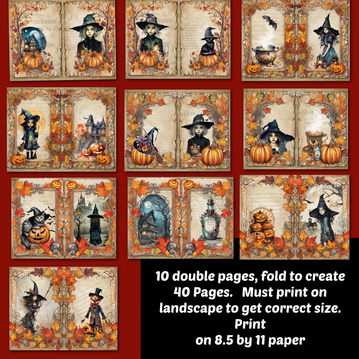 Retro Halloween Witch Journal Pages Shabby Cats Scarecrow Pumpkins Printable Journal Junk Kit Vintage Ephemera Paper Digital Download