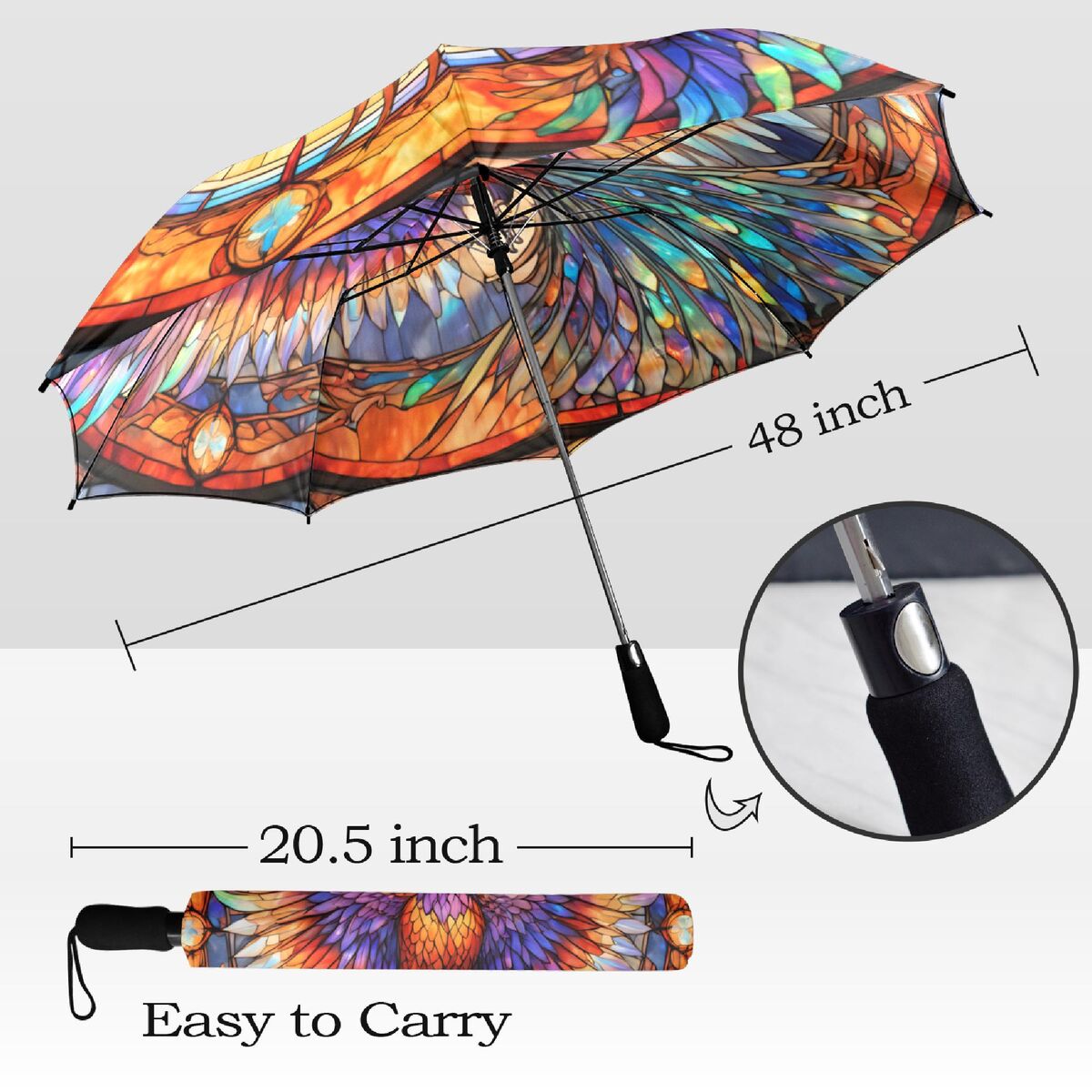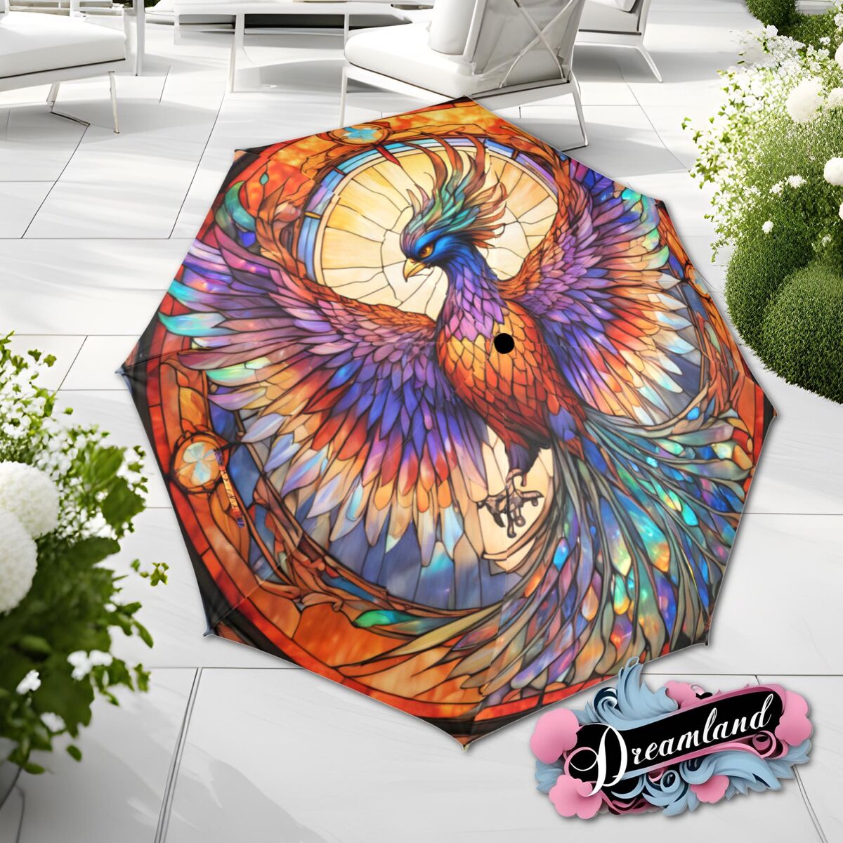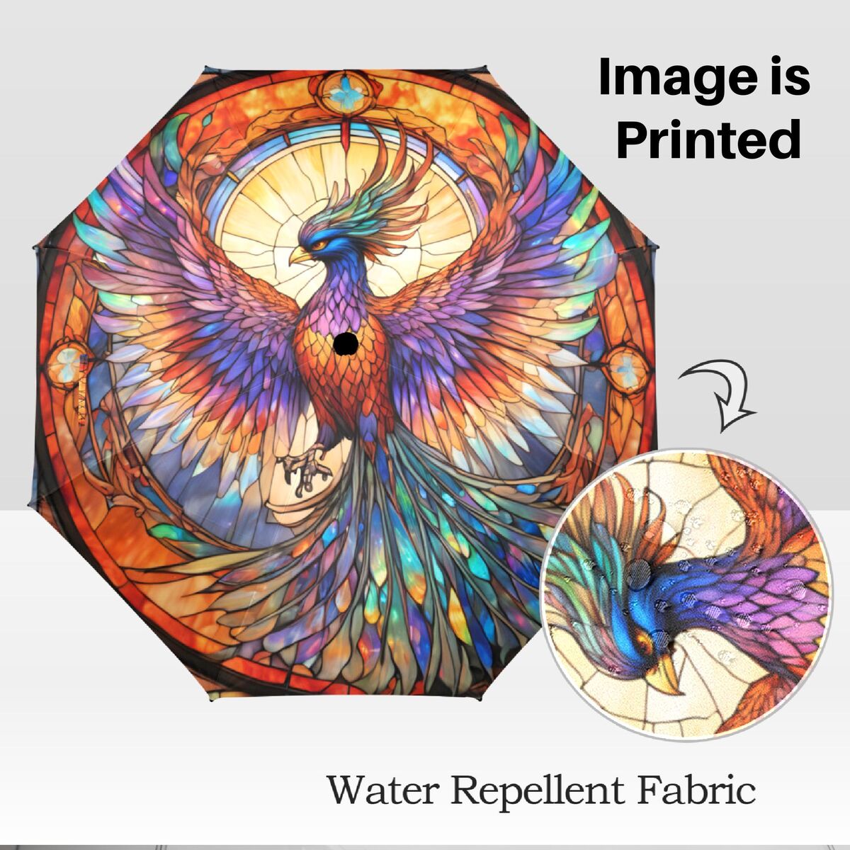 Rising Phoenix Stained Glass Umbrella Parasol Semi-Automatic Waterproof Foldable Umbrella