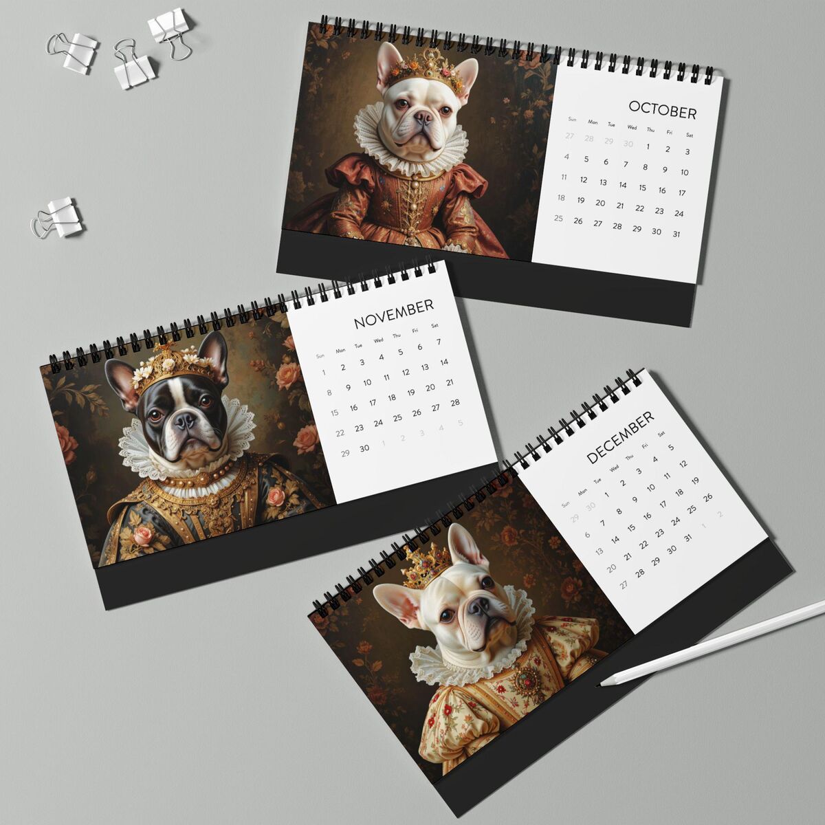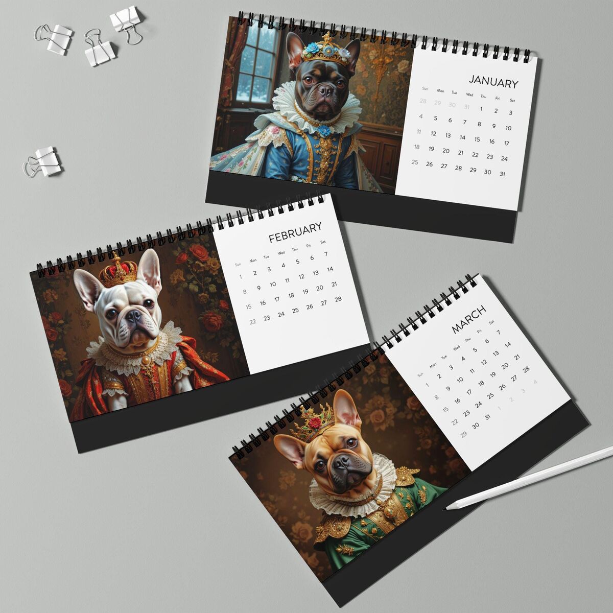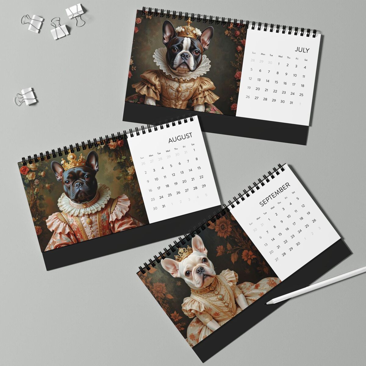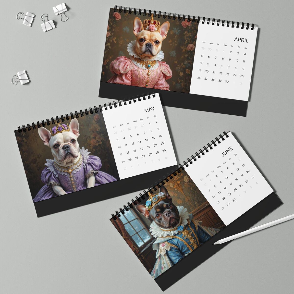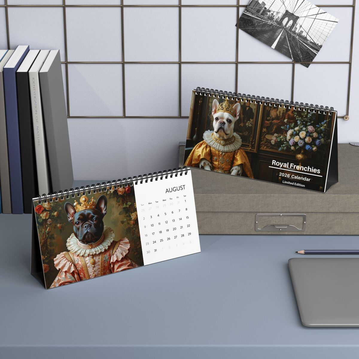 Royal Frenchies Desktop 2026 Calendar Spiral Cute Dog French Bulldog Animals Desk Office Home Office Decor Planner