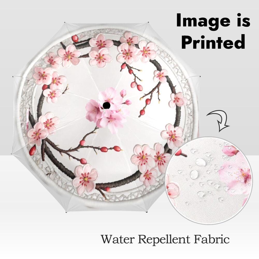 Sakura Romantic Umbrella Victorian Inspired Pink Flower Parasol Semi-Automatic Waterproof Foldable Umbrella