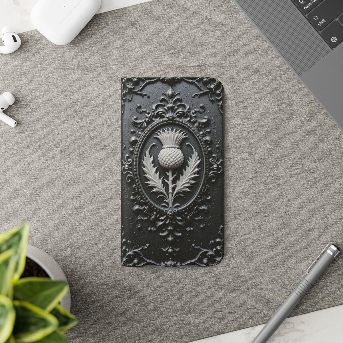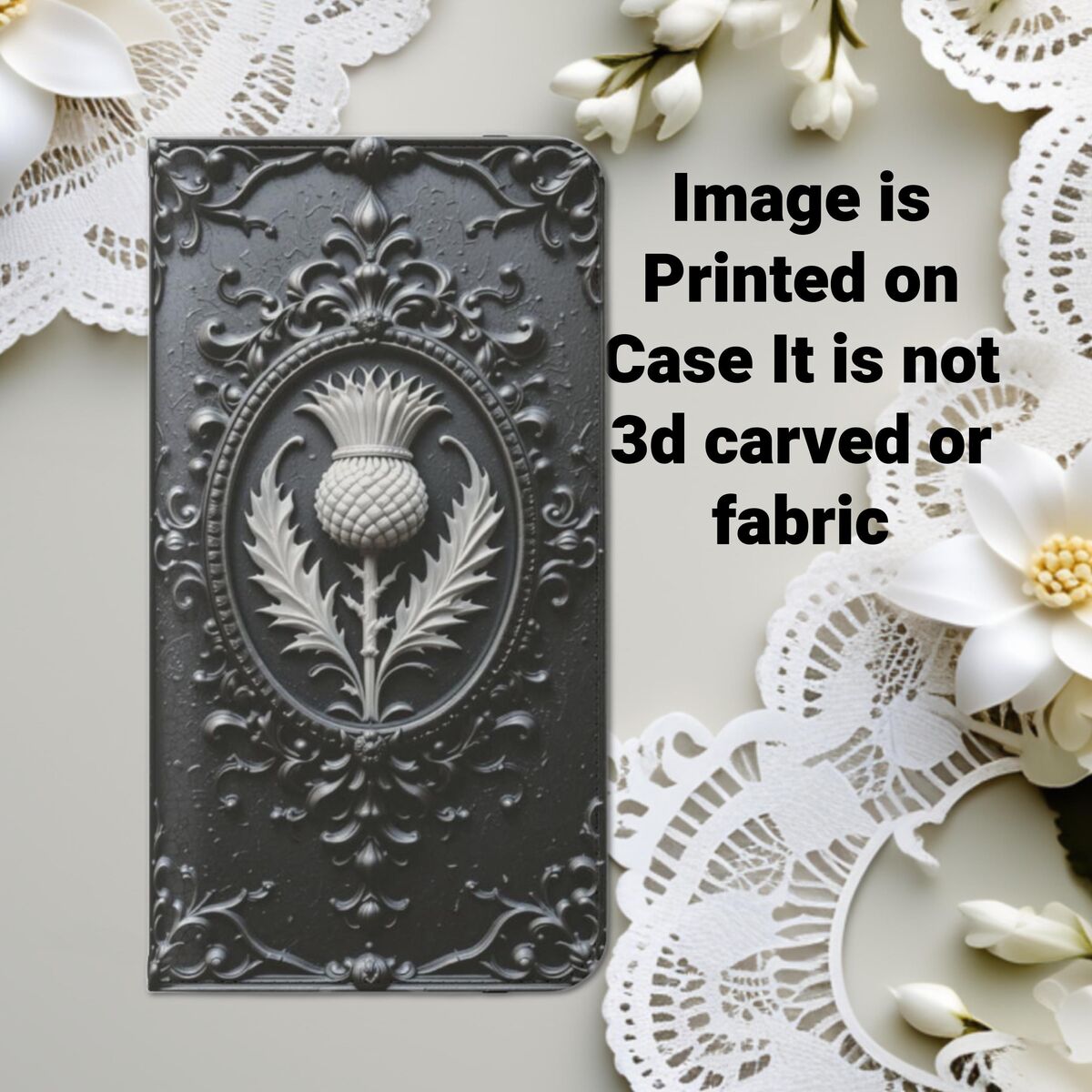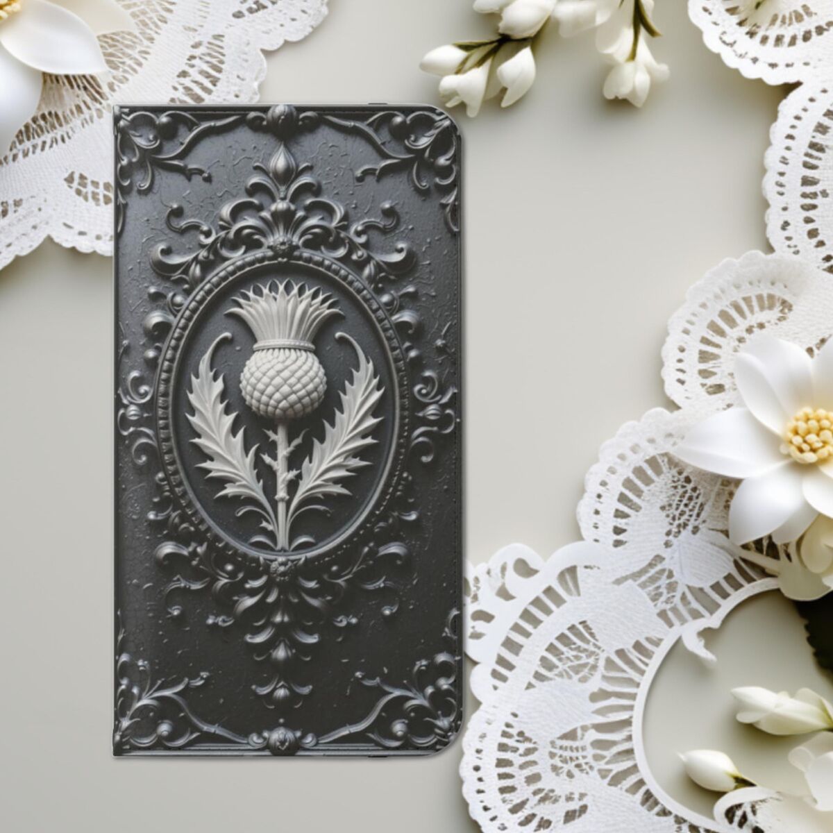 Scottish Thistle Book Phone Case Wallet Celtic Irish Dark Academia Flip Case Card Case Fits iphone 16 15 14 Galaxy S25 And More