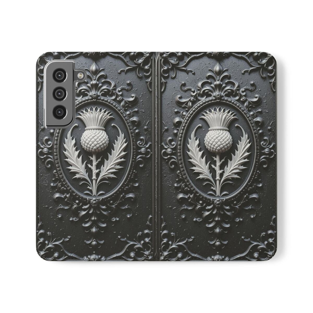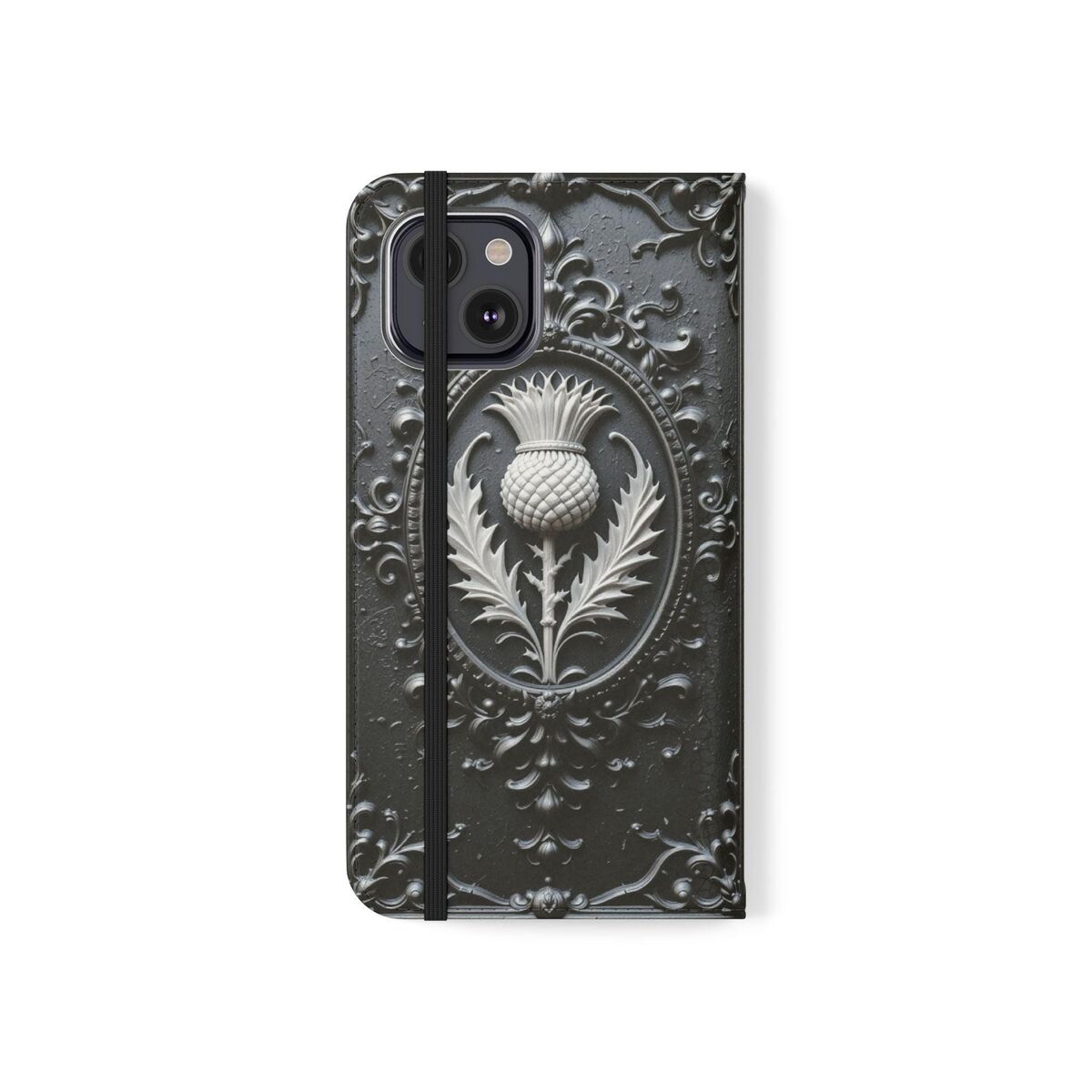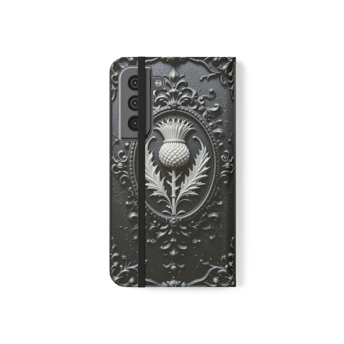 Scottish Thistle Book Phone Case Wallet Celtic Irish Dark Academia Flip Case Card Case Fits iphone 16 15 14 Galaxy S25 And More