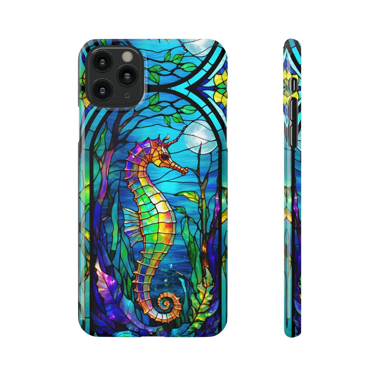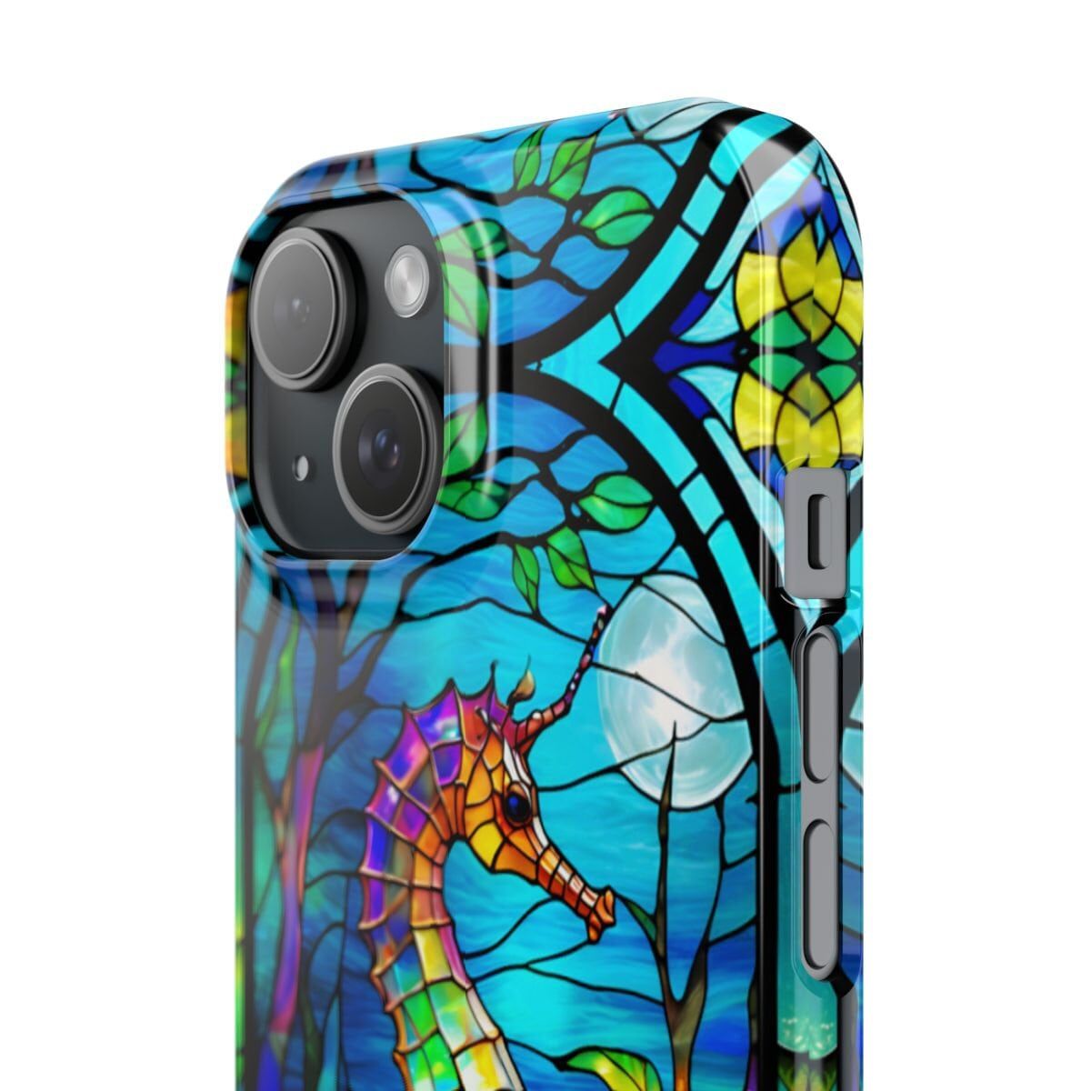 Seahorse Phone Case Stained Glass Art Nouveau Ocean Sea Underwater Retro Design iPhone 12 13 15 Galaxy S21 S22 S23 And More