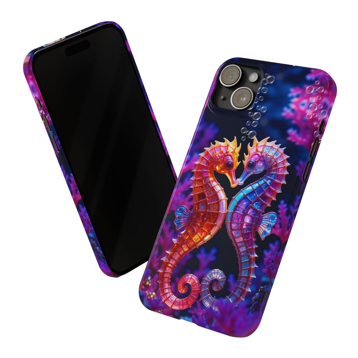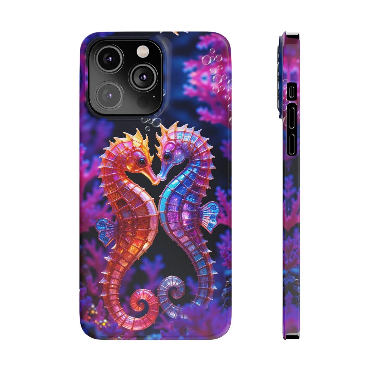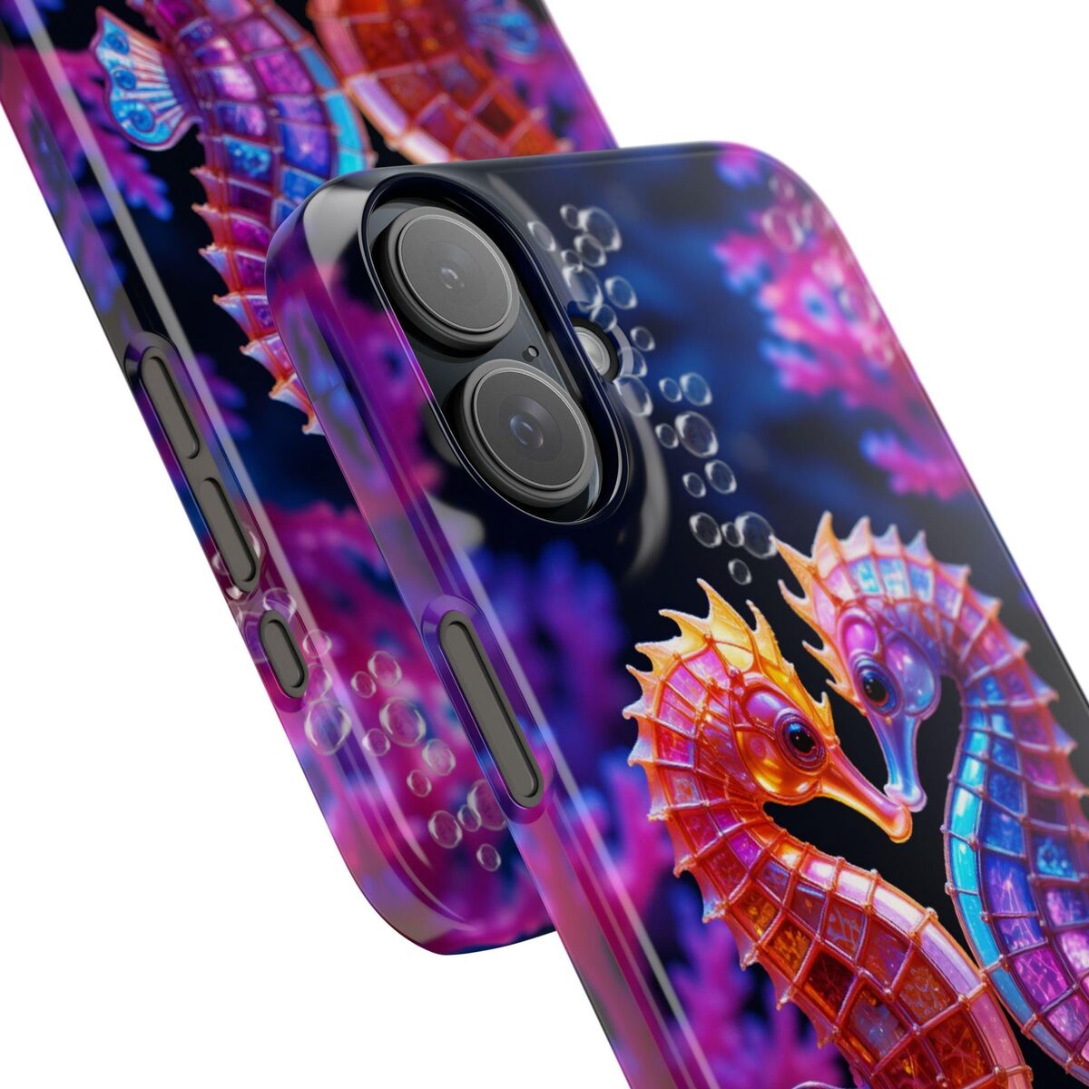 Seahorse Stained Glass Ocean Water Coral Reef Case Slim iphone 16 15 14 13 12 11 Pro Plus Max