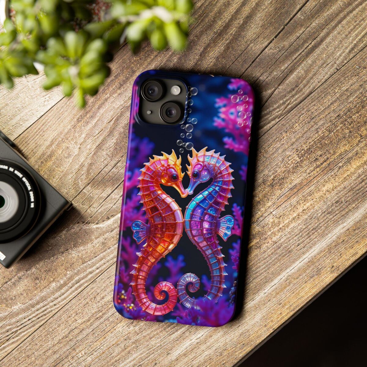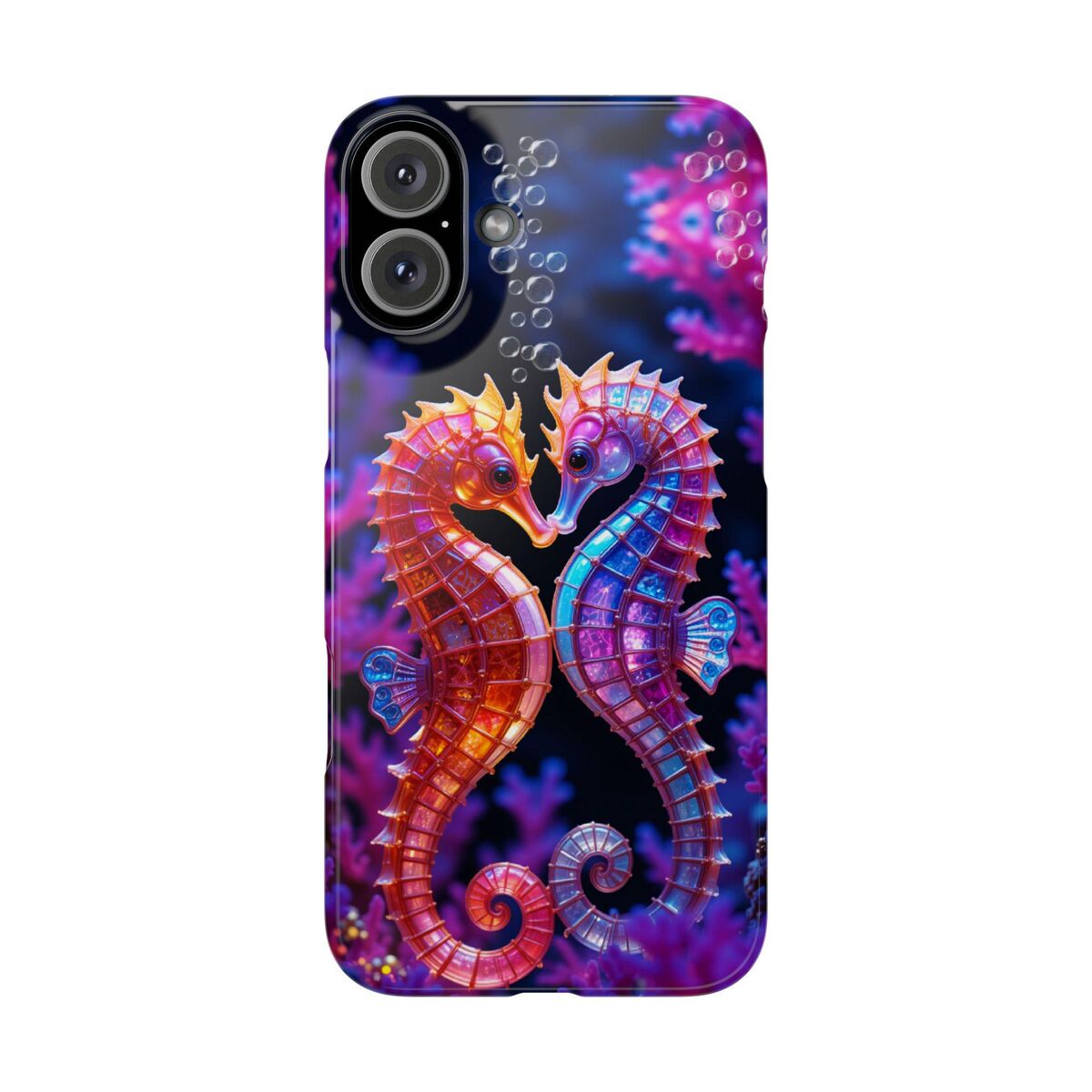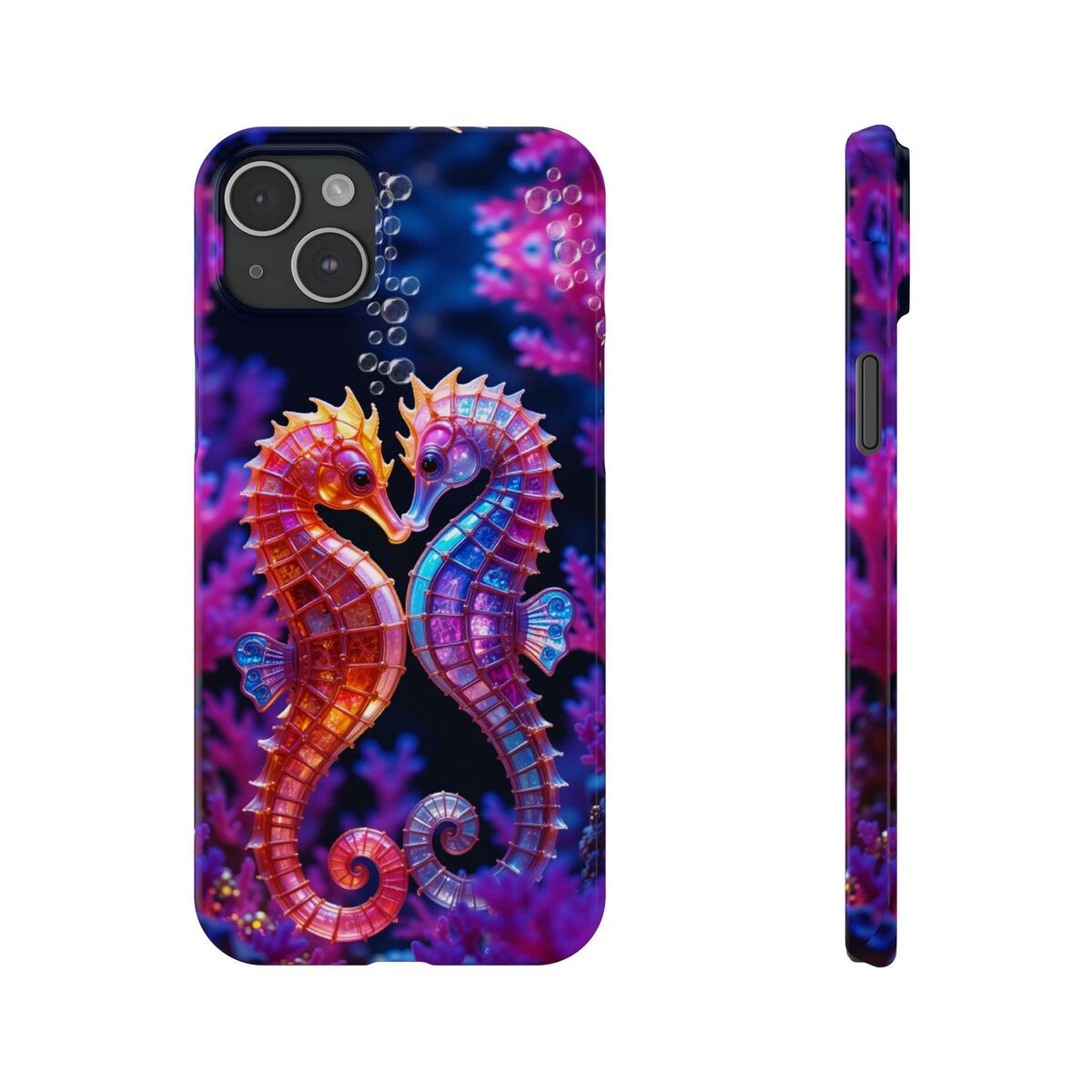Seahorse Stained Glass Ocean Water Coral Reef Case Slim iphone 16 15 14 13 12 11 Pro Plus Max
