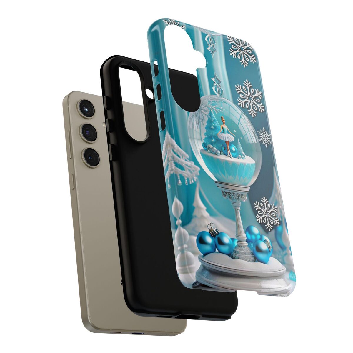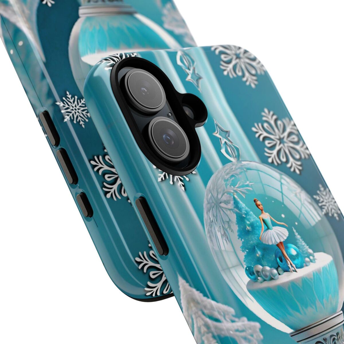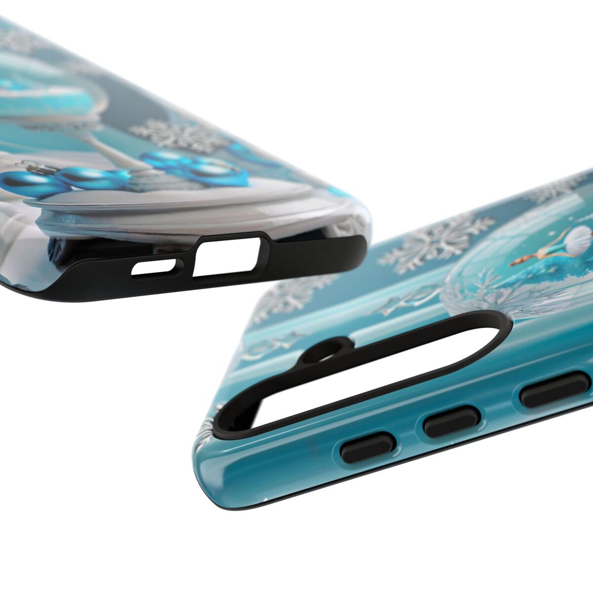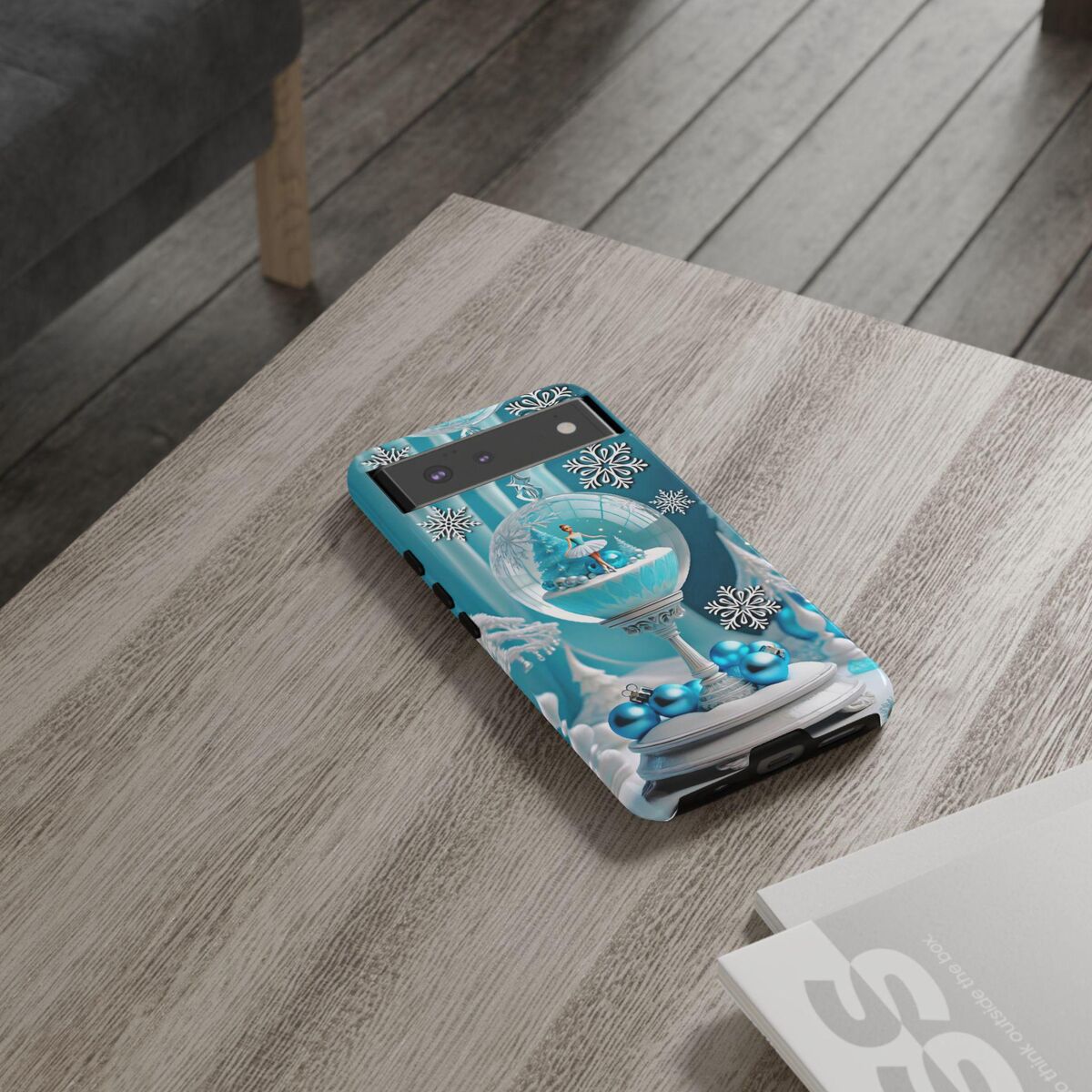 Snow Globe Phone Tough Case Faux Stained Glass Christmas Winter Fits iphone 16 15 14 13 Pixel 8 Galaxy S24 S23 S 22 And More