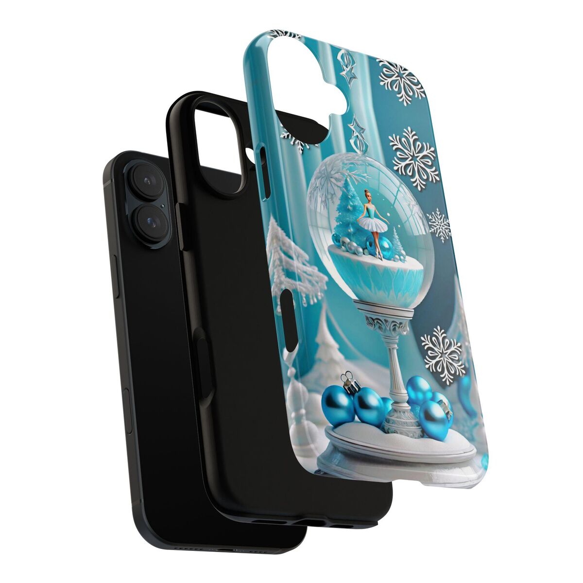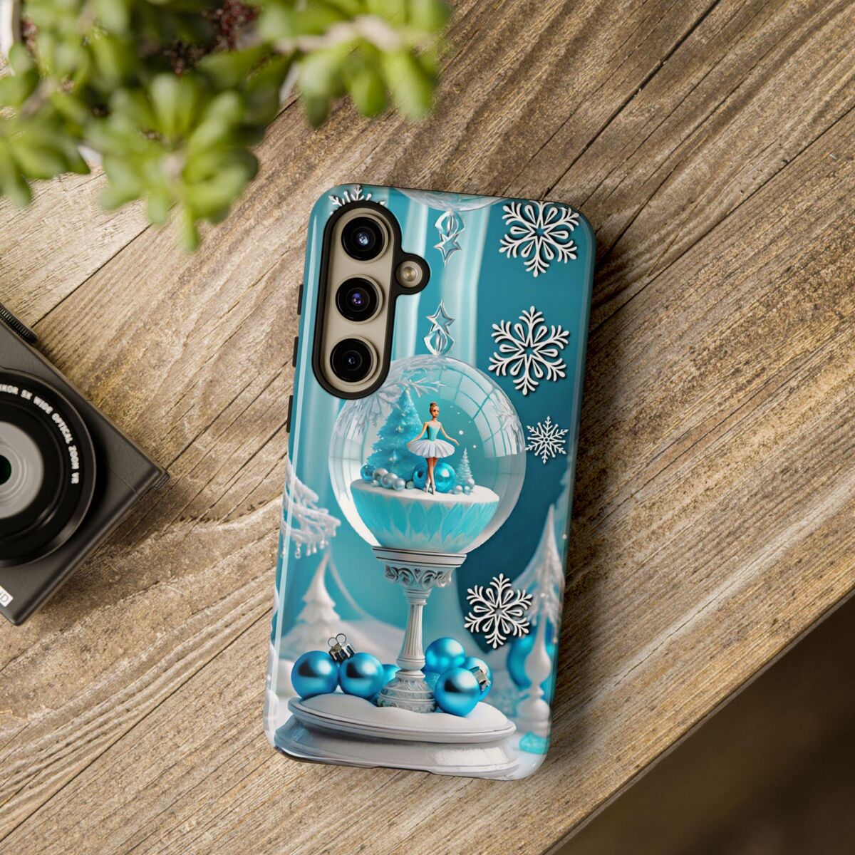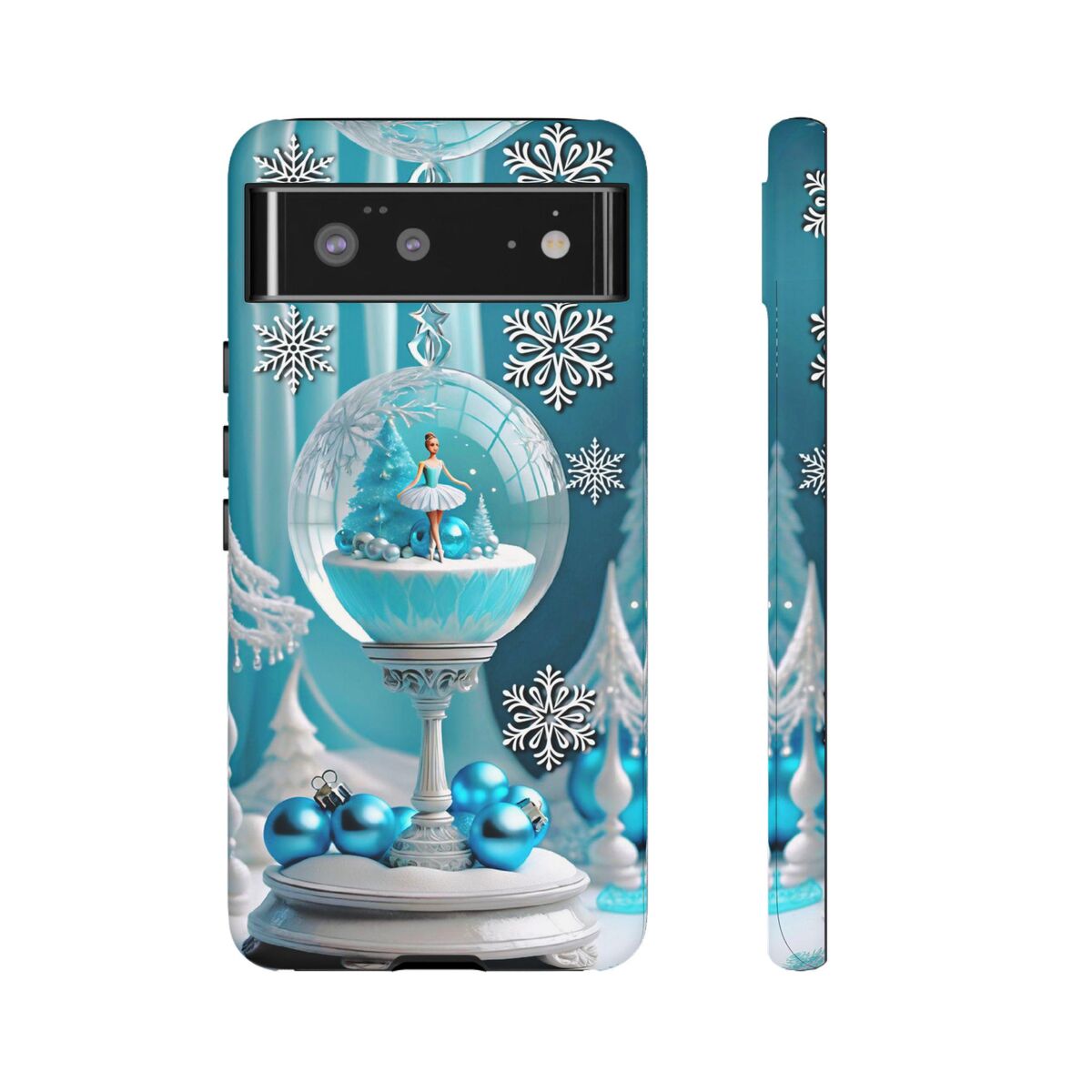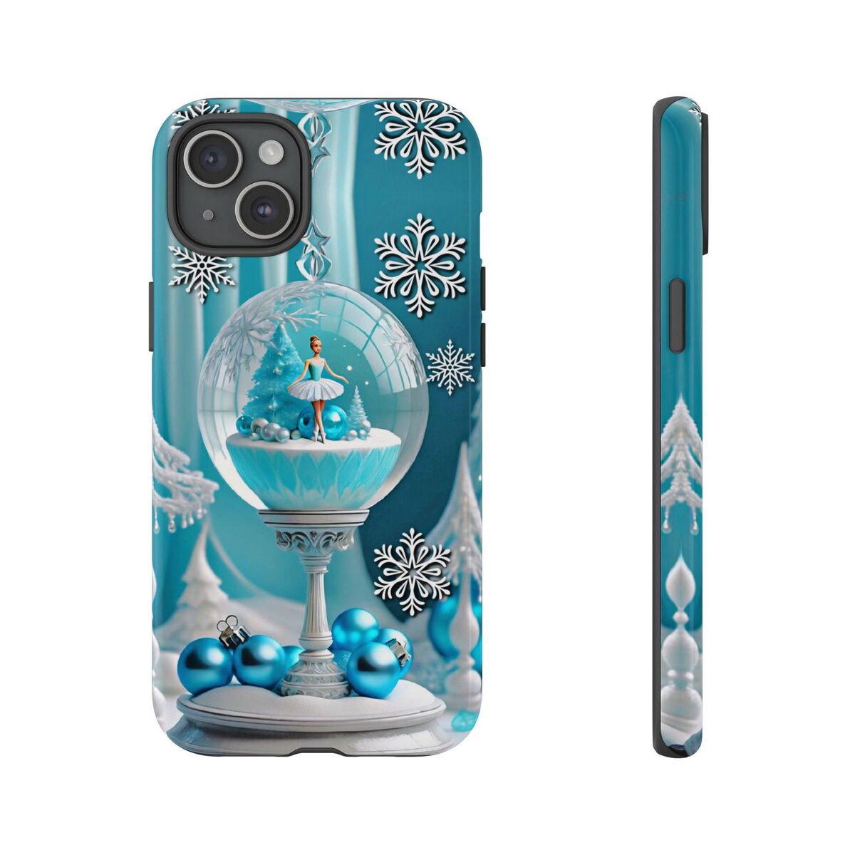 Snow Globe Phone Tough Case Faux Stained Glass Christmas Winter Fits iphone 16 15 14 13 Pixel 8 Galaxy S24 S23 S 22 And More