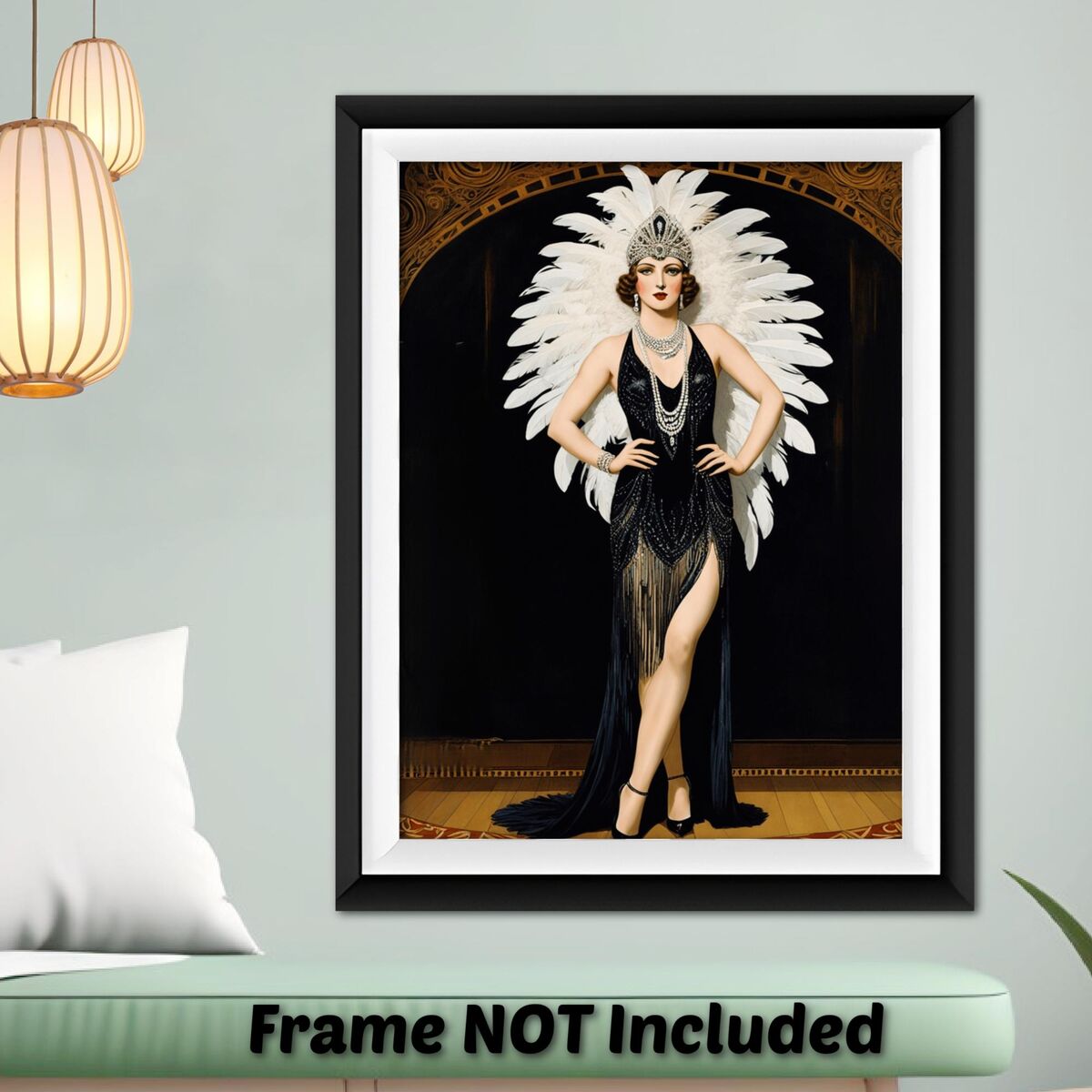 Cabaret Showgirl Flapper Art Deco Woman Gatsby Girl 1920s Flapper Style Painting Poster Print Wall Art Retro Home Decor