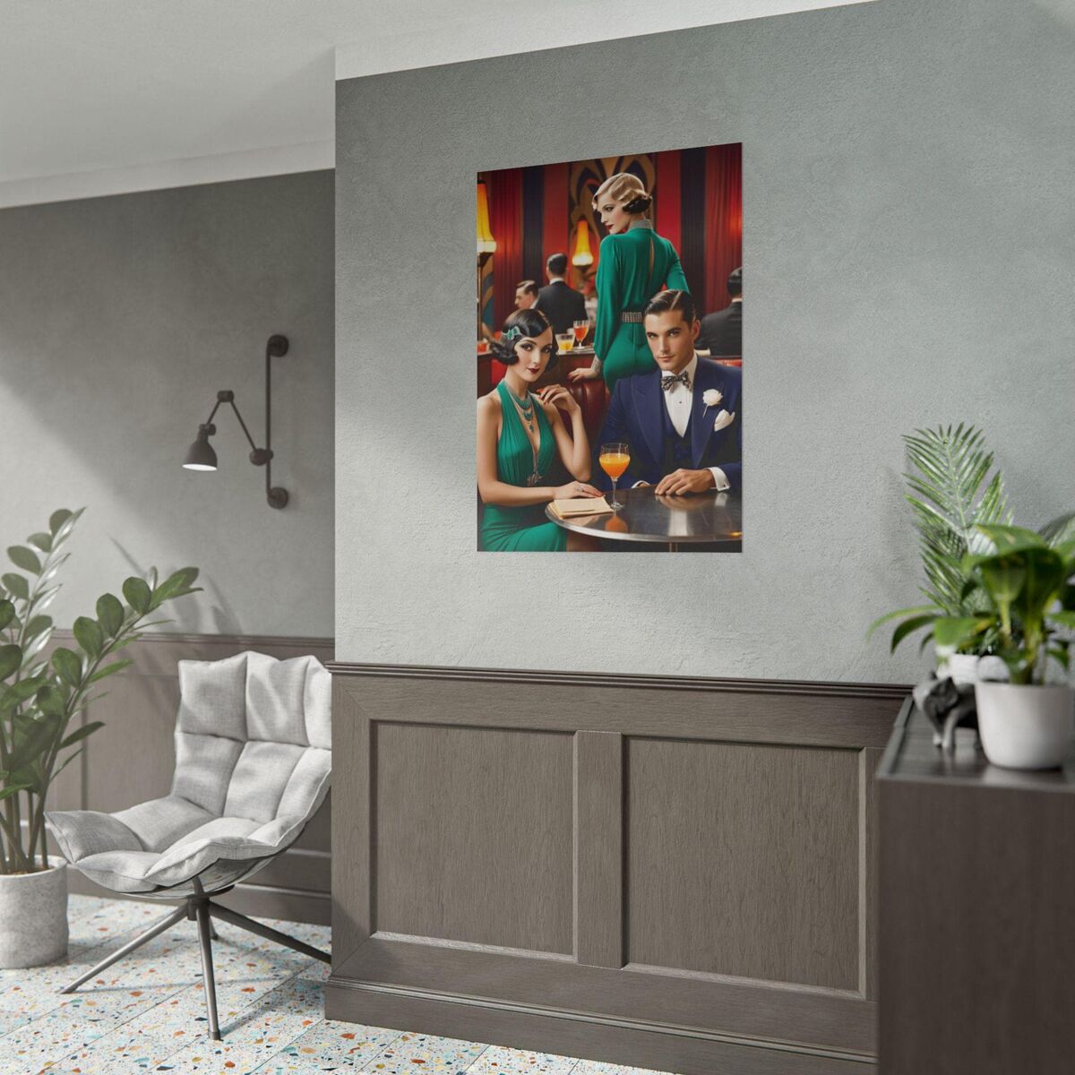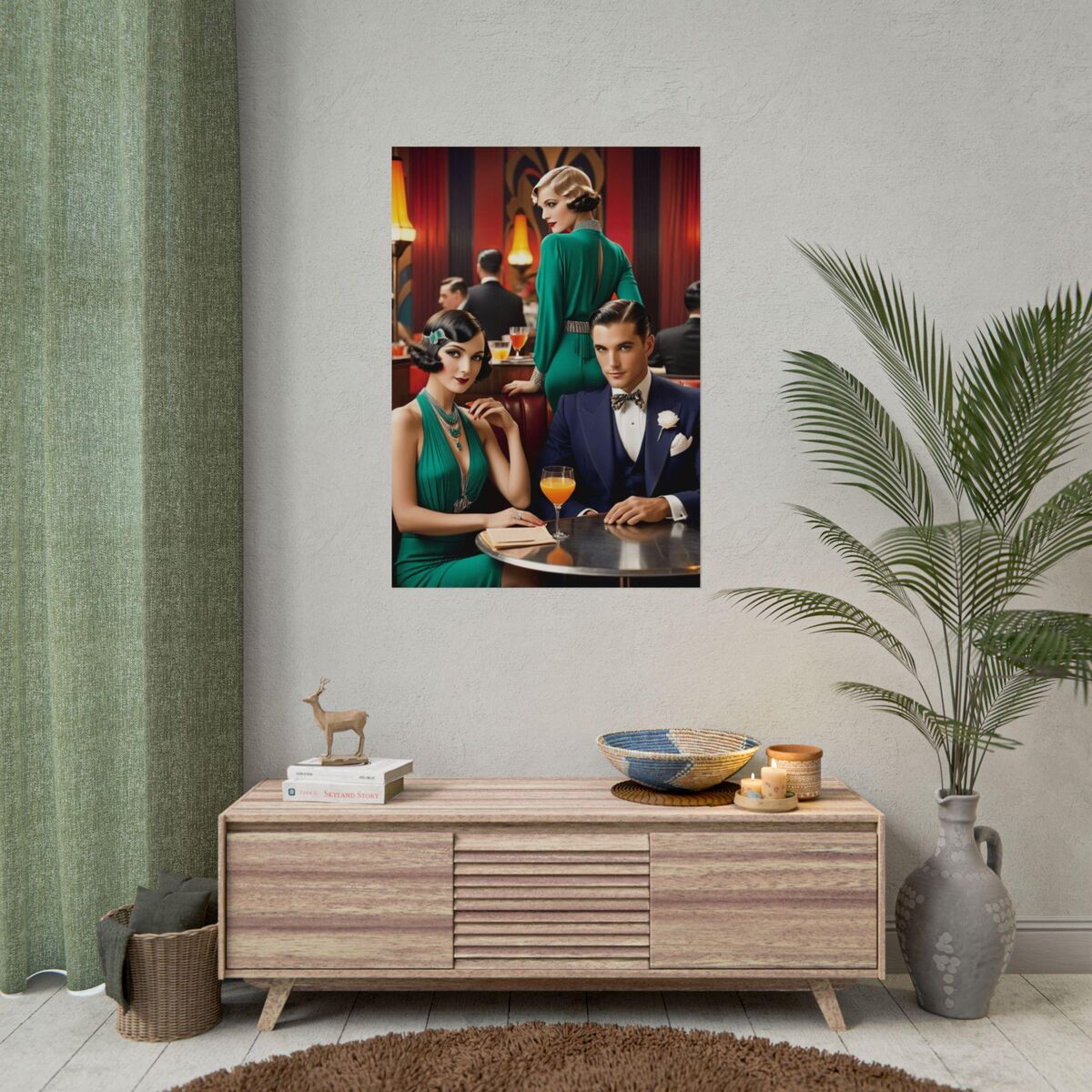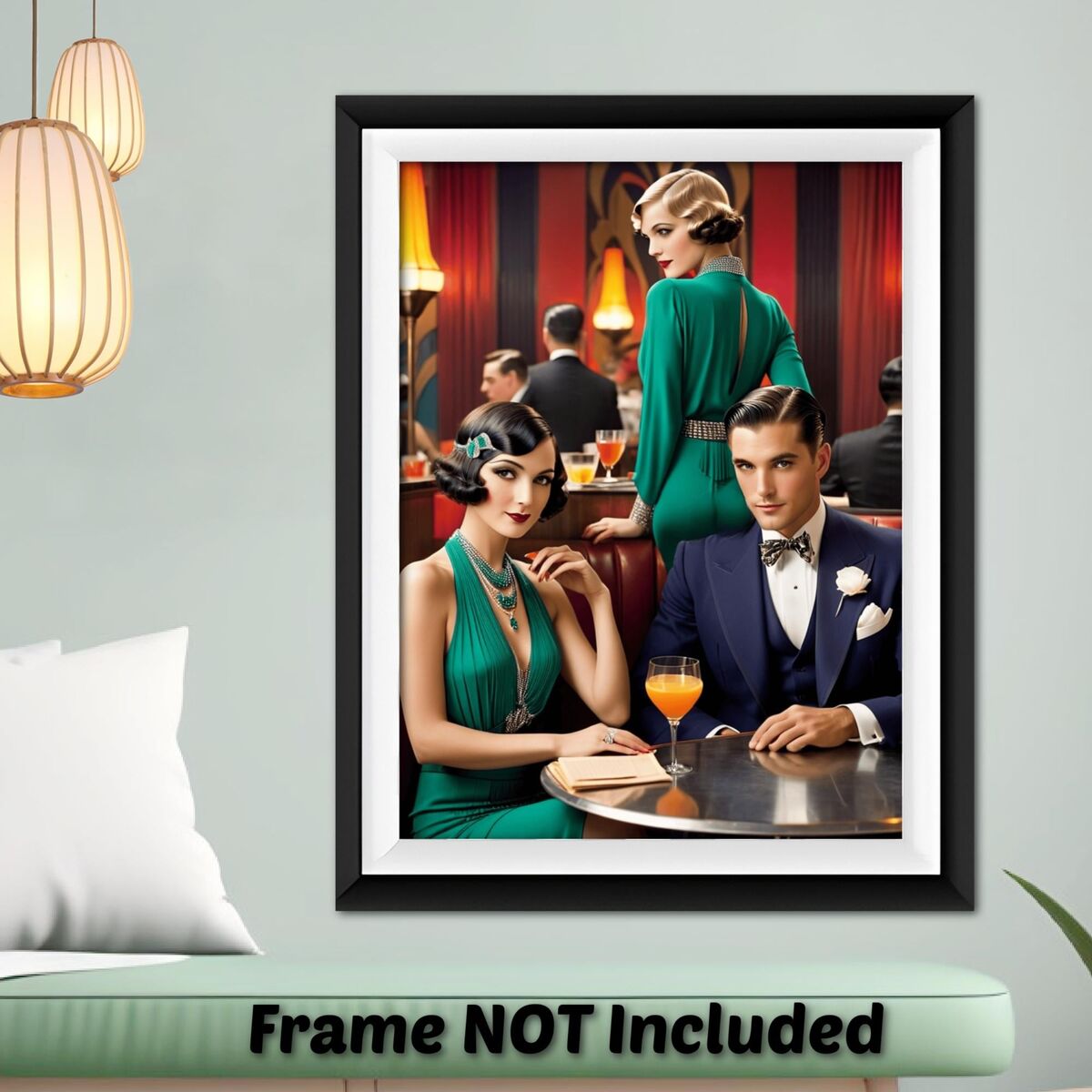 Enhance your decor with this stunning Art Deco Gatsby 1920 Style poster print. The retro design adds a touch of elegance and sophistication to any space, making it a perfect addition to your home.