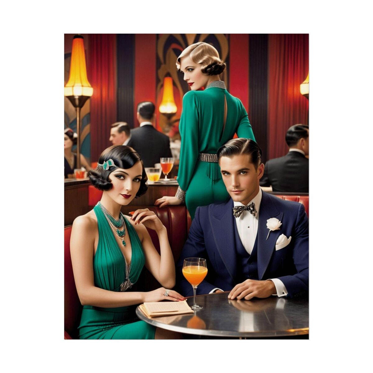 Speakeasy Art Deco Woman Man Barware Decor Gatsby Girl 1920s Flapper Style Painting Poster Print Wall Art Retro Home Decor