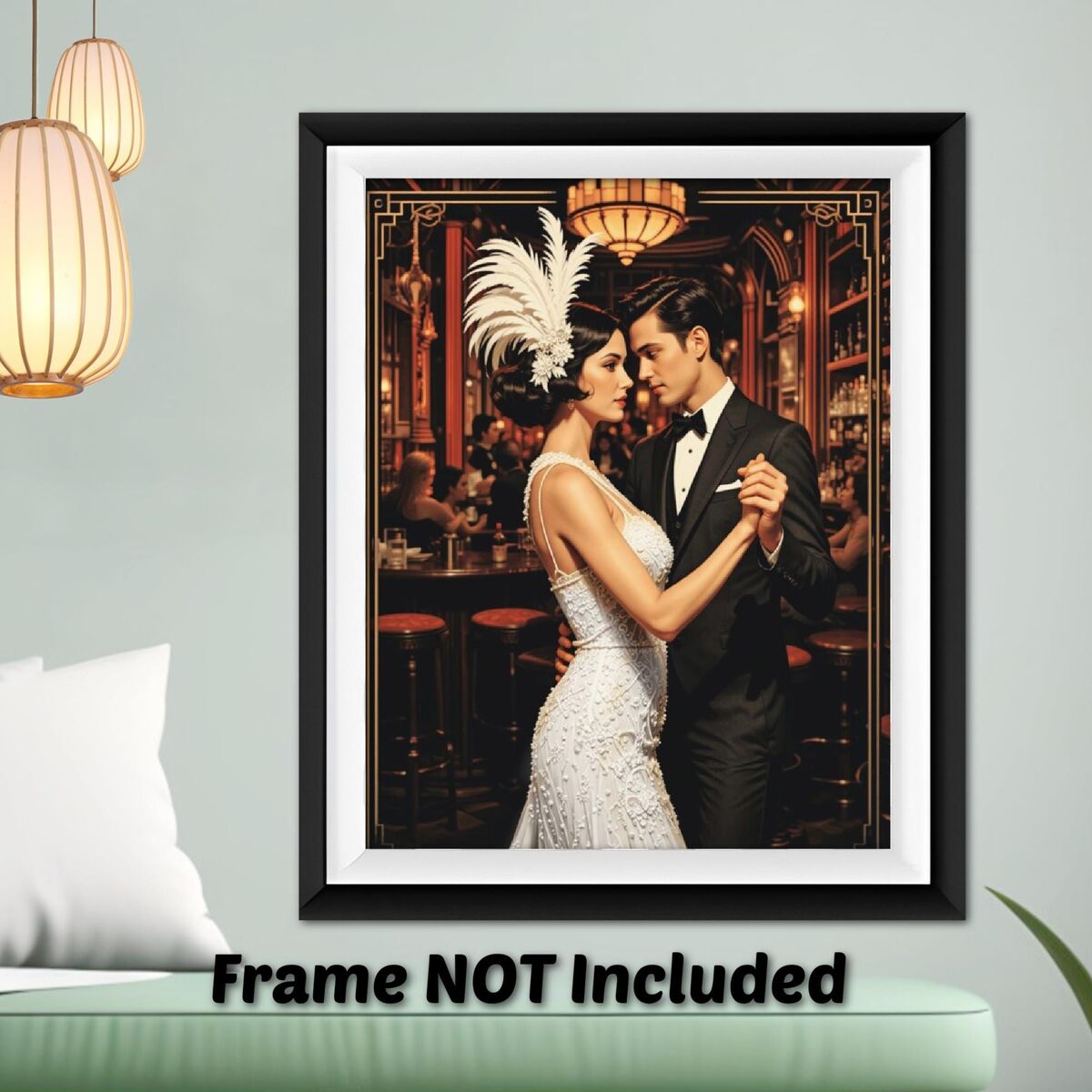 Speakeasy Dancing Poster Print Art Deco Gatsby Girl Man Bar 1920s Retro Style Painting Poster Wall Art Woman Home Decor