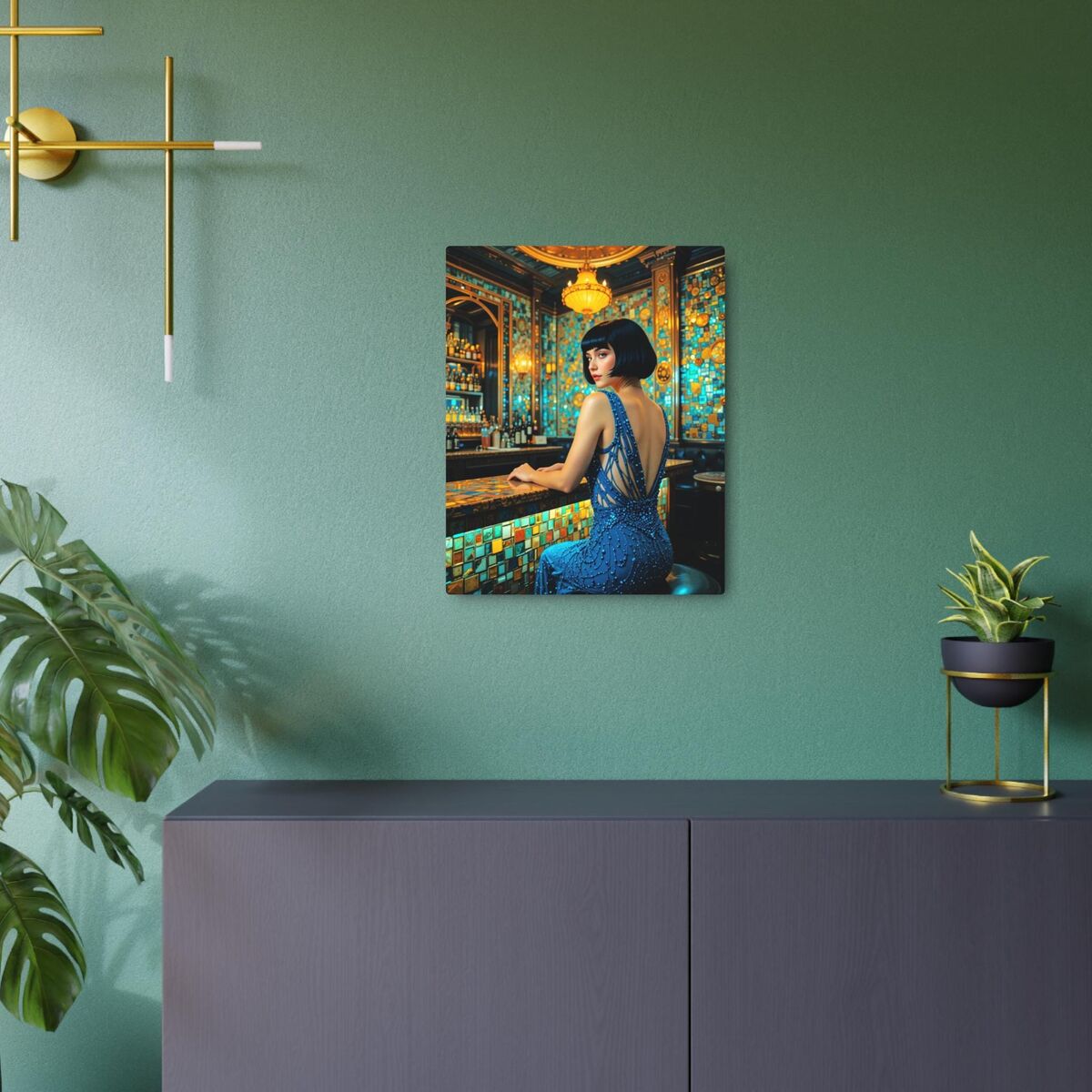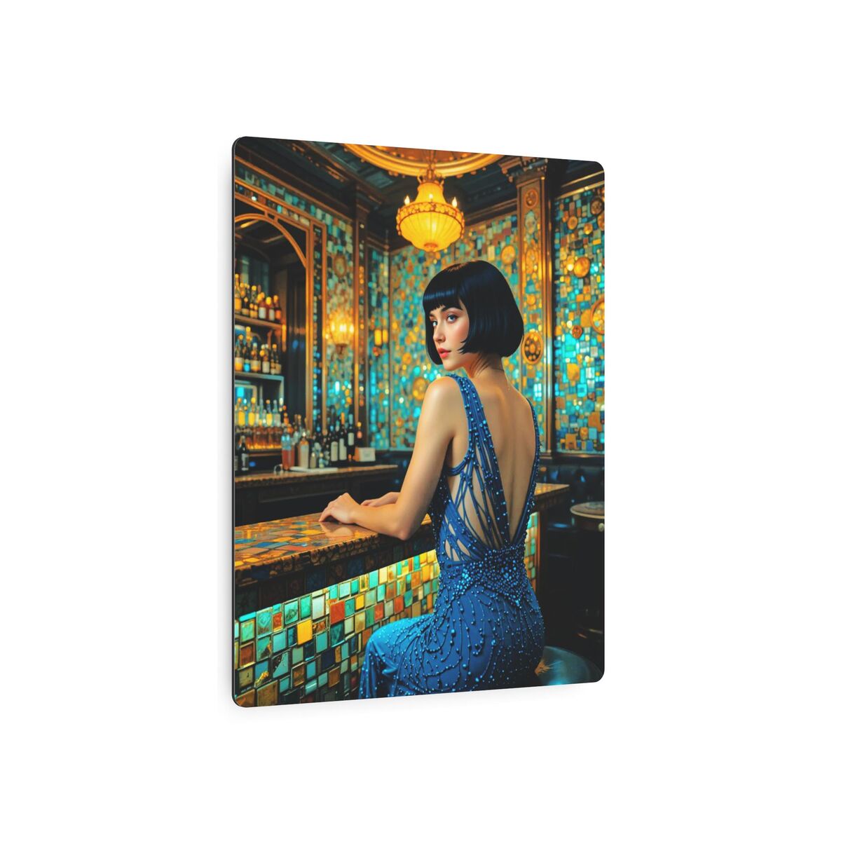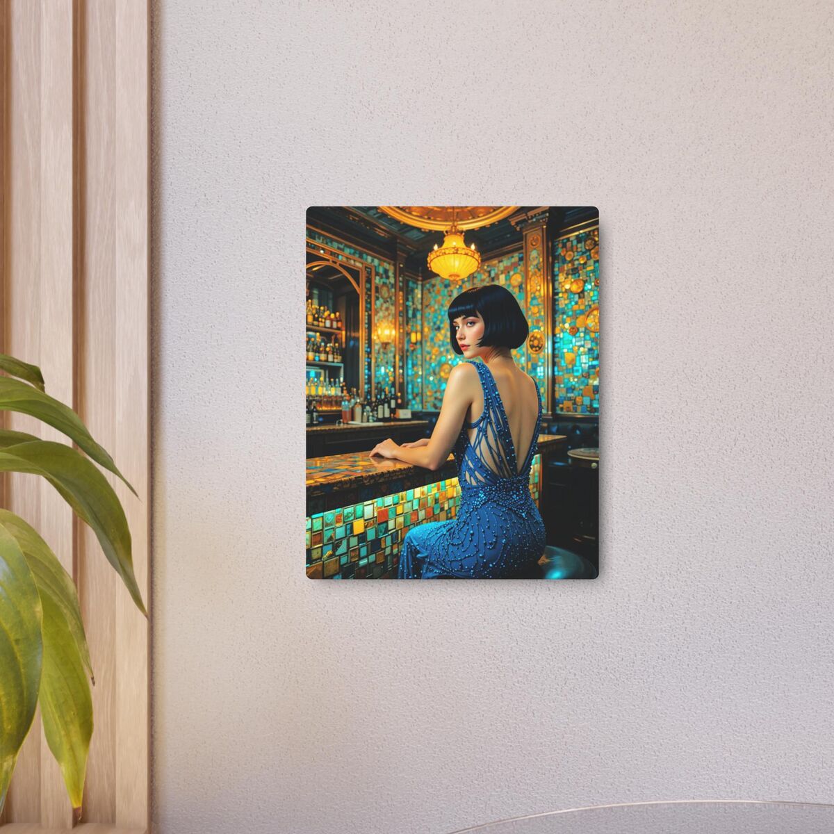 Speakeasy Metal Art Poster Bathroom Art Deco Gatsby Decor Faux Mosaic Mucha Klimt Inspired Woman Portrait Meatal Wall Art Painting Print
