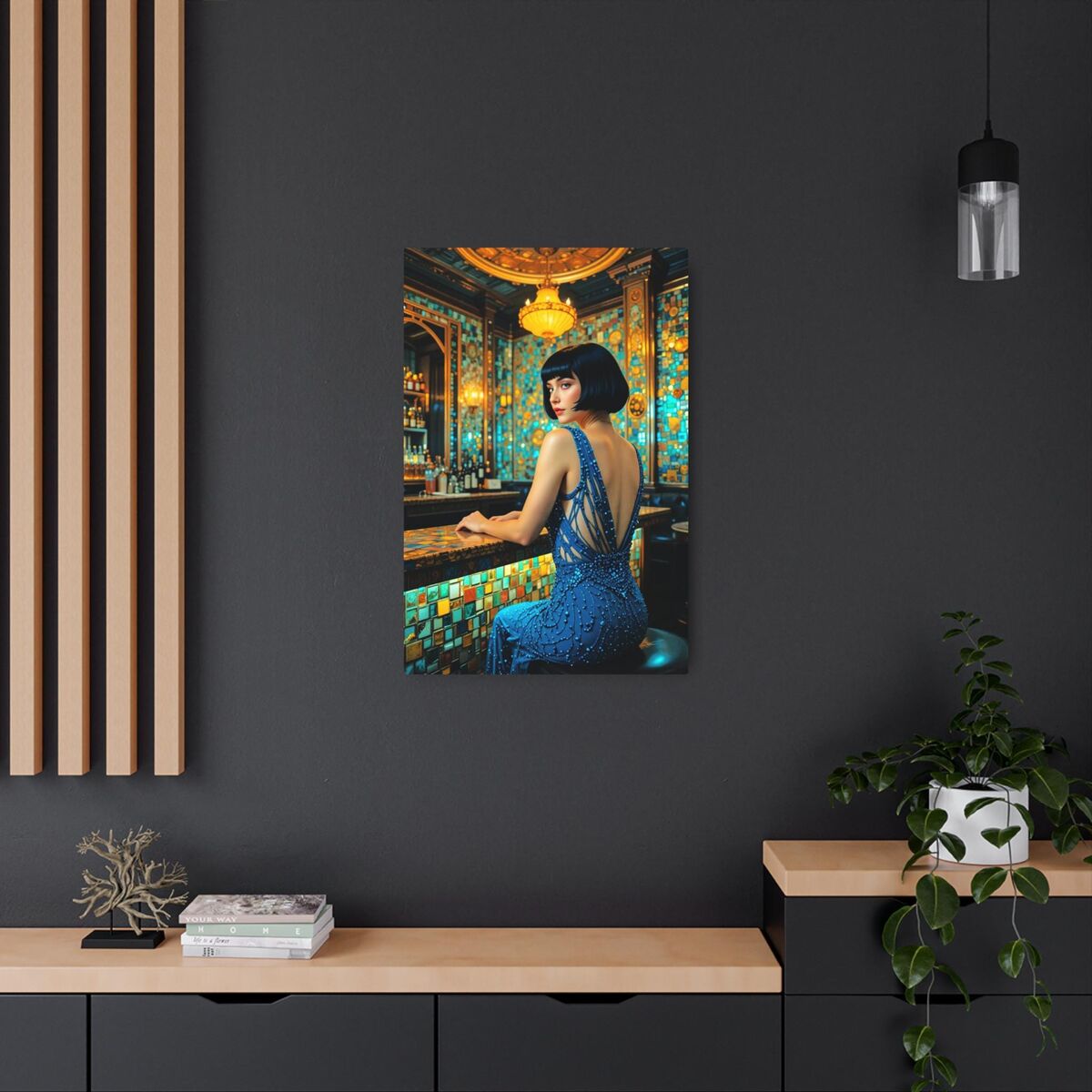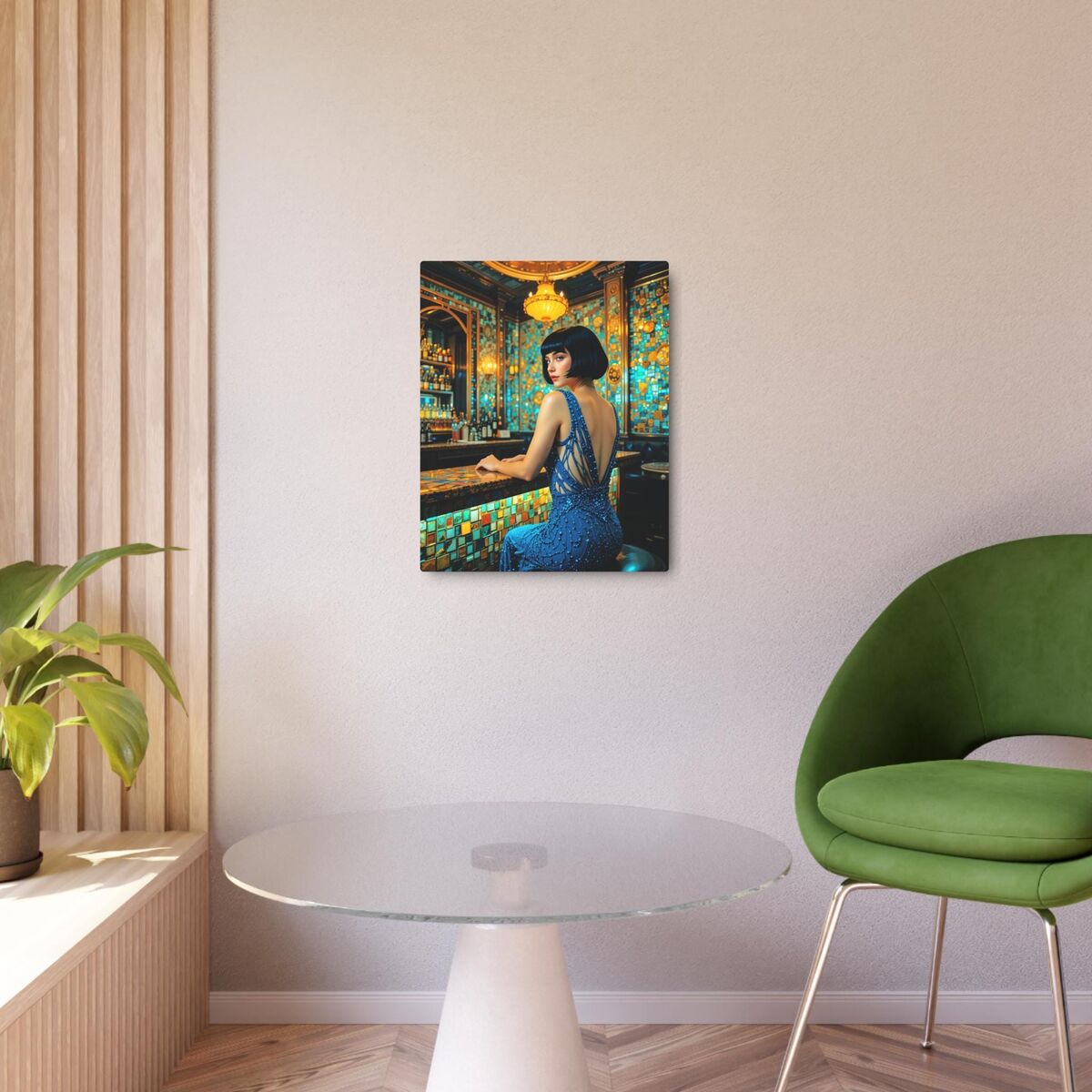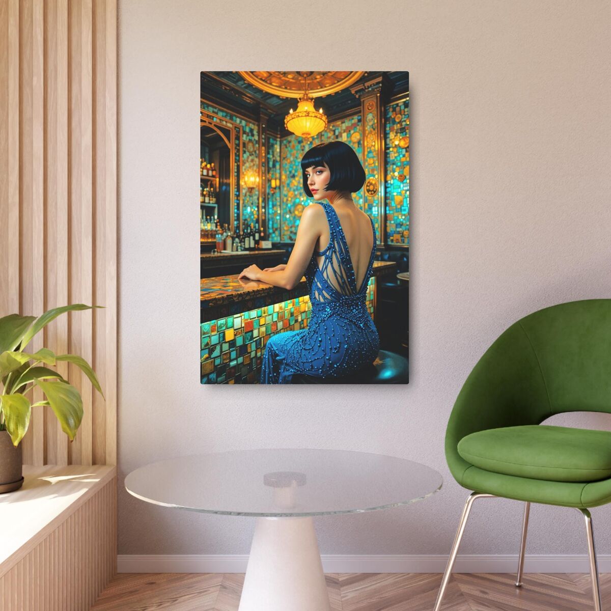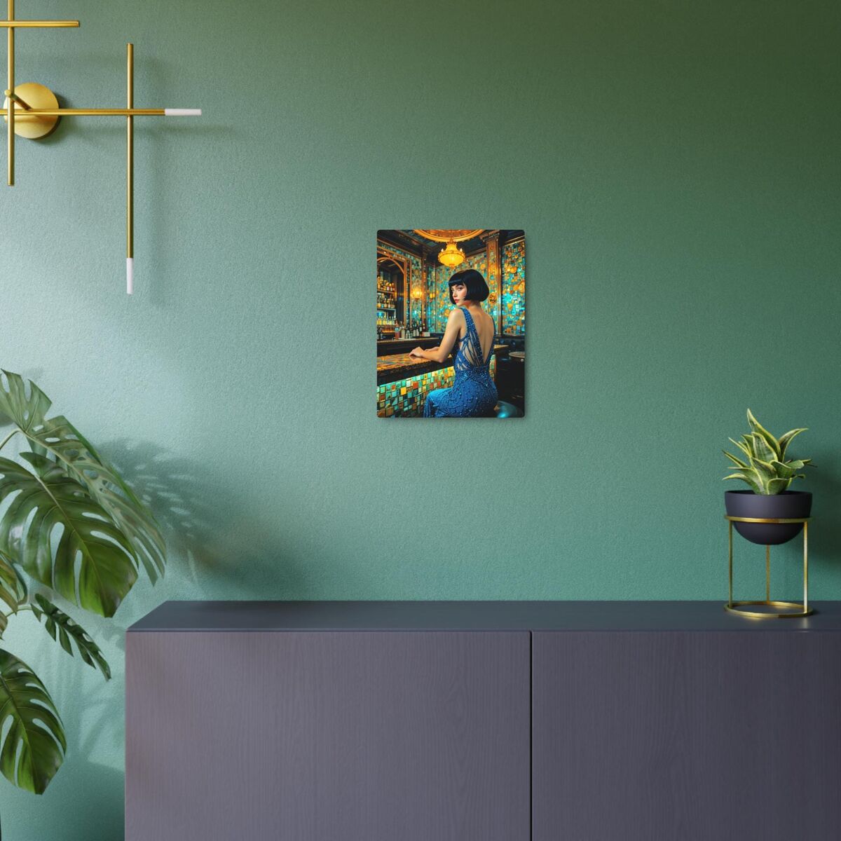 Speakeasy Metal Art Poster Bathroom Art Deco Gatsby Decor Faux Mosaic Mucha Klimt Inspired Woman Portrait Meatal Wall Art Painting Print