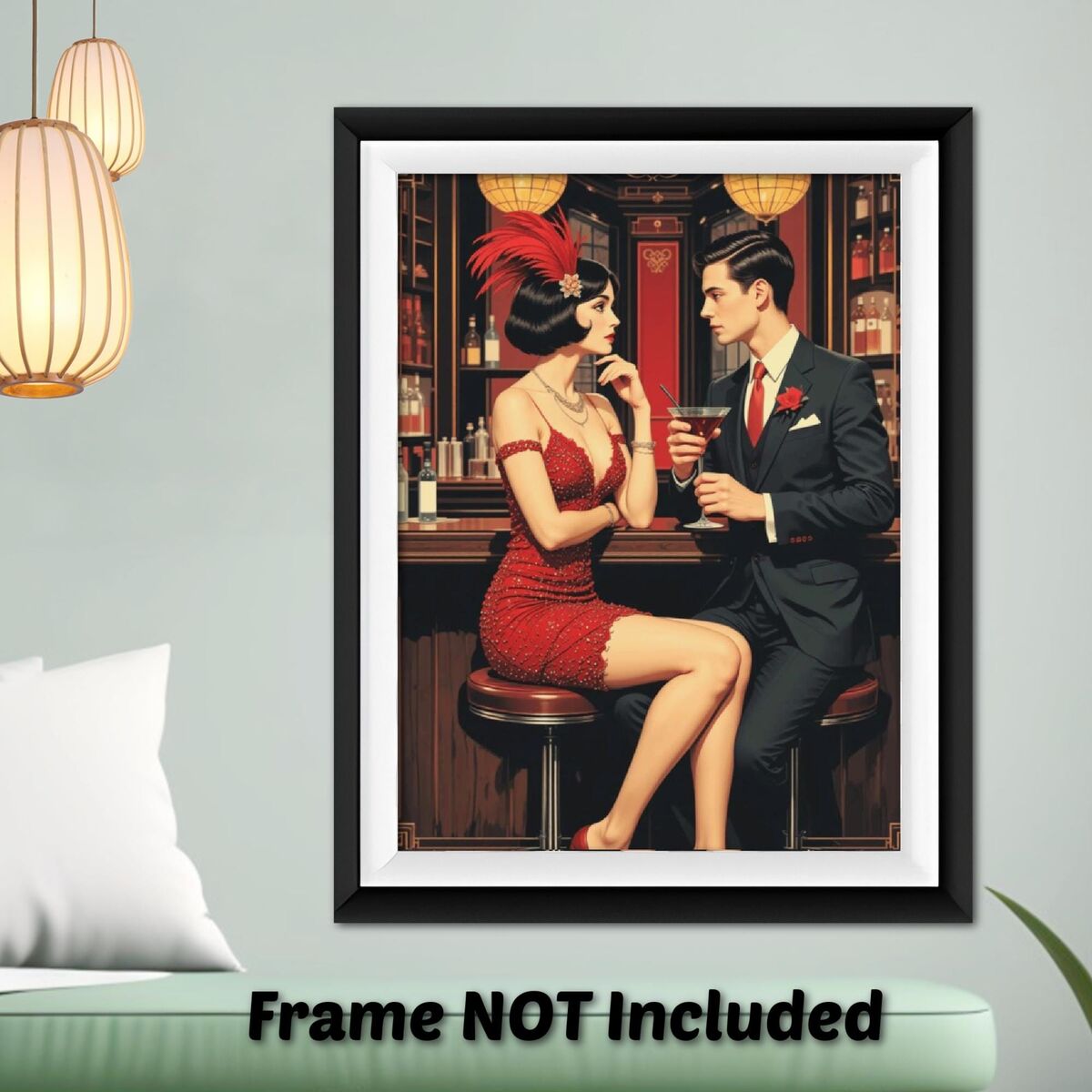 Speakeasy Poster Print Art Deco Gatsby Girl Man Bar 1920s Retro Style Painting Poster Wall Art Woman Home Decor