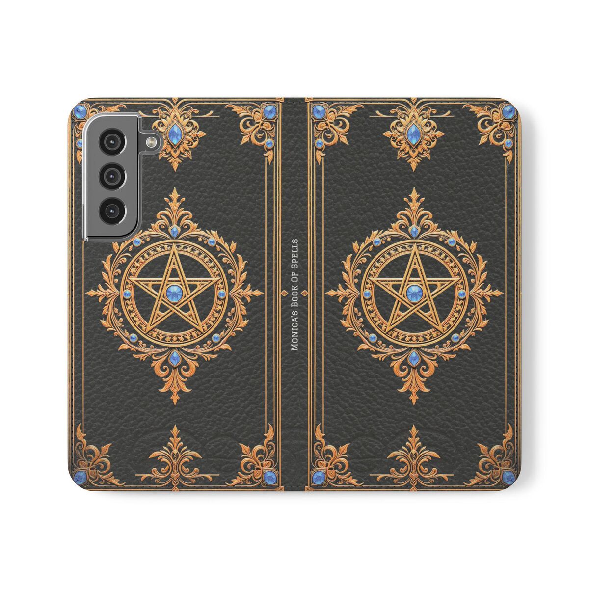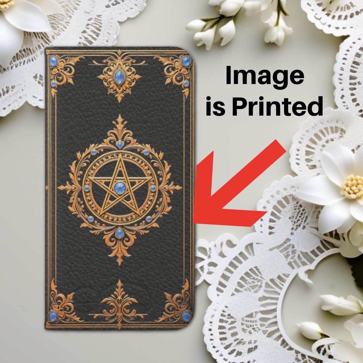 Spell Book Phone Case Wallet Custom Witchy Book Dark Academia Wicca Pagan Flip Case Card Case Fits iphone 16 15 14 Galaxy S22 And More