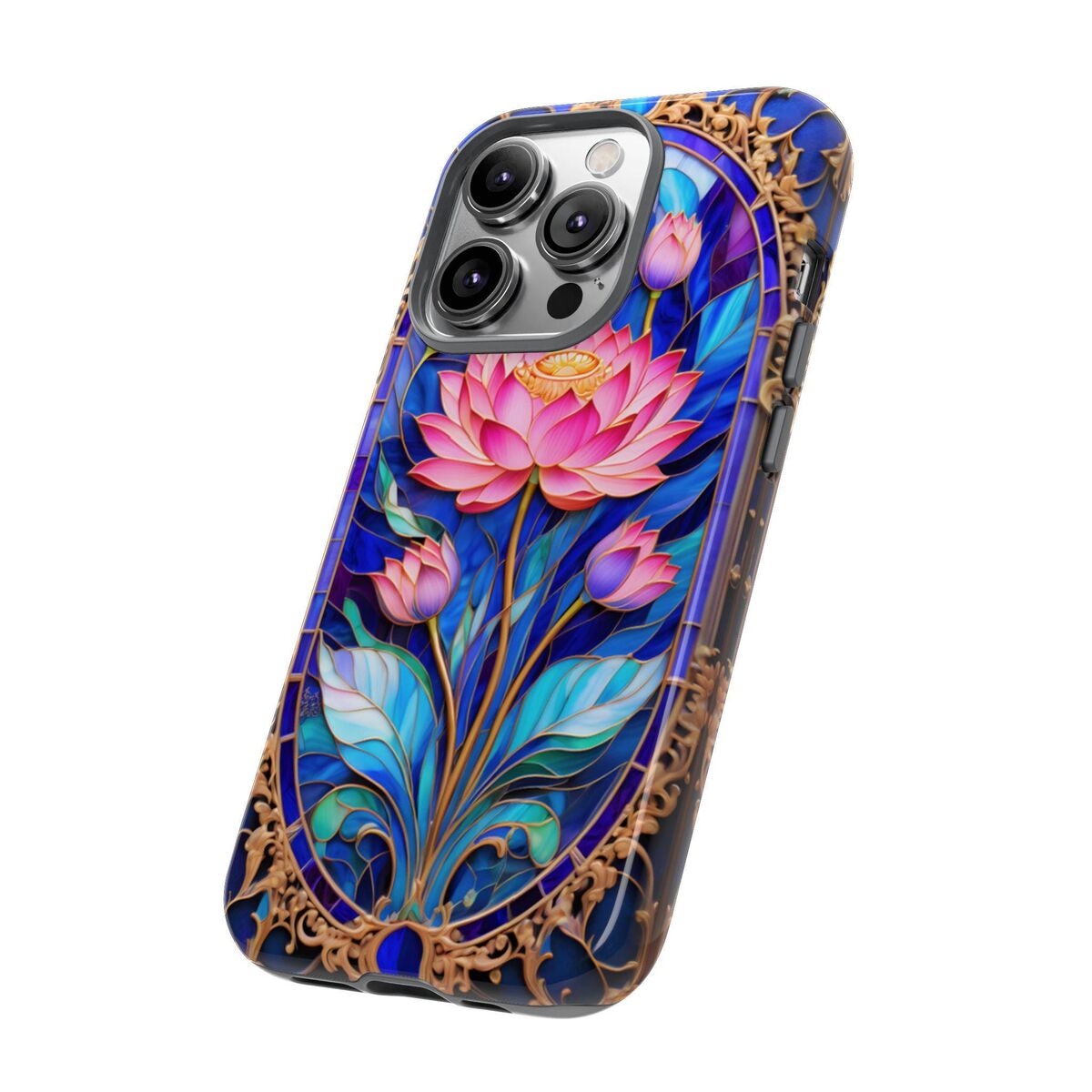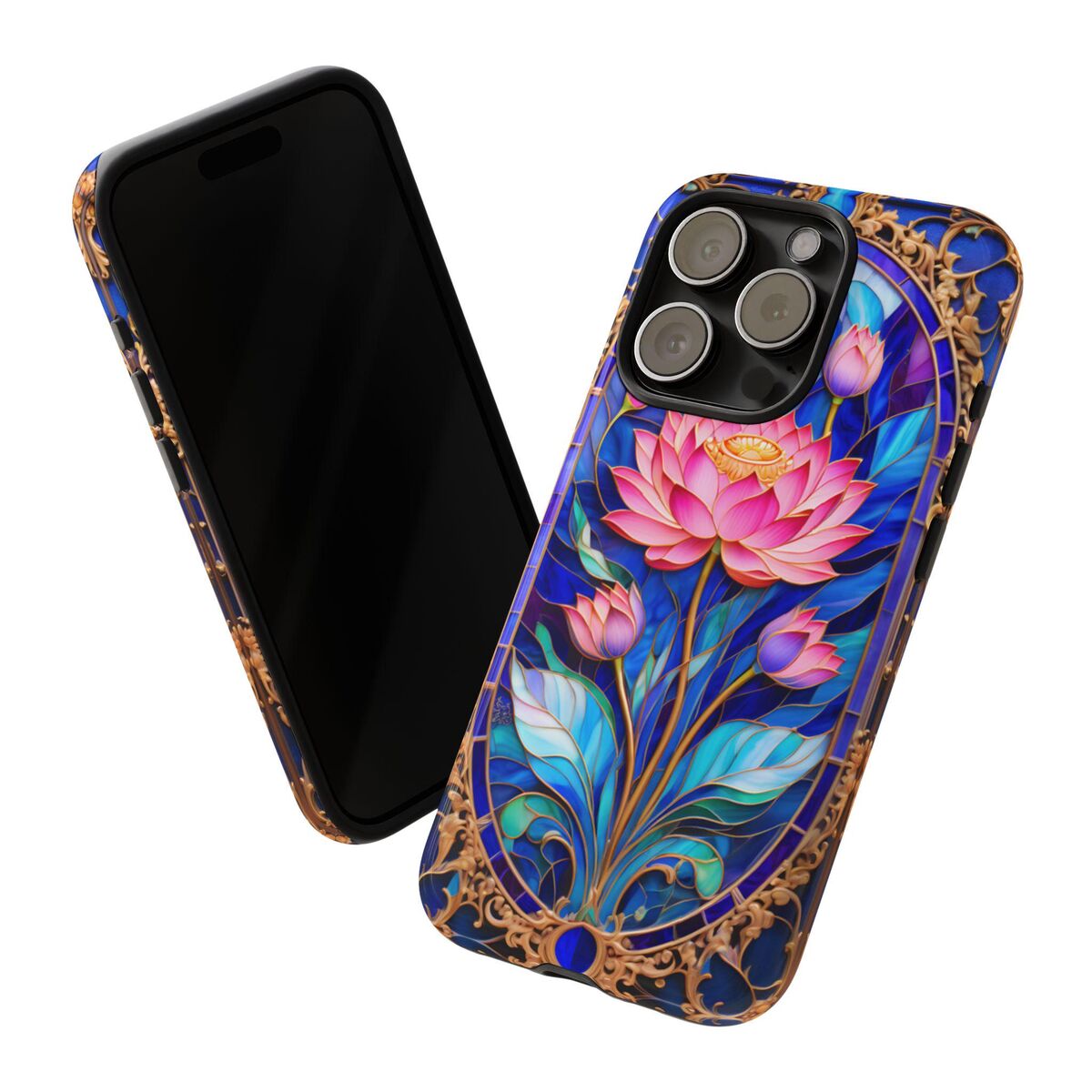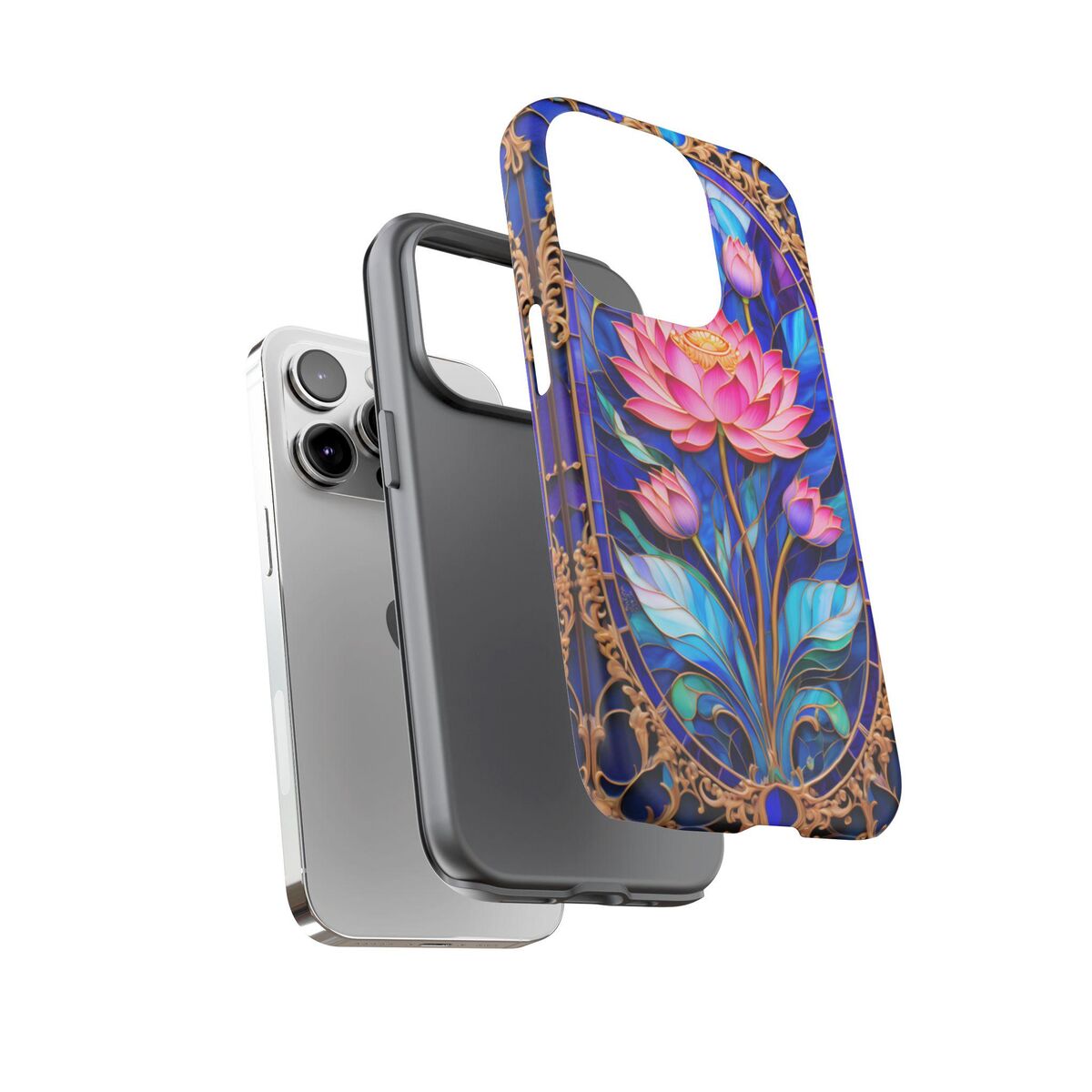 Stained Glass Tough Phone Case Art Nouveau Lotus Flower Phone Case Nature Inspired iPhone 15 14 13 12 11 Samsung Galaxy S23 S22 S21 And More