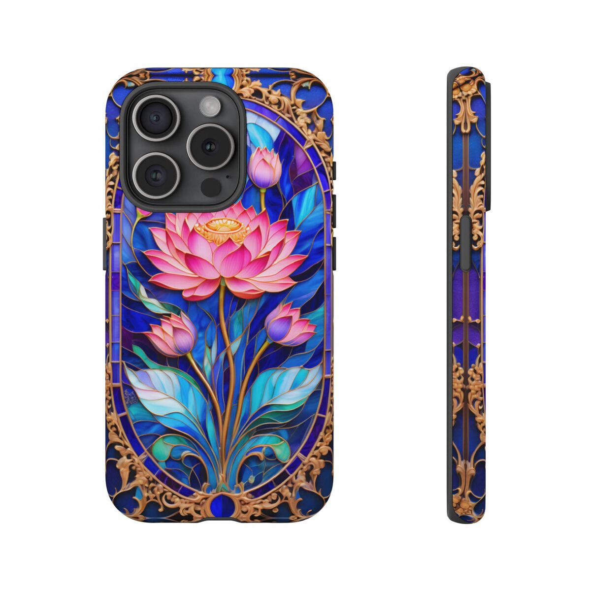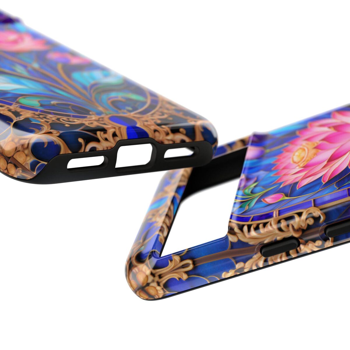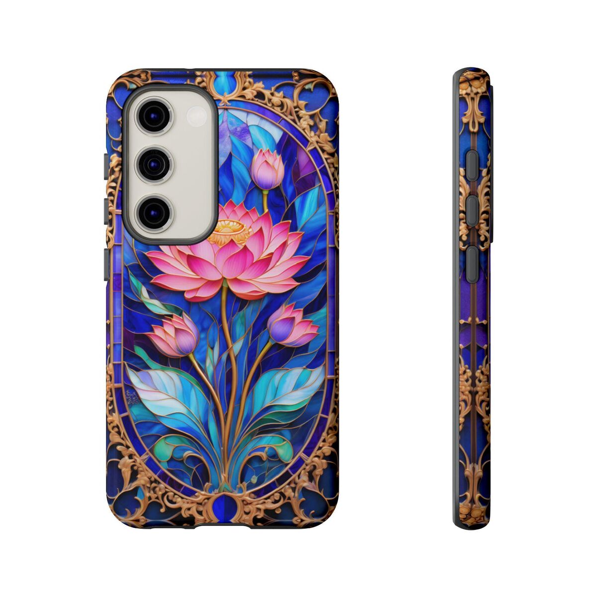 Stained Glass Tough Phone Case Art Nouveau Lotus Flower Phone Case Nature Inspired iPhone 15 14 13 12 11 Samsung Galaxy S23 S22 S21 And More