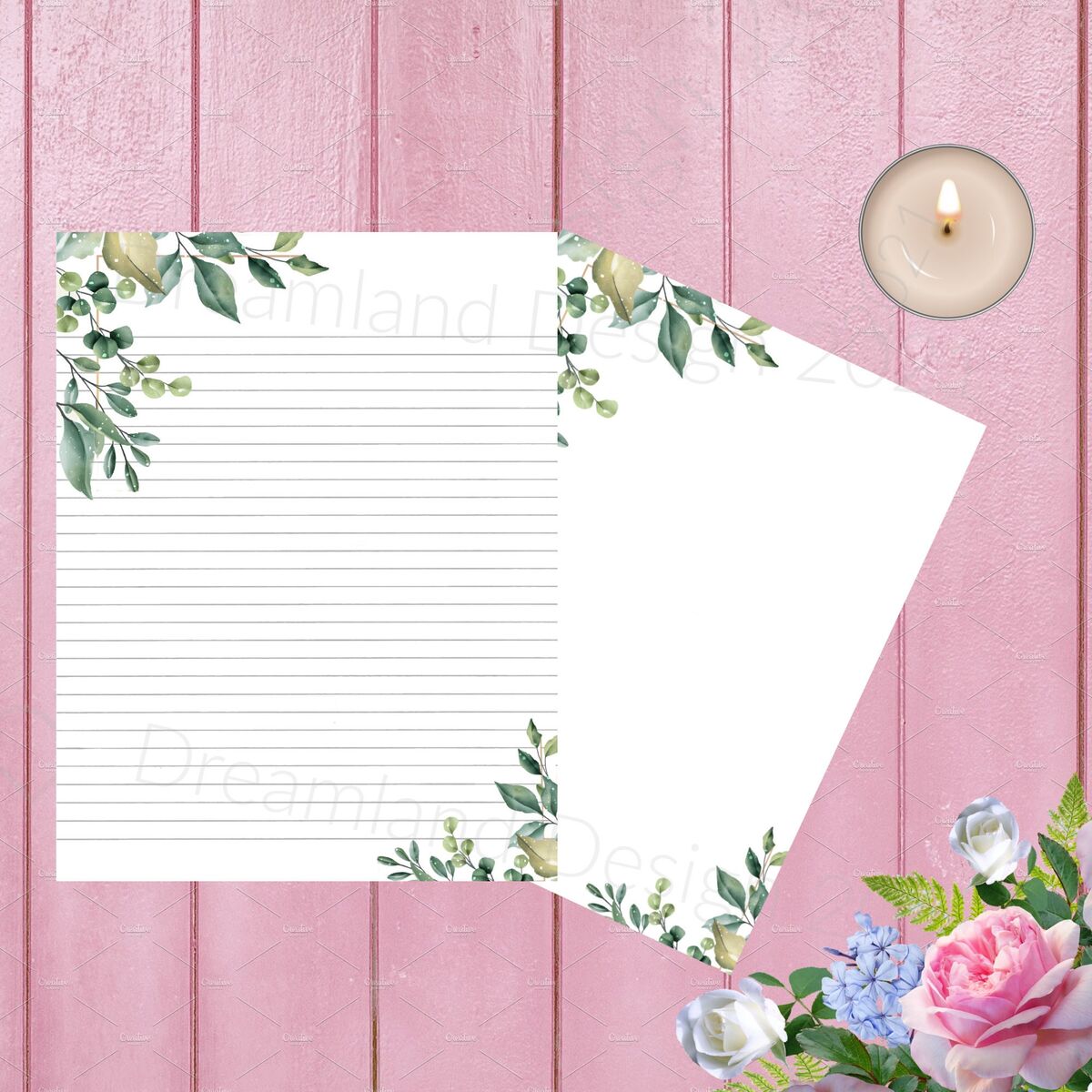 Stationary Paper Printable Writing Paper Blank Digital Floral Lined Note Book Flower Watercolor Paper