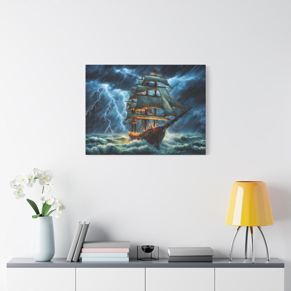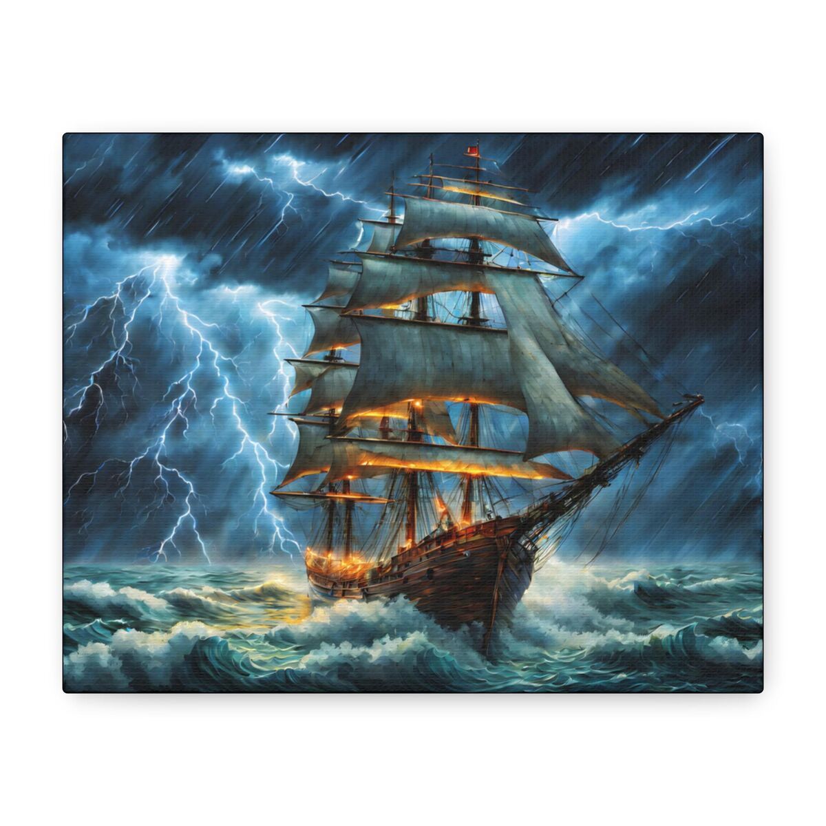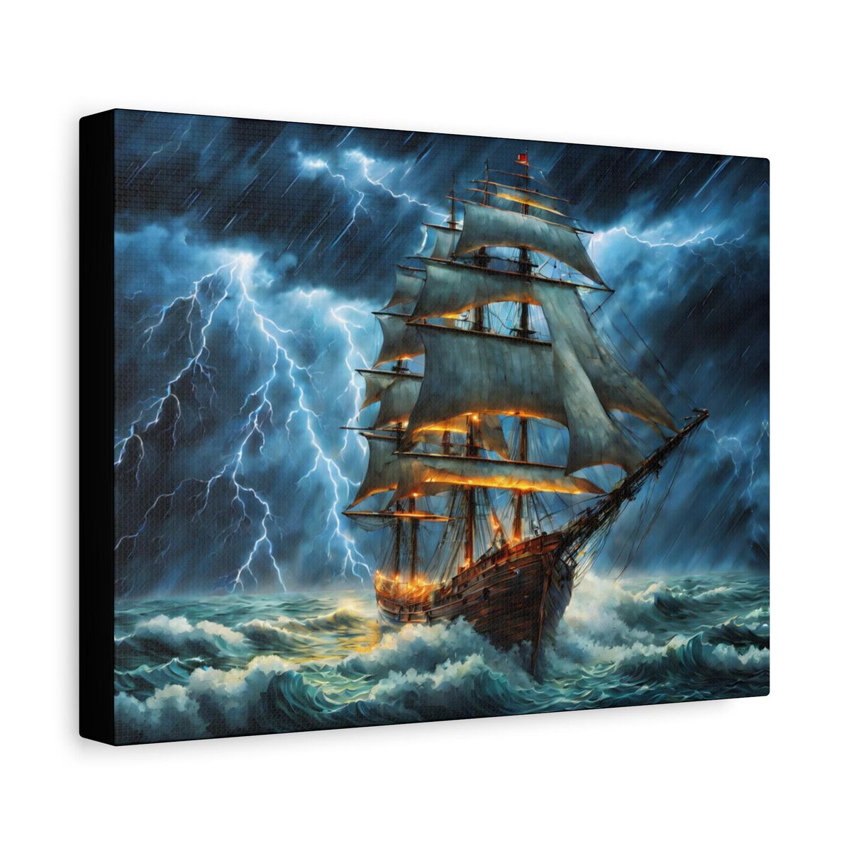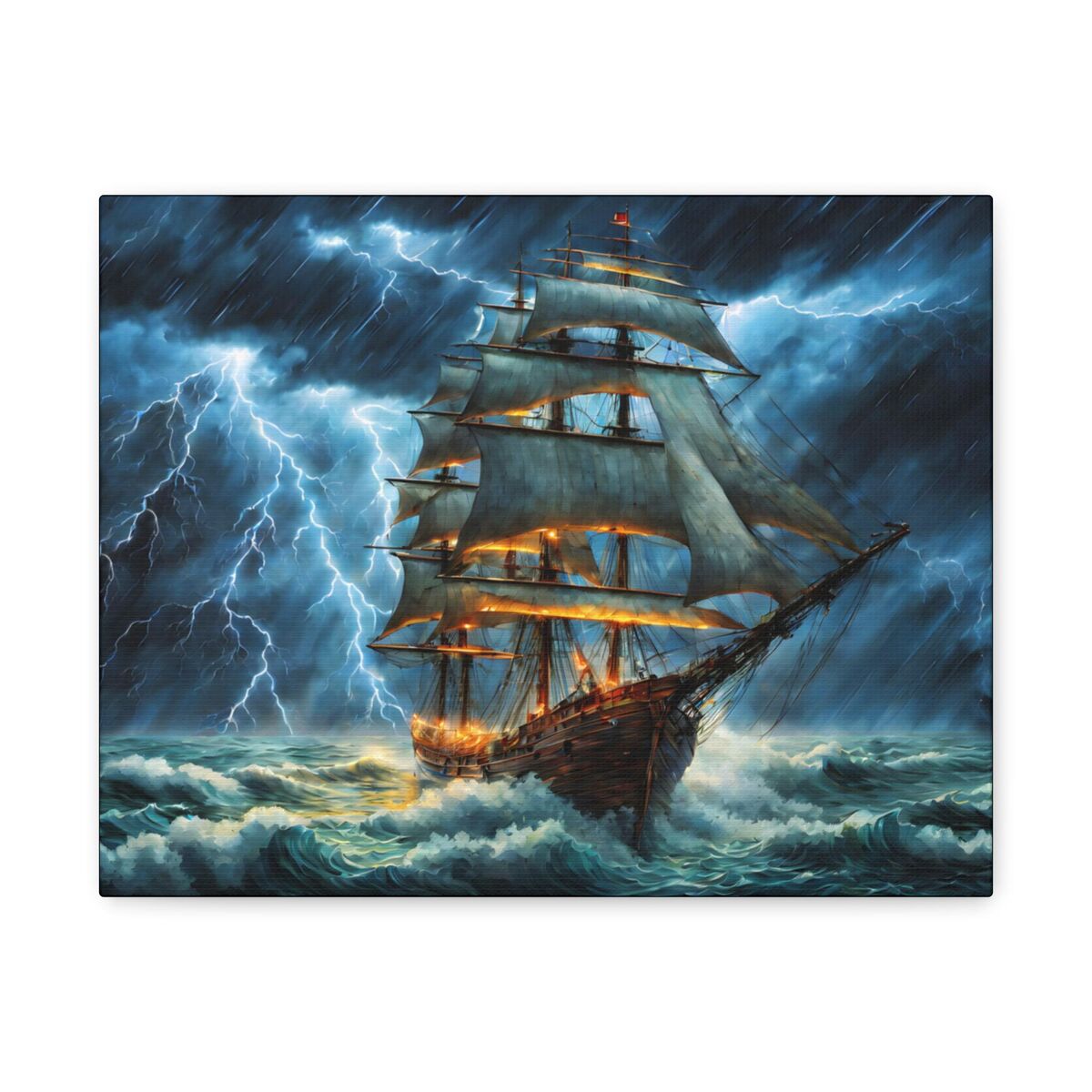 Storm At Sea Oil Painting Canvas Print Nautical Seascape Ships Wall Art Moody Dark Academia Large Size Framed Canvas Print