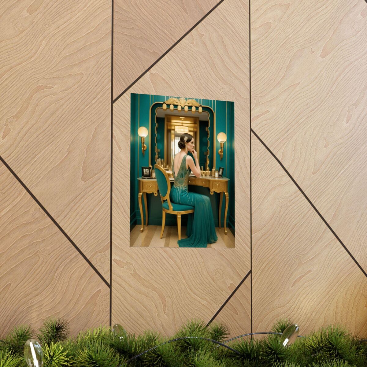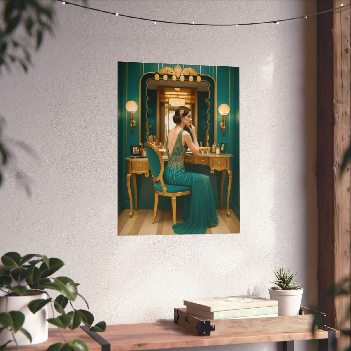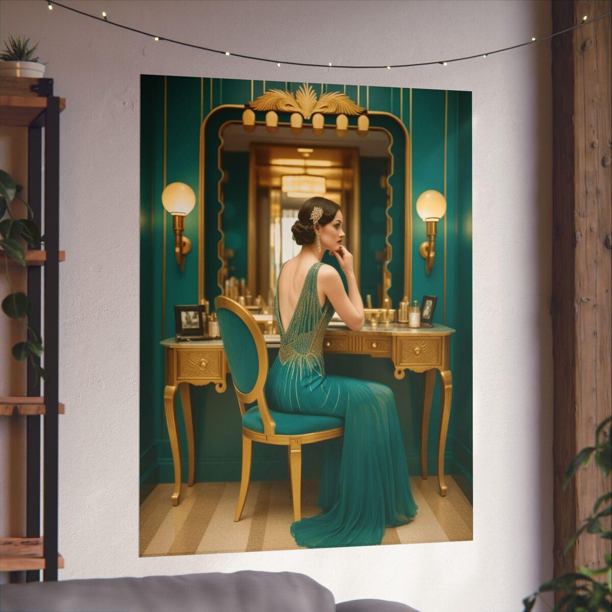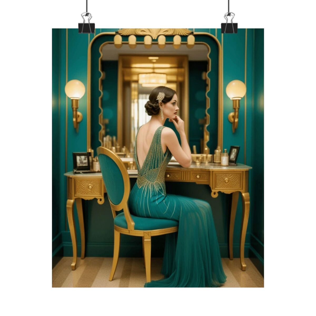 Black Teal Art Deco Gatsby Girl 1920 Style Powder Room Bathroom Poster Print Wall Art Retro Home Decor