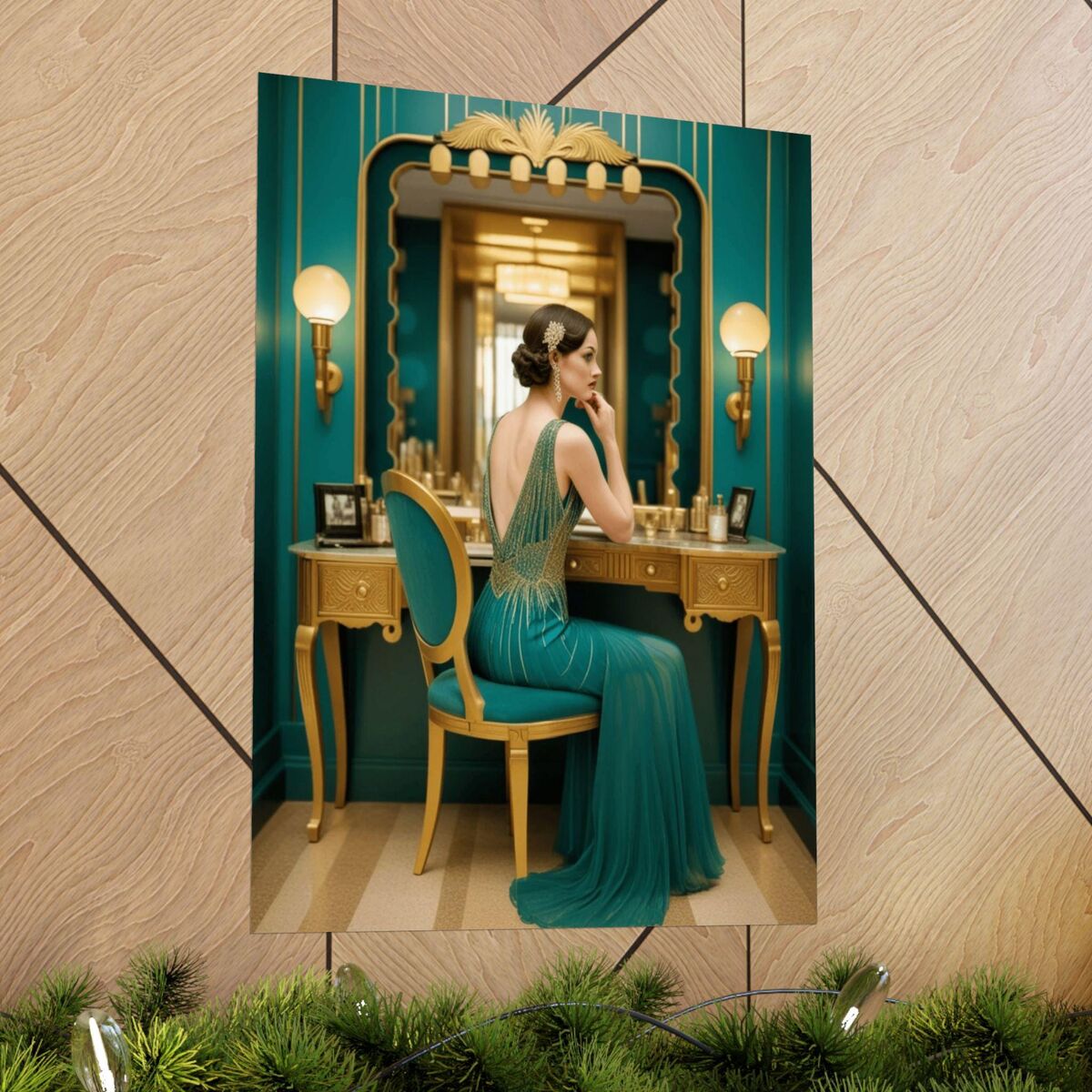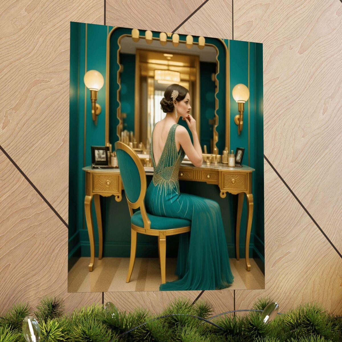 Teal Gold Flapper Art Deco Bathroom Print Gatsby Girl Poster Retro Powder Room Wall Art 1920s Style Home Decor