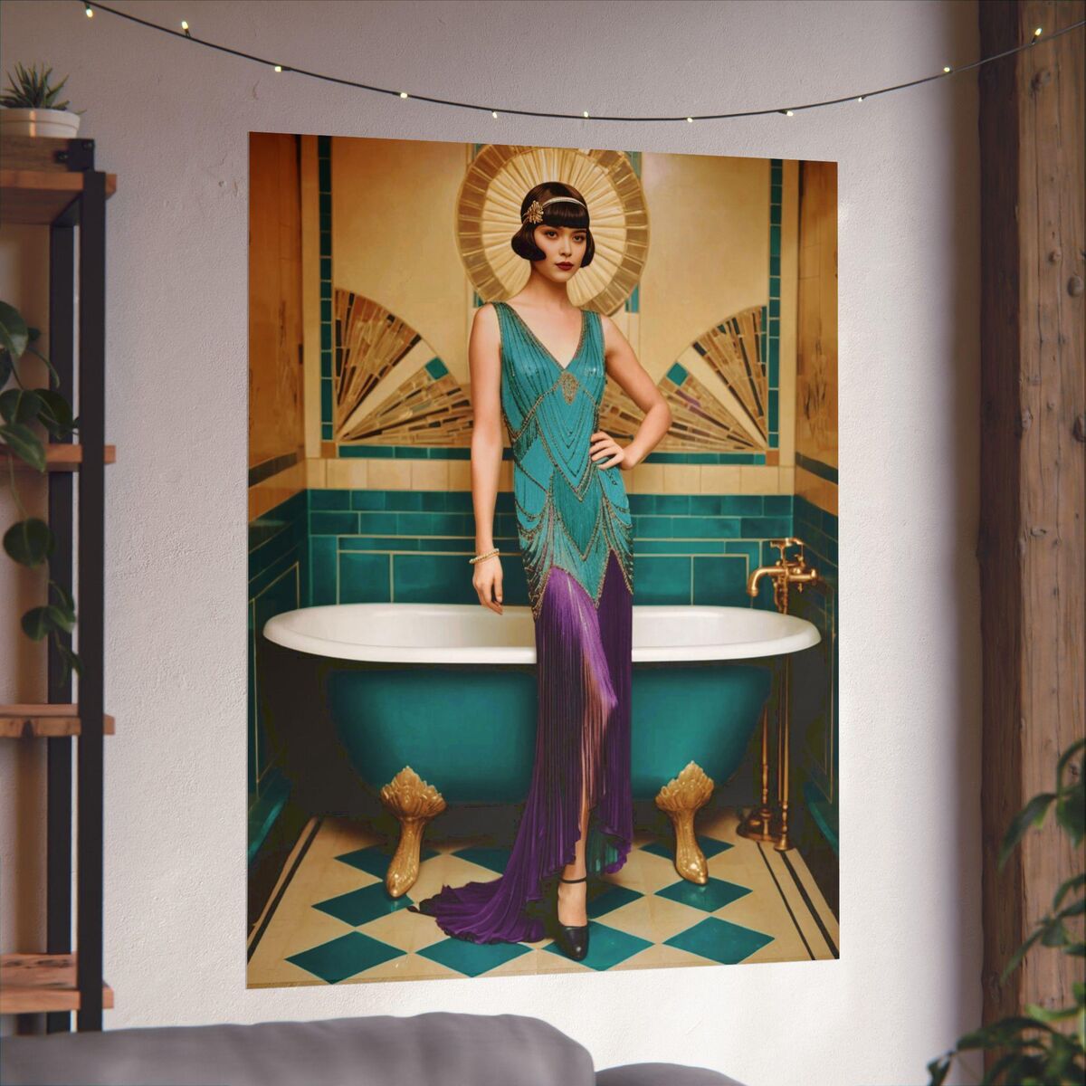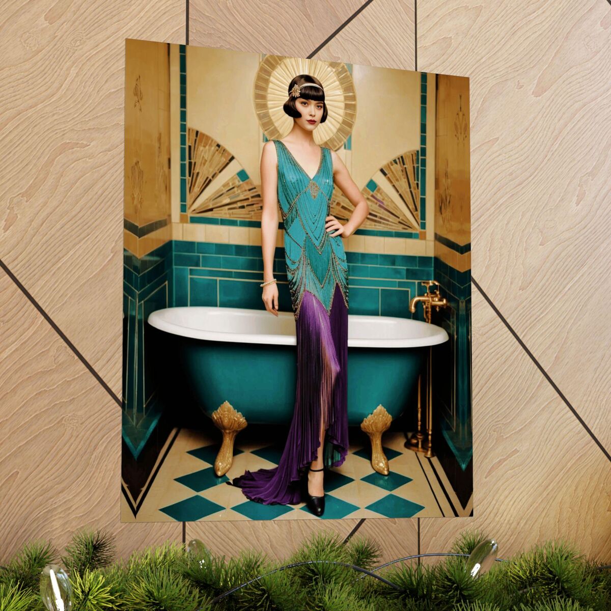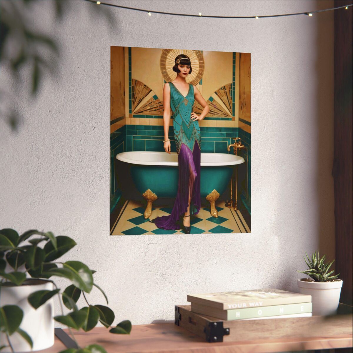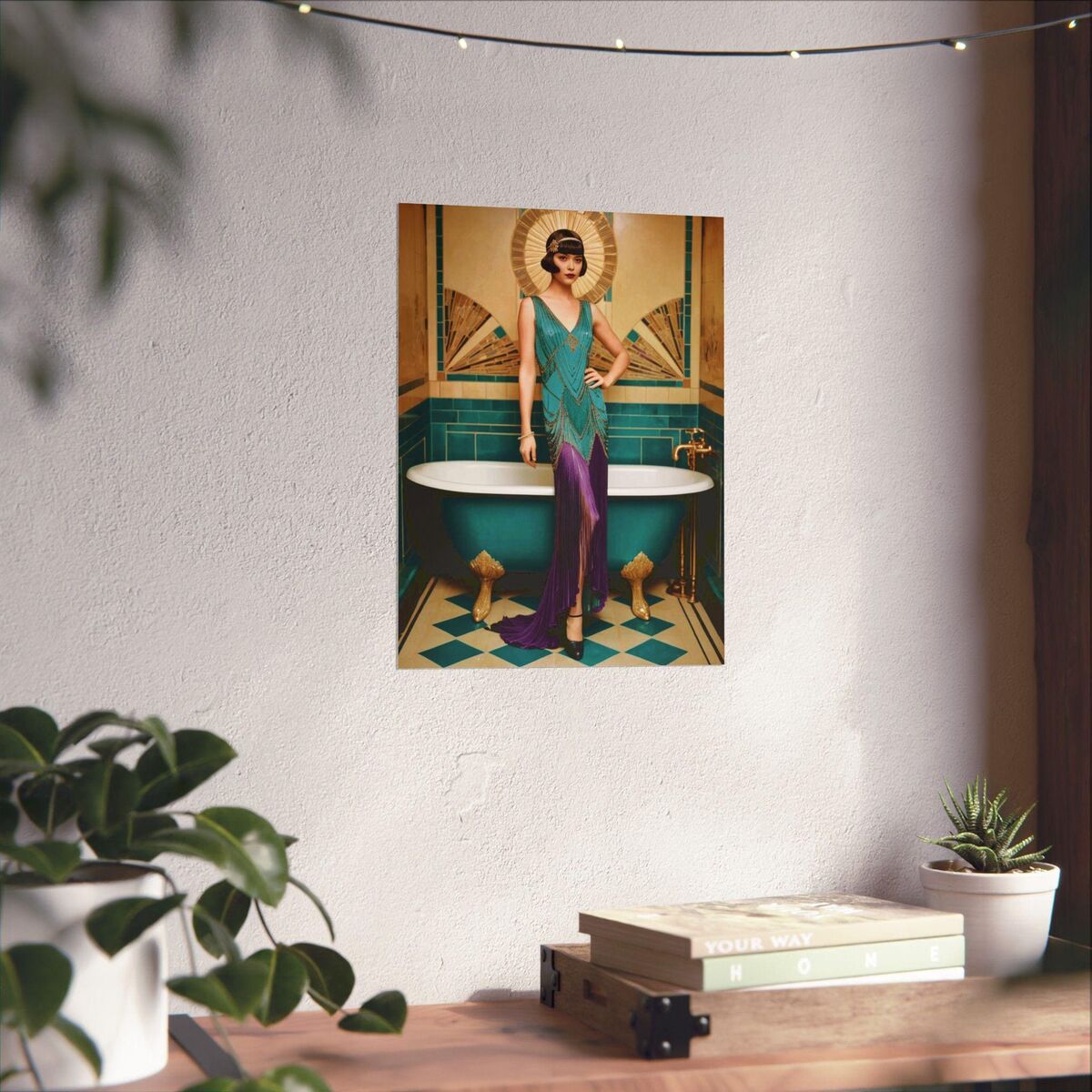 Bathroom Decor Flapper Art Deco Gatsby Girl 1920s Retro Style Painting Poster Print Wall Art Girl Woman In Bathtub Home Decor