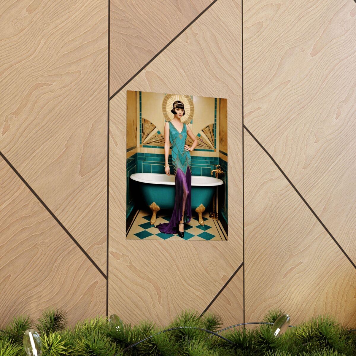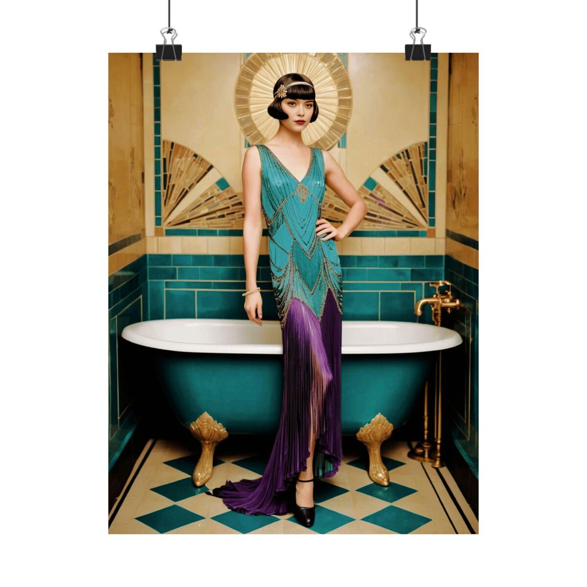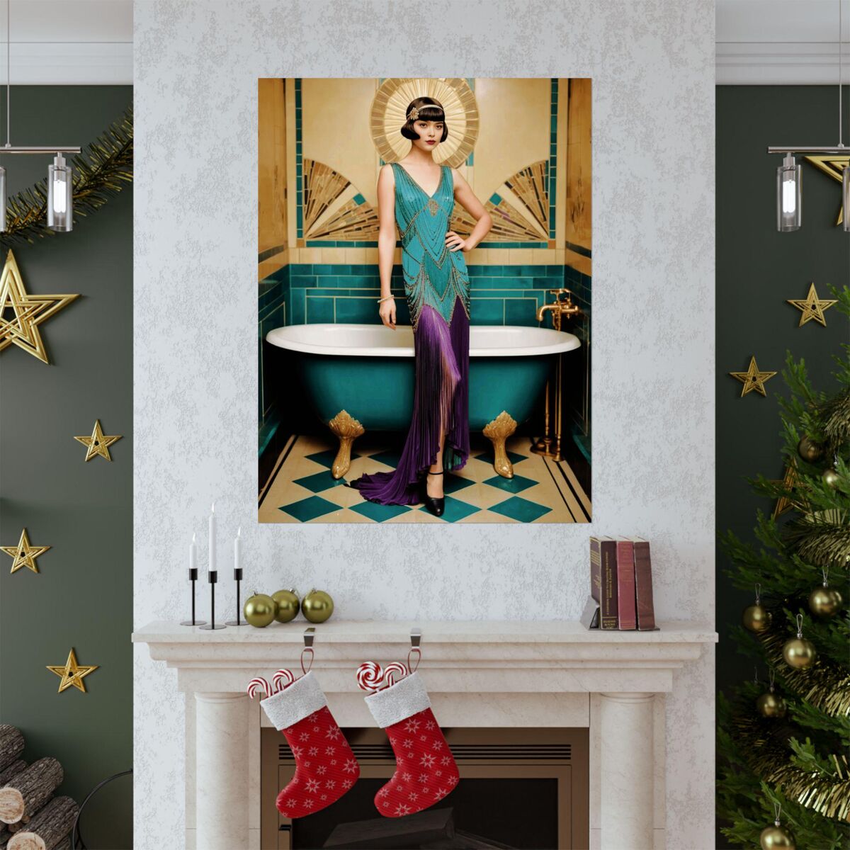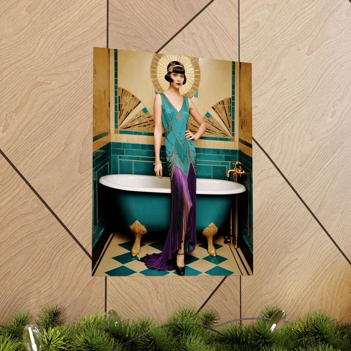 Bathroom Decor Flapper Art Deco Gatsby Girl 1920s Retro Style Painting Poster Print Wall Art Girl Woman In Bathtub Home Decor