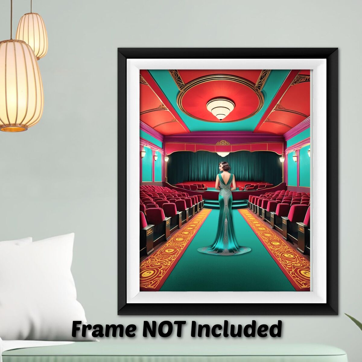 Theater Art Deco Poster Print Flapper Wall Art Painting Print Gatsby Old Hollywood Girl Glamour Gatsby Retro Poster 1920s Wall Art