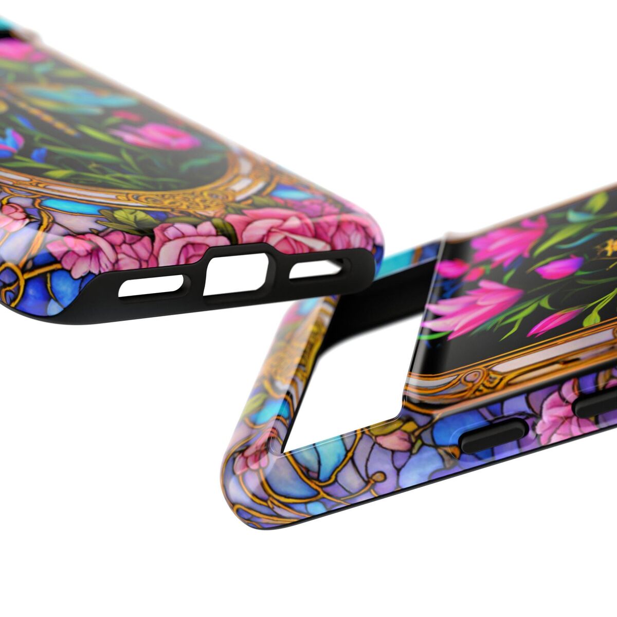 This stained glass look phone case features a beautiful luna moth Art Nouveau design inspired by nature, giving it a whimsical and artistic touch. The faux stained glass effect adds a unique and elegant look to your iPhone or Samsung Galaxy device, available for various models including iPhone 15, 14, 13, 12, 11, and Samsung Galaxy S23, S22, S21, and more.