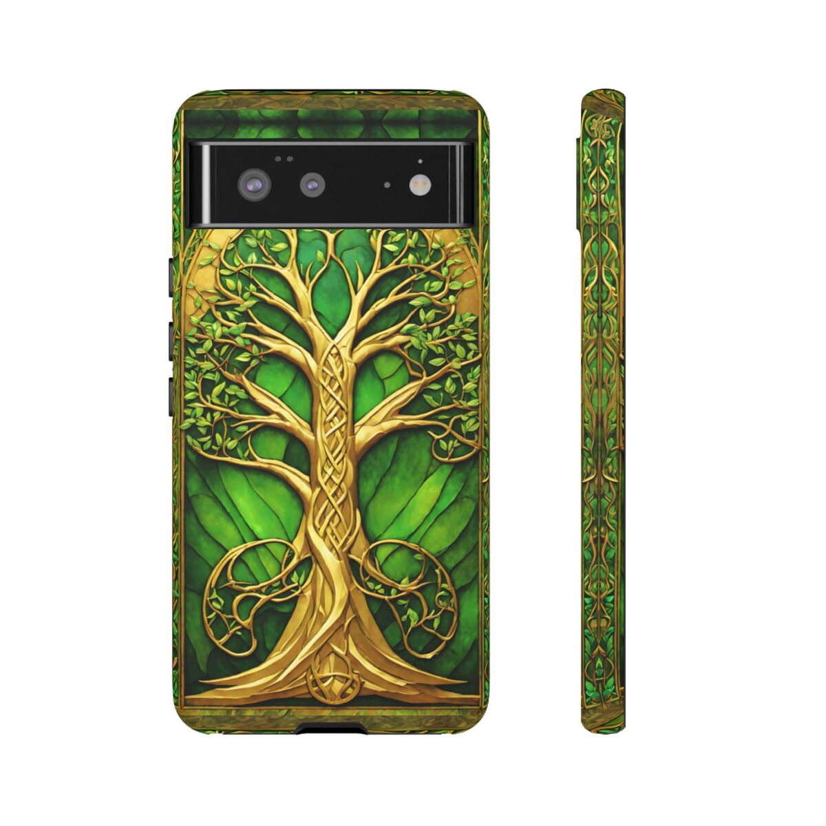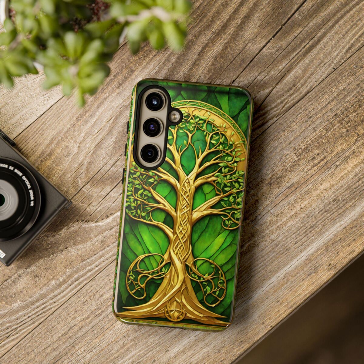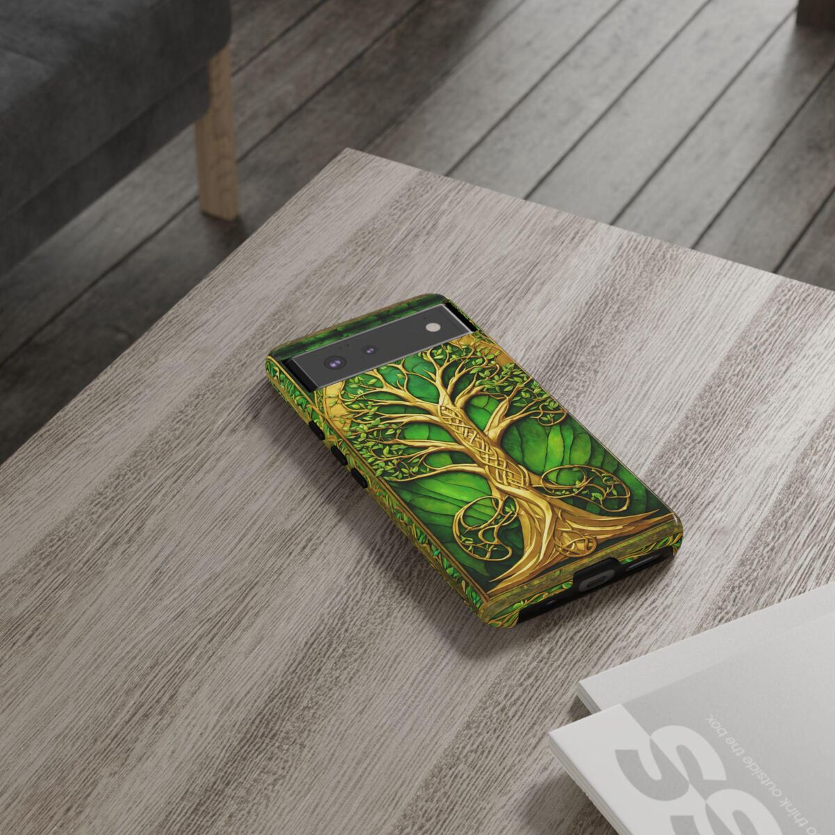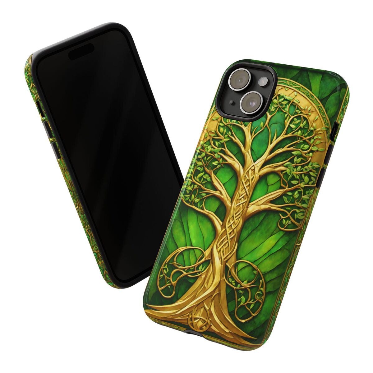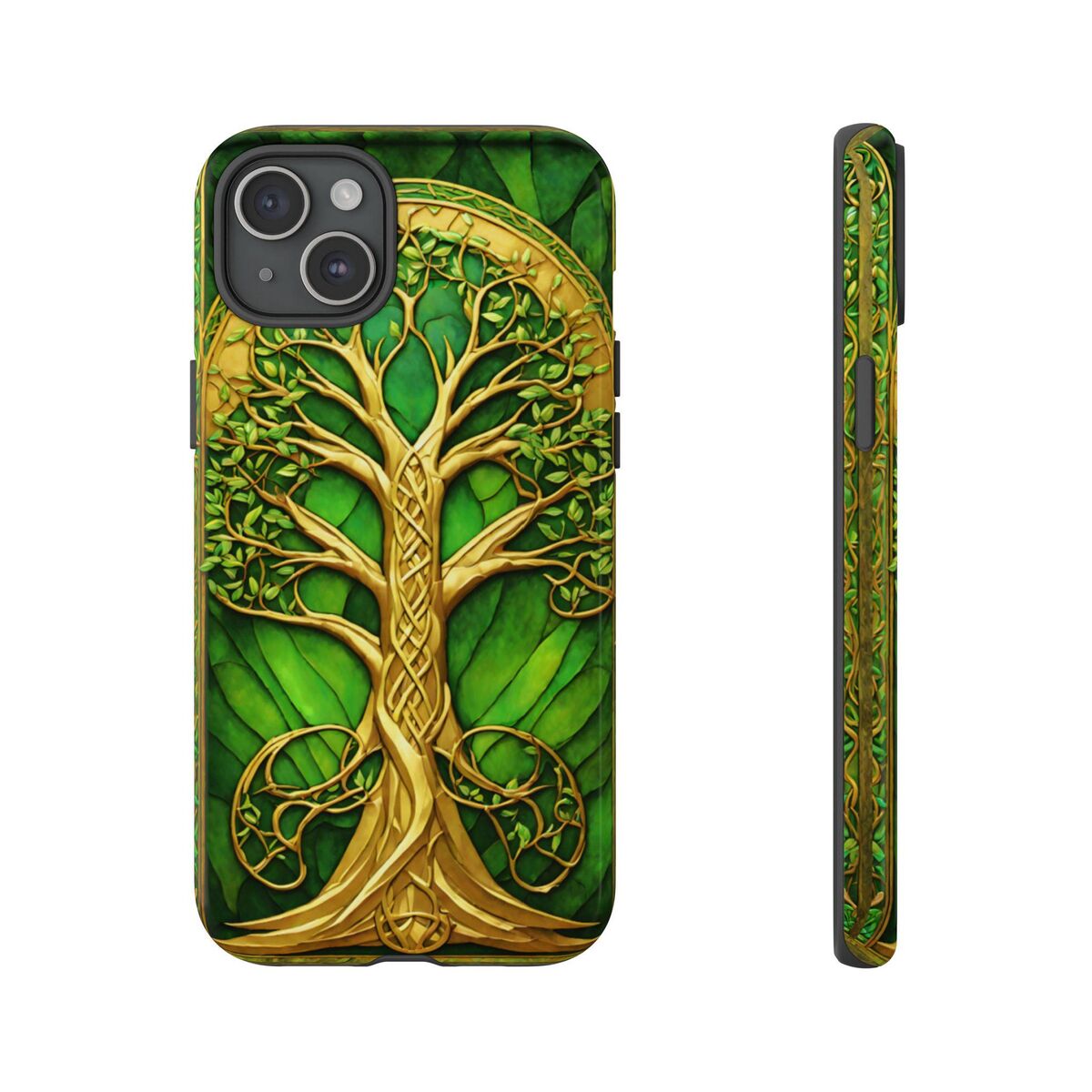 Tree Of Life Phone Tough Case Scottish Irish Witchy Faux Stained Glass Fits iphone 16 15 14 13 Pixel 8 Galaxy S24 S23 S 22 And More