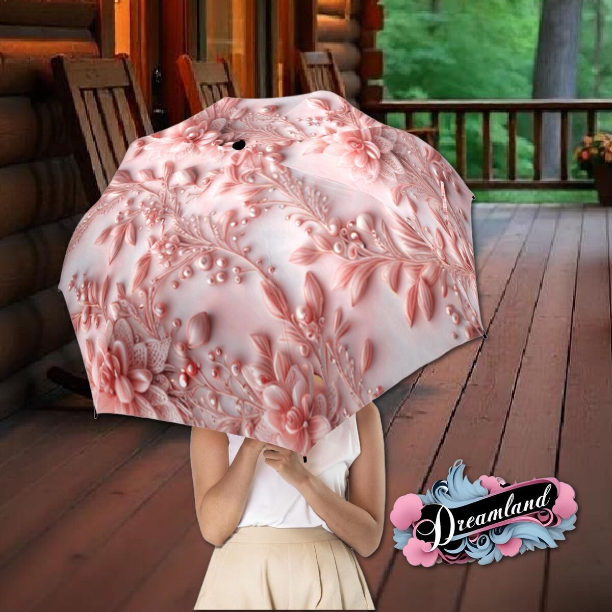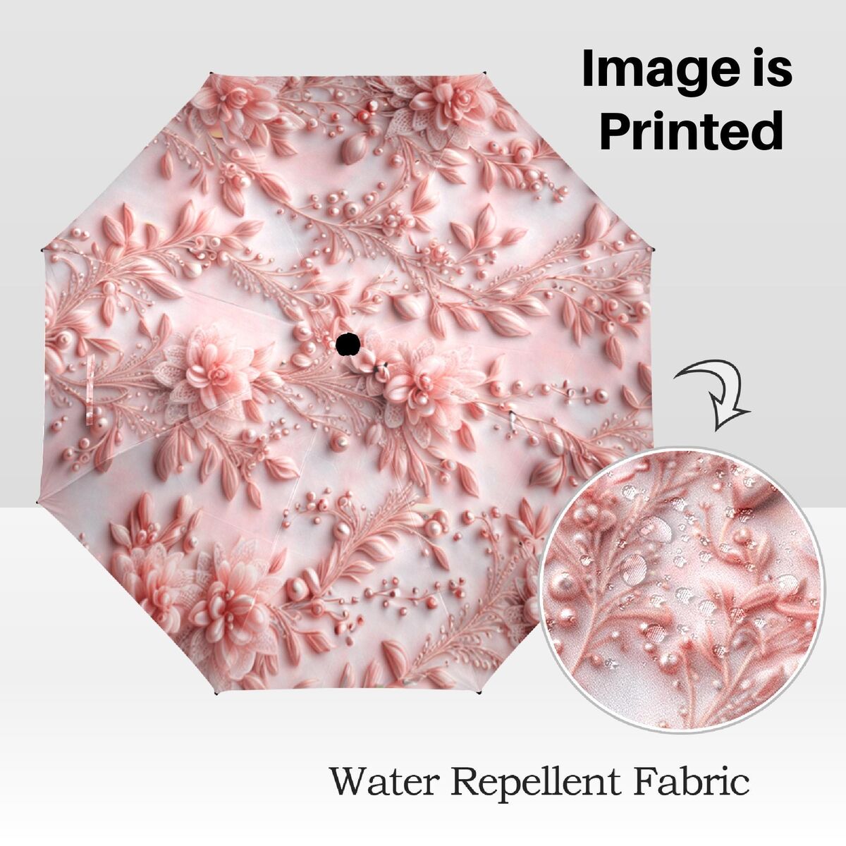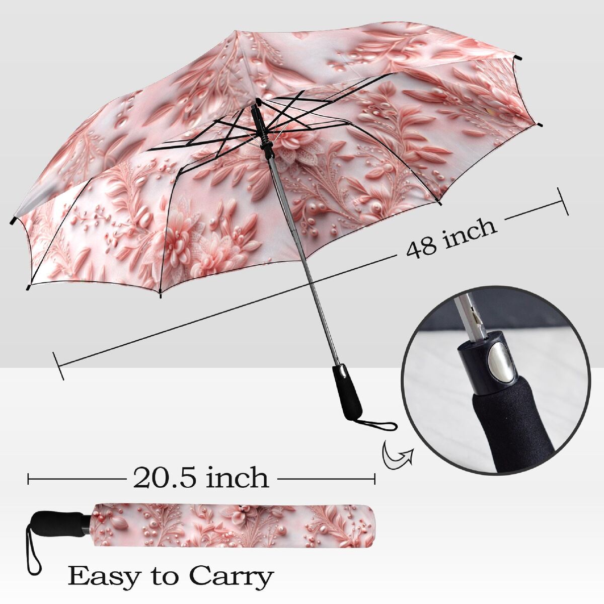 Umbrella Pink Romantic Flower Floral Art Nouveau Style Printed Faux Floral Lace Parasol Semi-Automatic Waterproof Foldable Umbrella