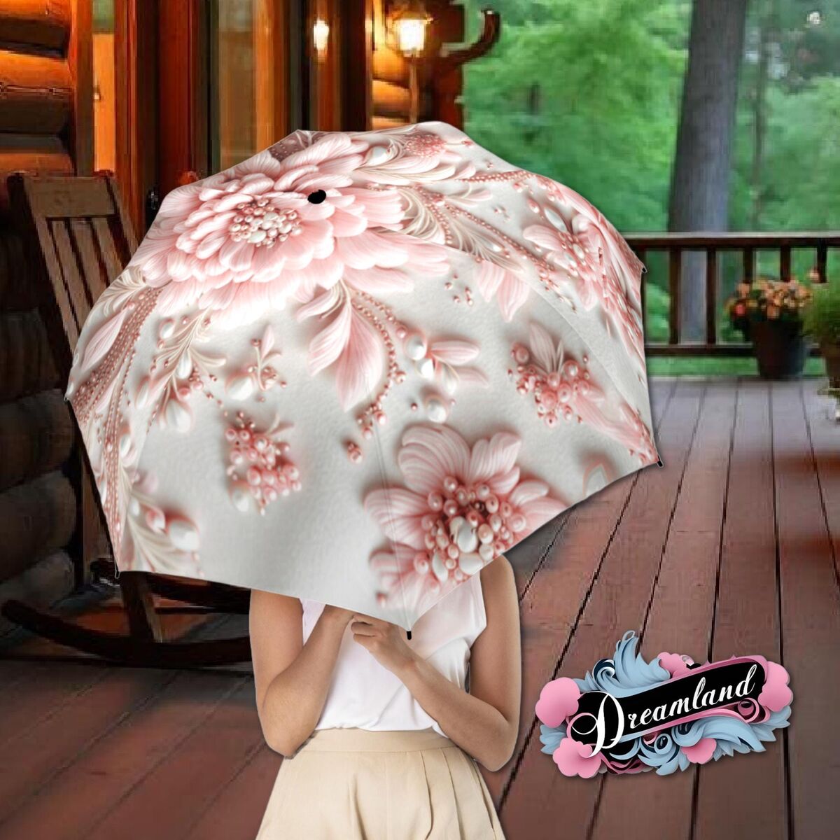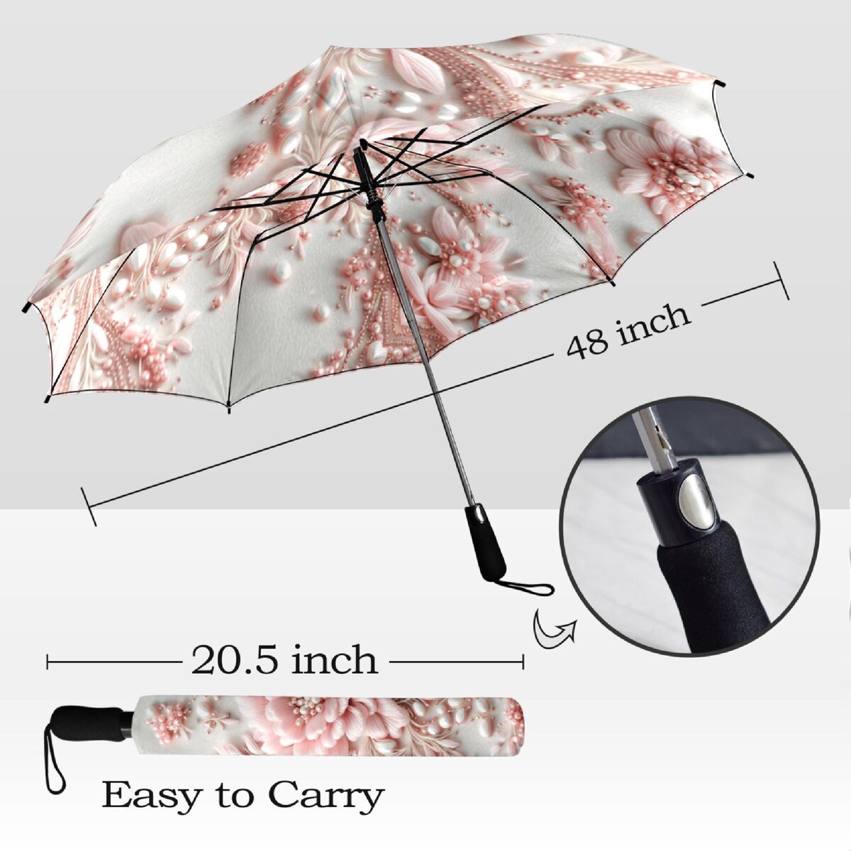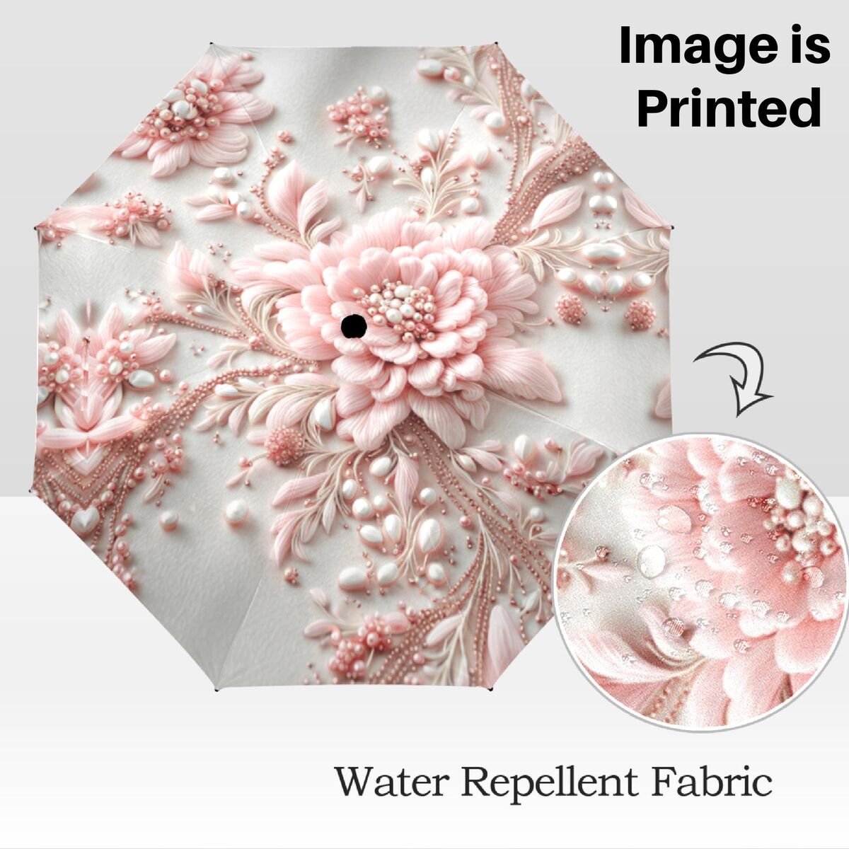 Umbrella Romantic Pink Flower Floral Art Nouveau Style Printed Faux Floral Lace Parasol Semi-Automatic Waterproof Foldable Umbrella