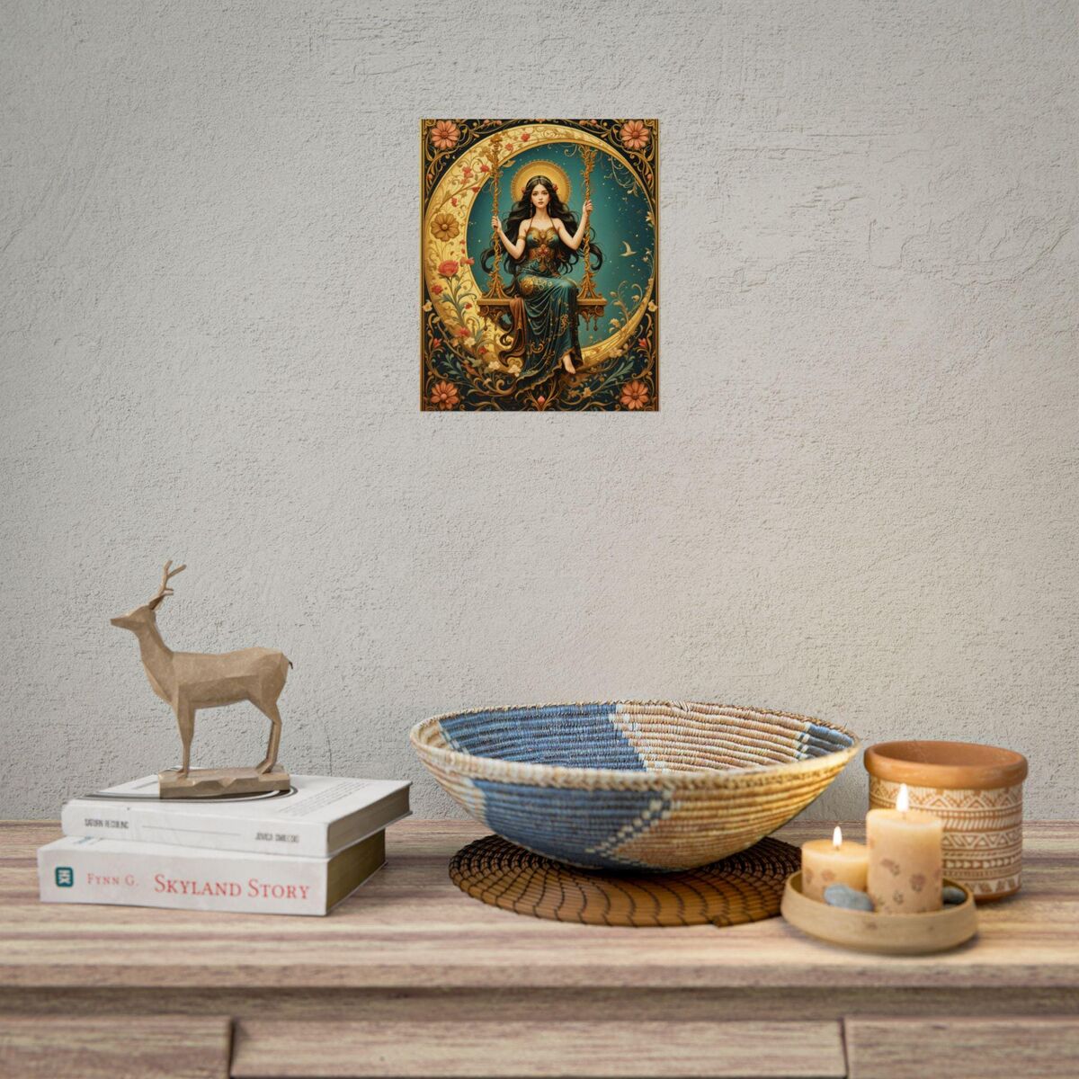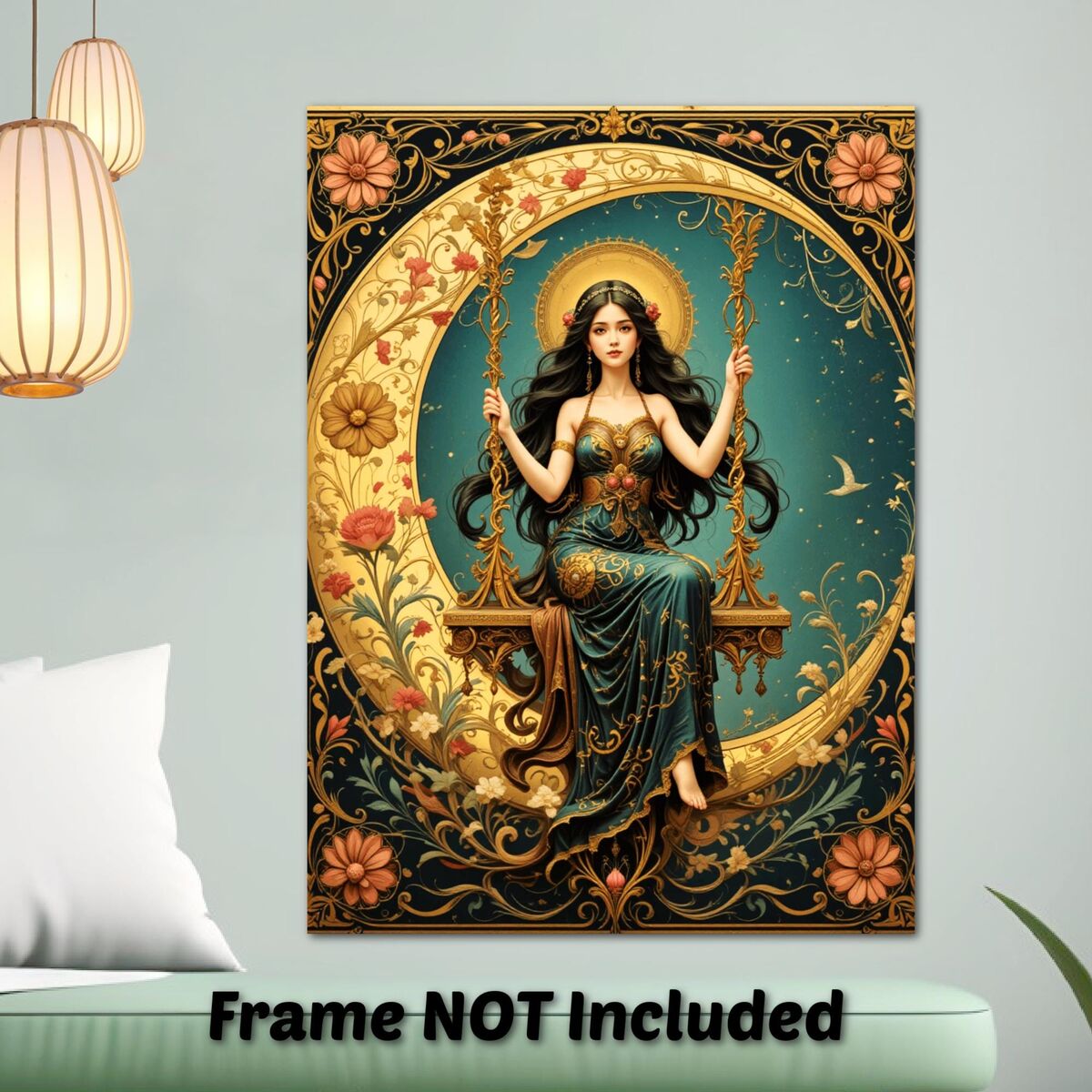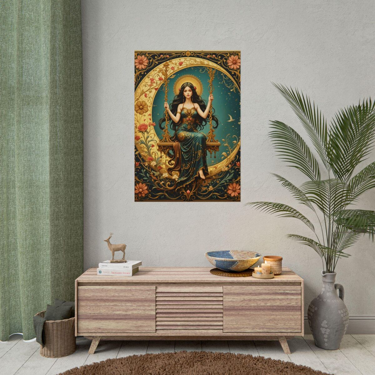 Art Nouveau Poster Print Boho Lady Moon Goddess Mucha Inspired Wall Art New Art Nouveau Bohemion Home Decor