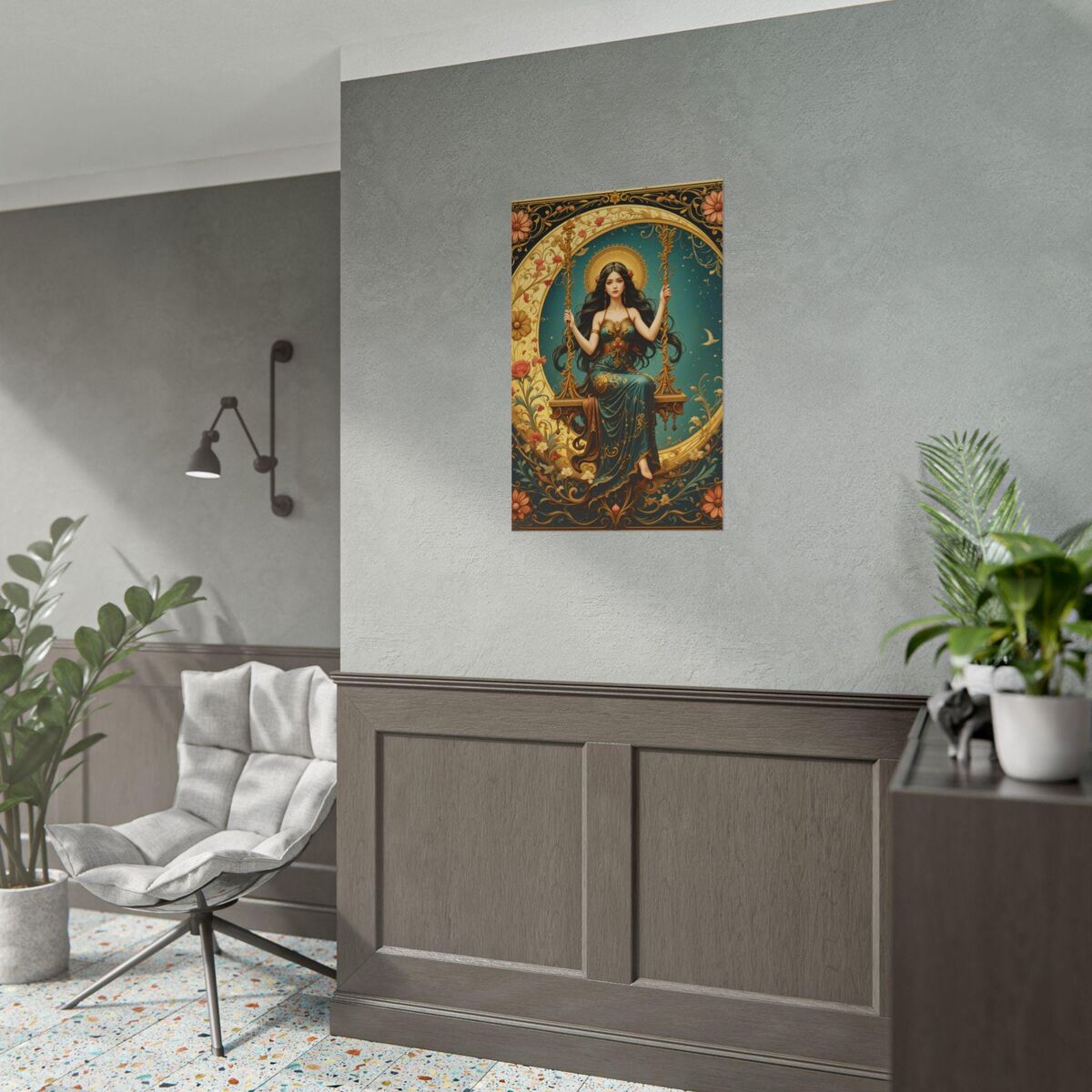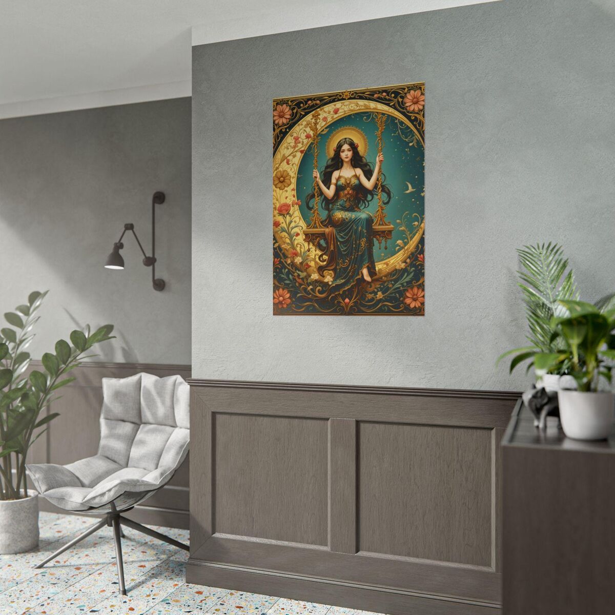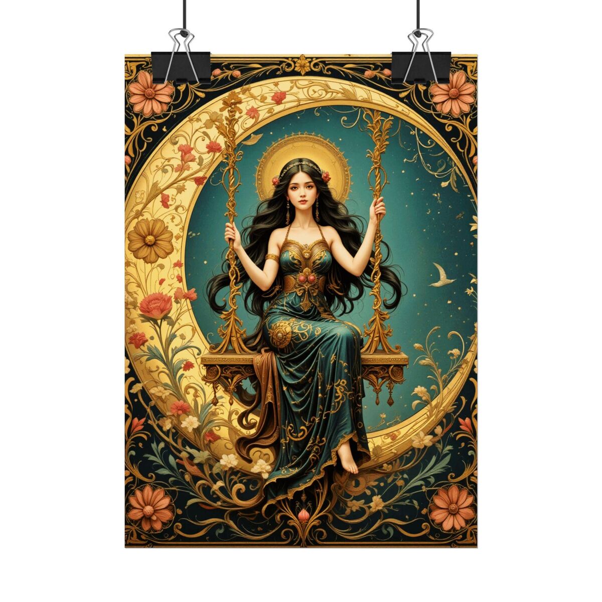 Art Nouveau Poster Print Boho Lady Moon Goddess Mucha Inspired Wall Art New Art Nouveau Bohemion Home Decor