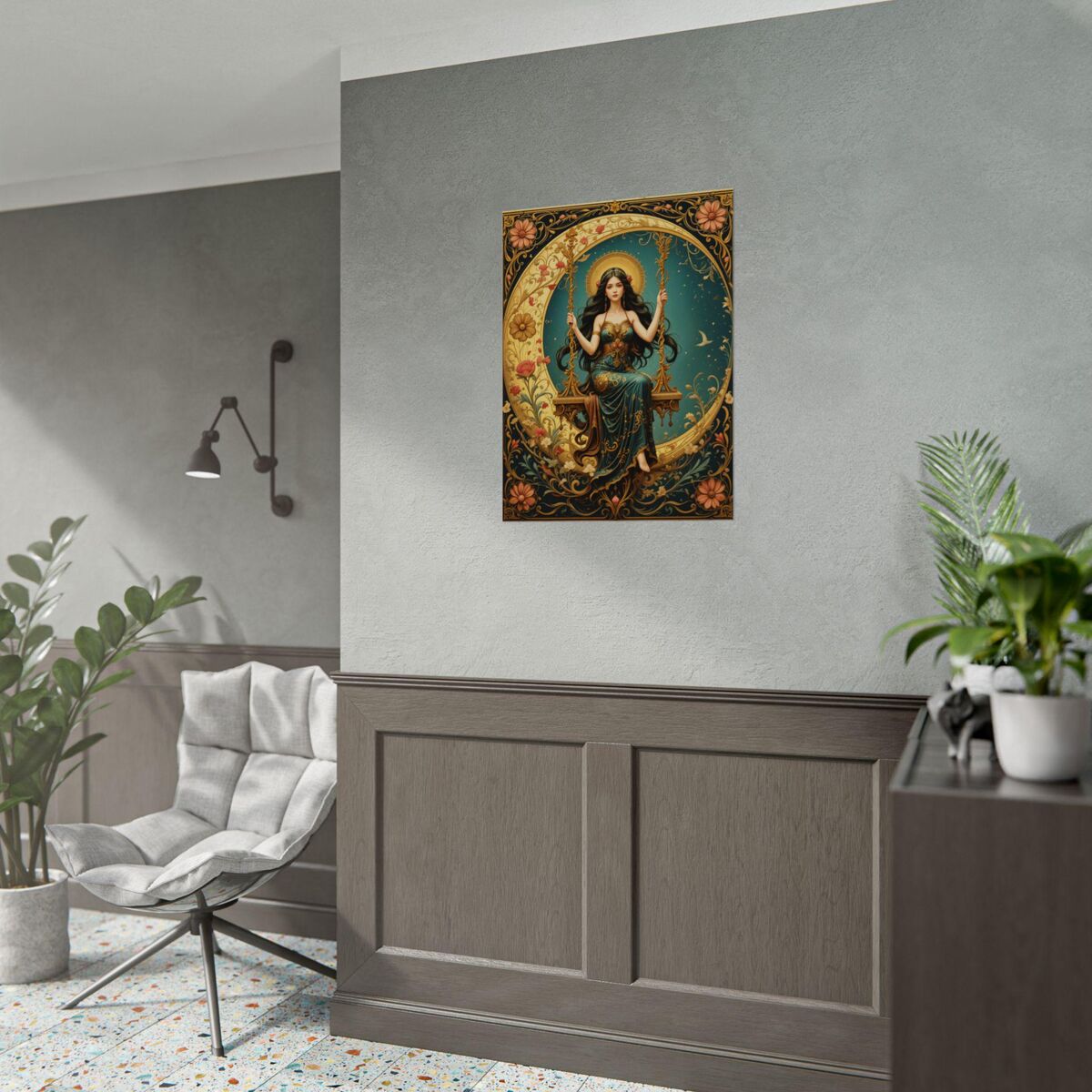 Introducing our Art Nouveau Poster Print, featuring a captivating Boho Lady. Inspired by the renowned artist Mucha, this wall art piece beautifully captures the essence of the Art Nouveau movement.