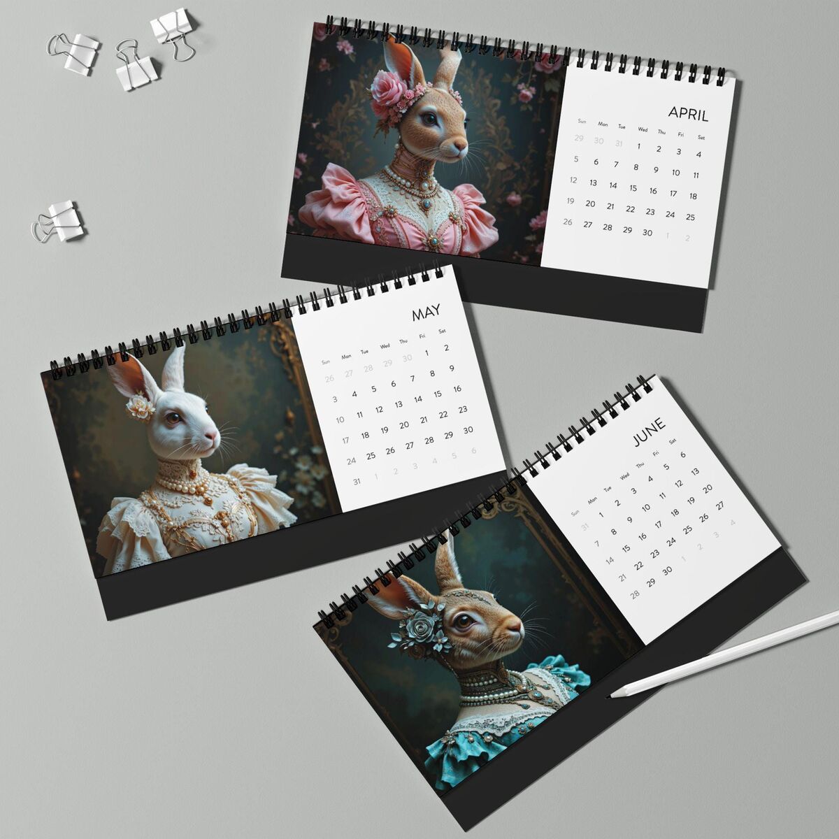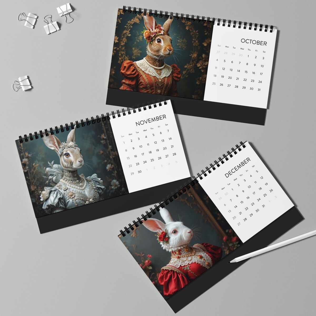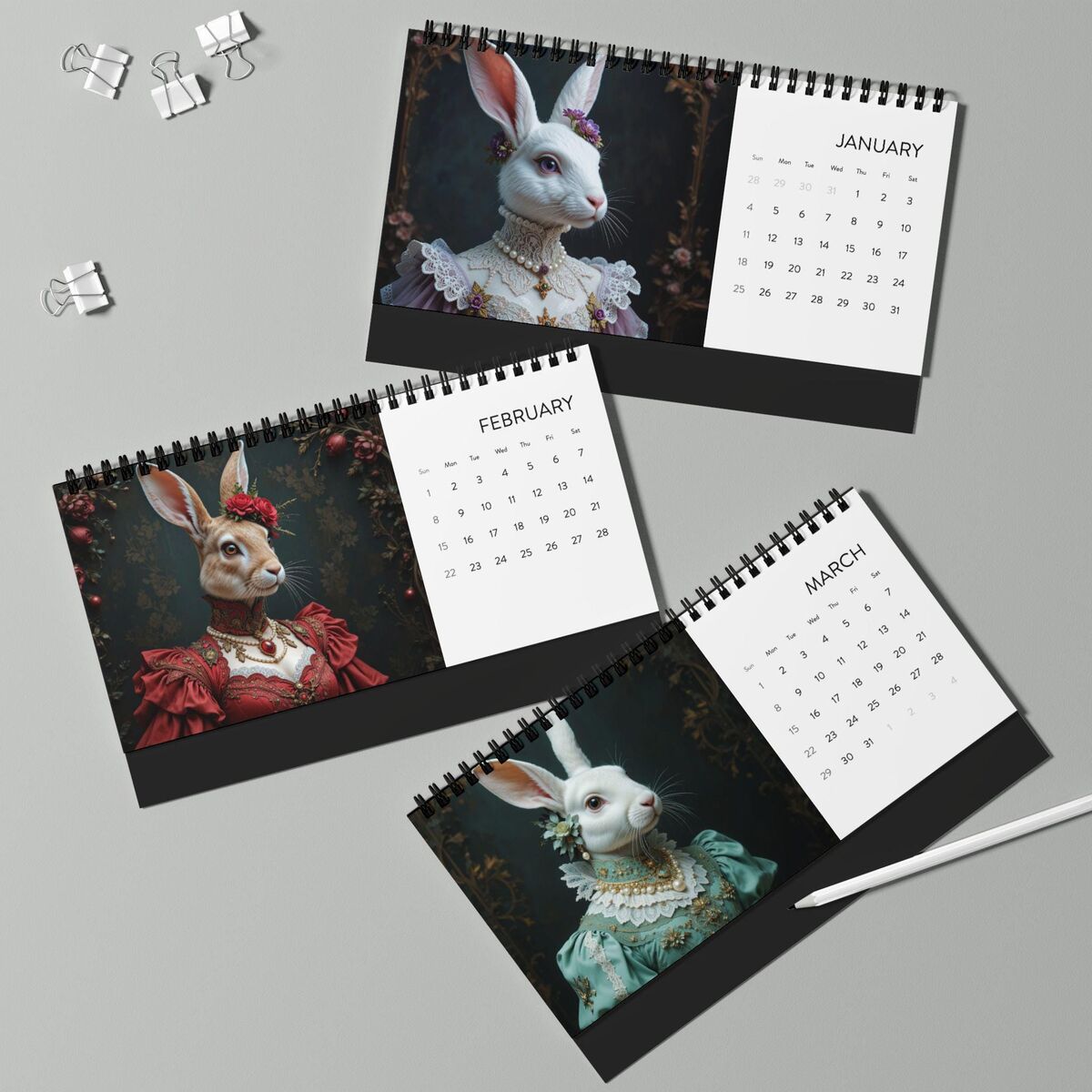 Renaissance Rabbits 2026 Wall Calendar Limited Edition Animals Wearing Clothes Planner Home Office Decor