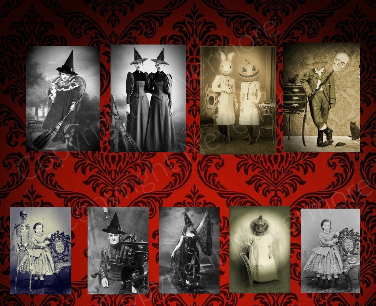 Vintage Halloween Digital Photos Printable Witch Skeleton Costumes Pumpkin Junk Journal Clip Art Printable Craft Ephemera Antique