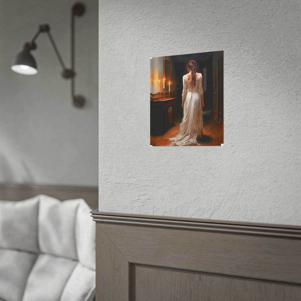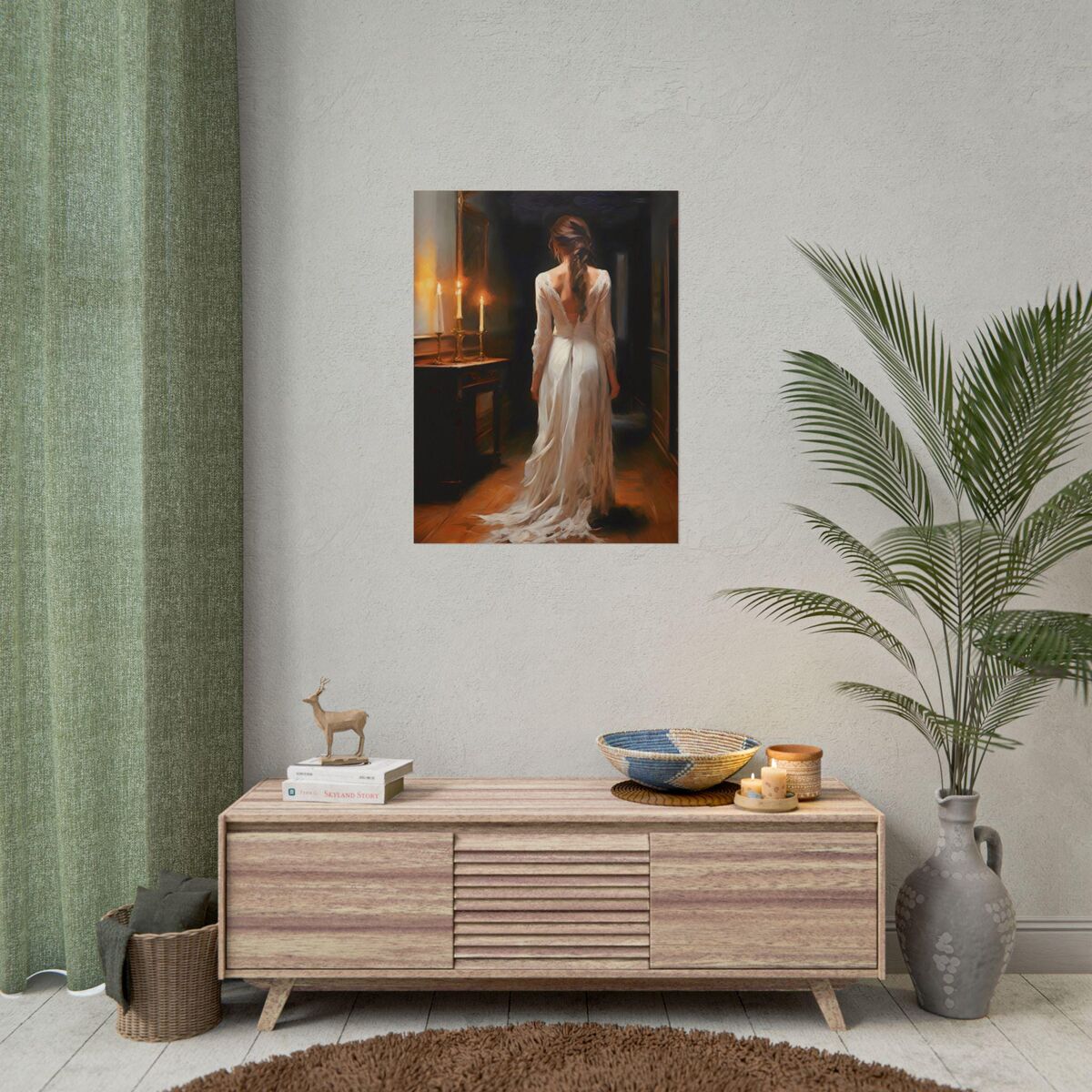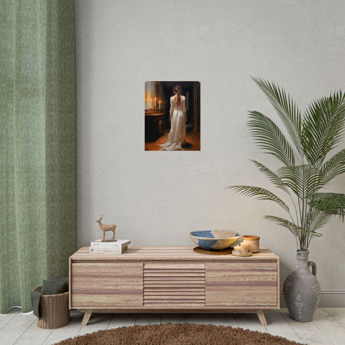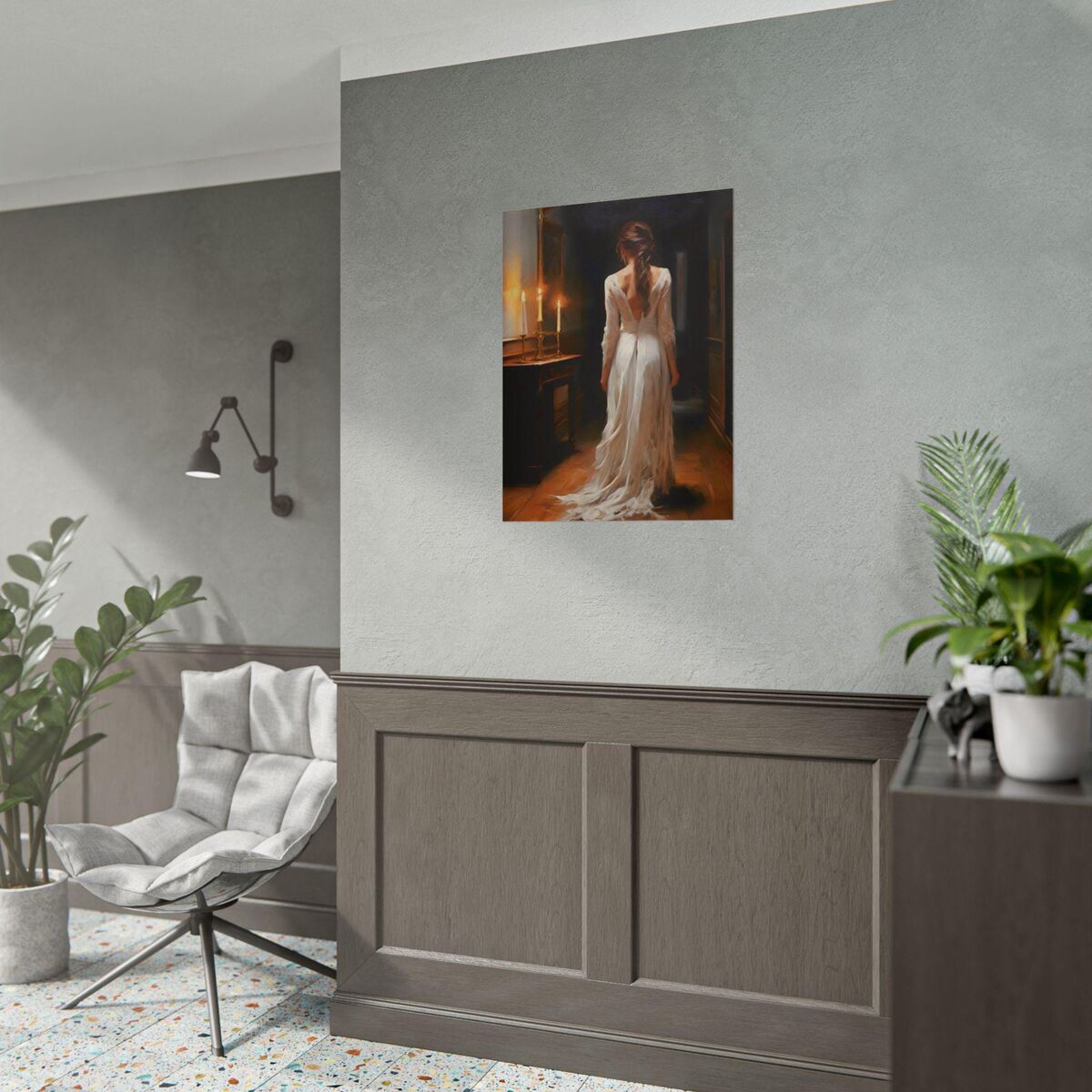 Enhance the ambiance of your living space with this captivating painint Print. This exquisite dark academia print features a mesmerizing ghost lady in a white torn dress, exuding an enchanting aura that will add a touch of mystique to any room. This is a print of the original painting, and is exclusive to Dreamland
