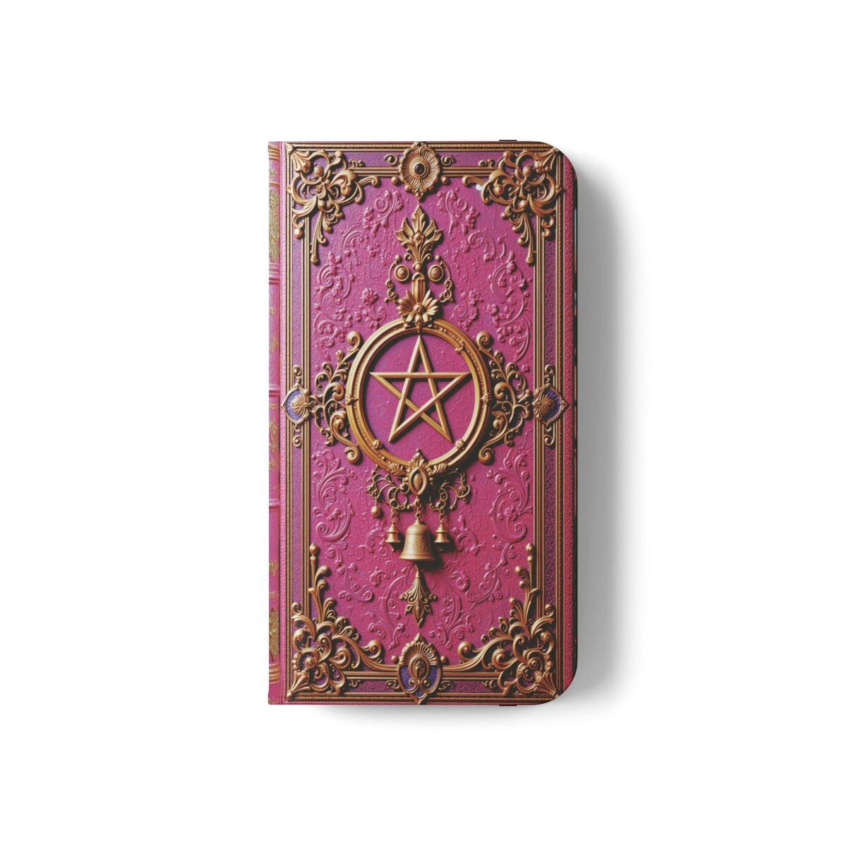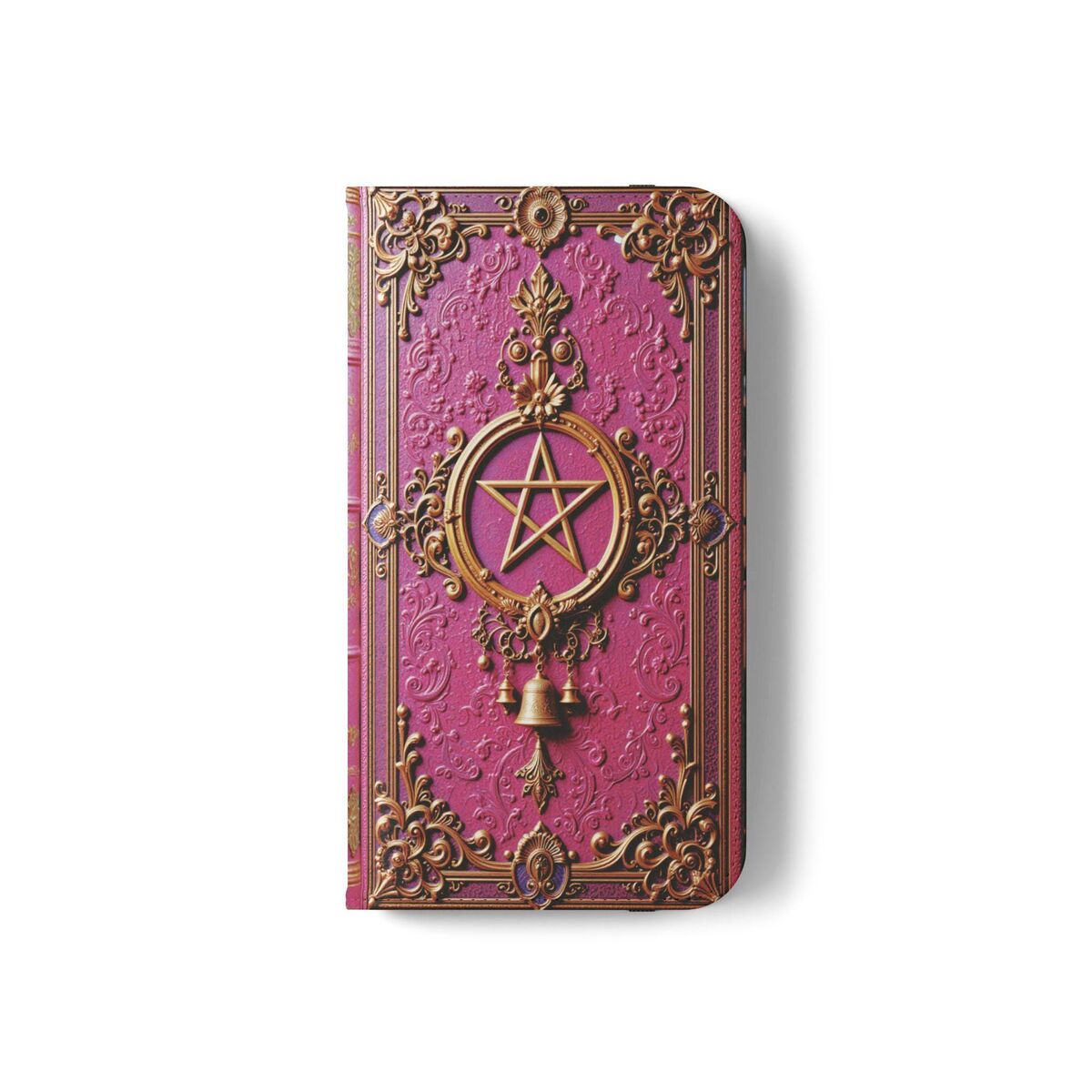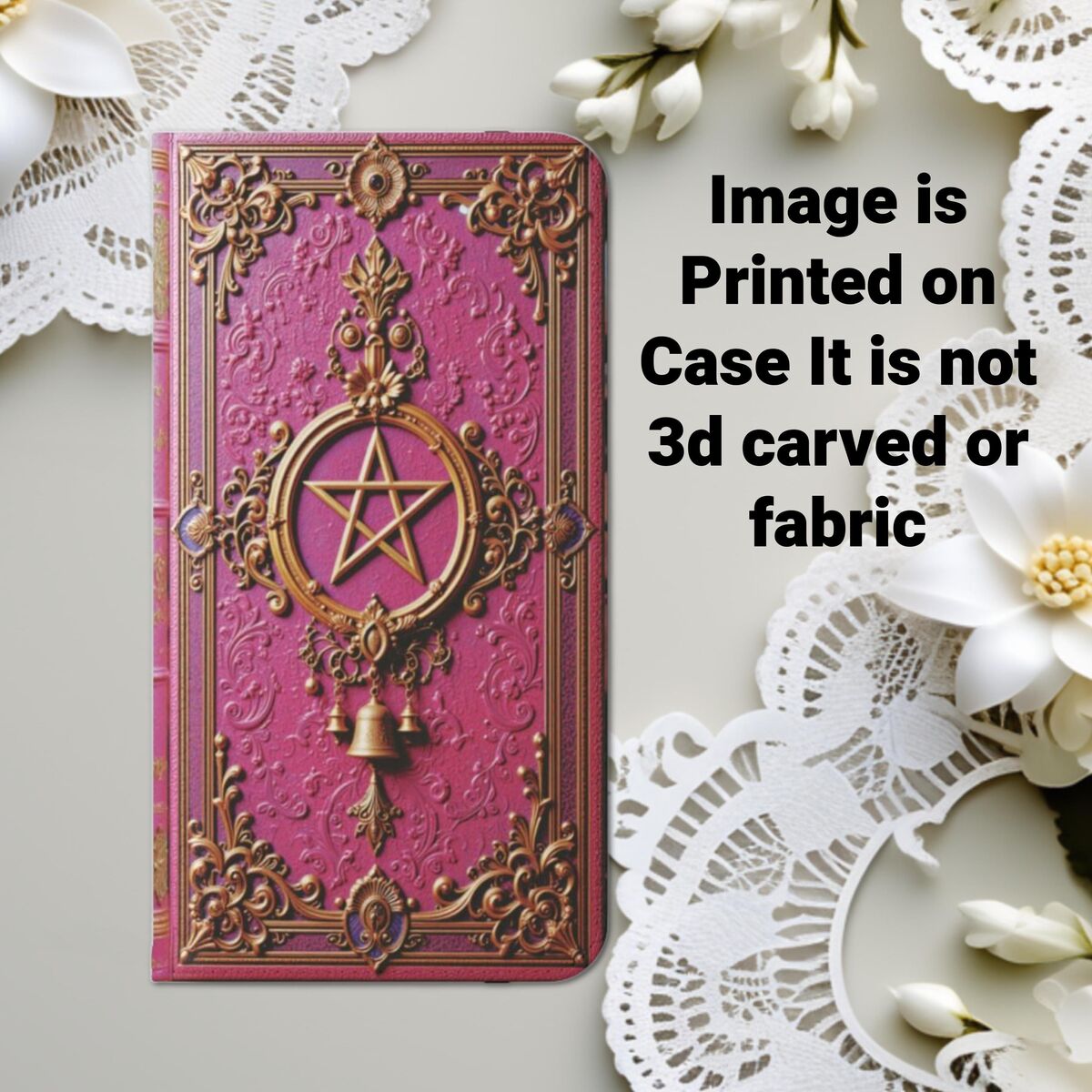 Wicca Book Phone Case Pink Wallet Witchy Moon Pegan Dark Academia Flip Case Card Case Fits iphone 16 15 14 Galaxy S25 And More