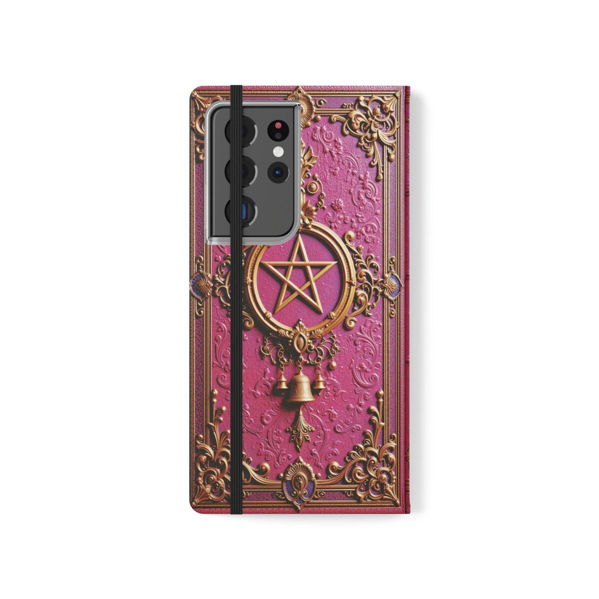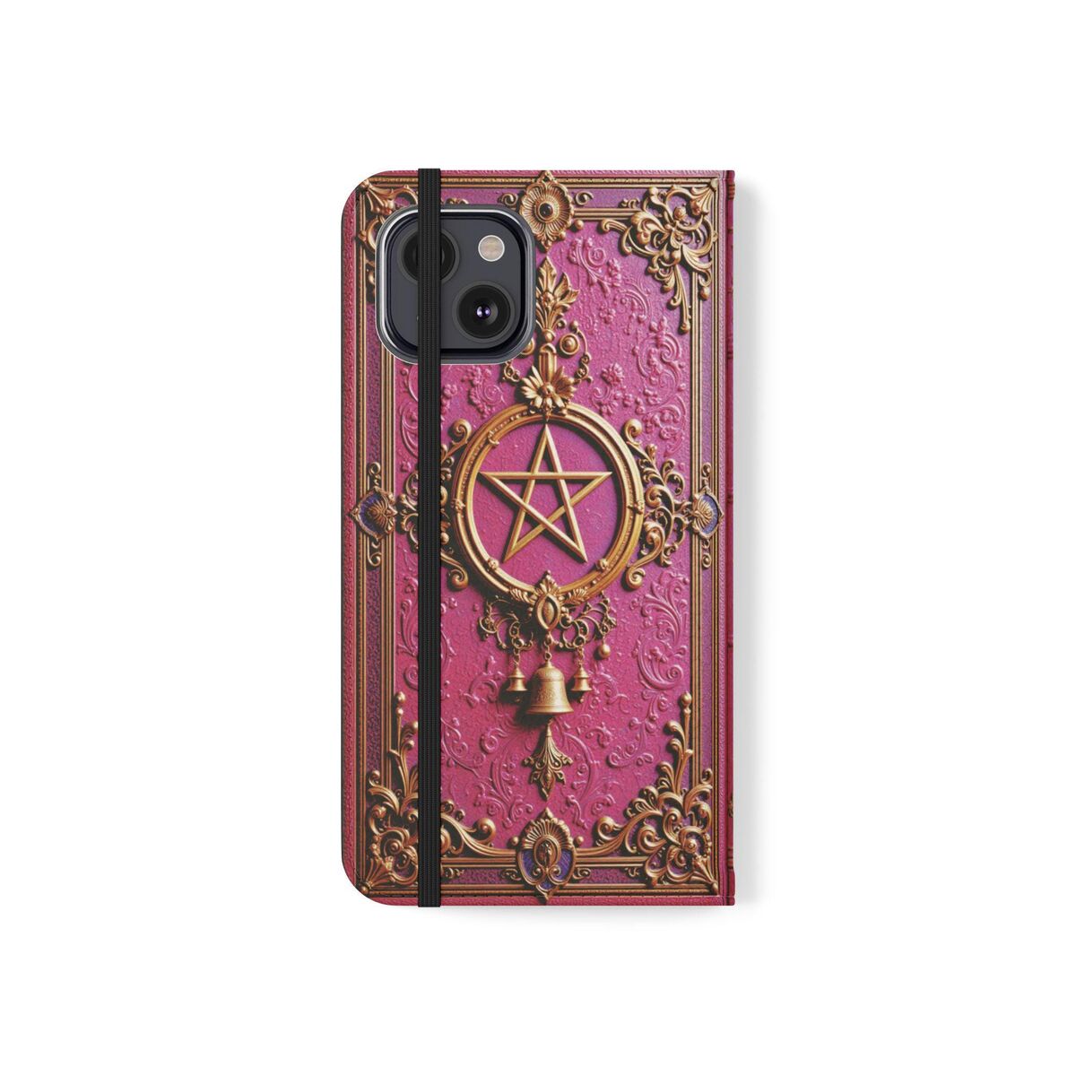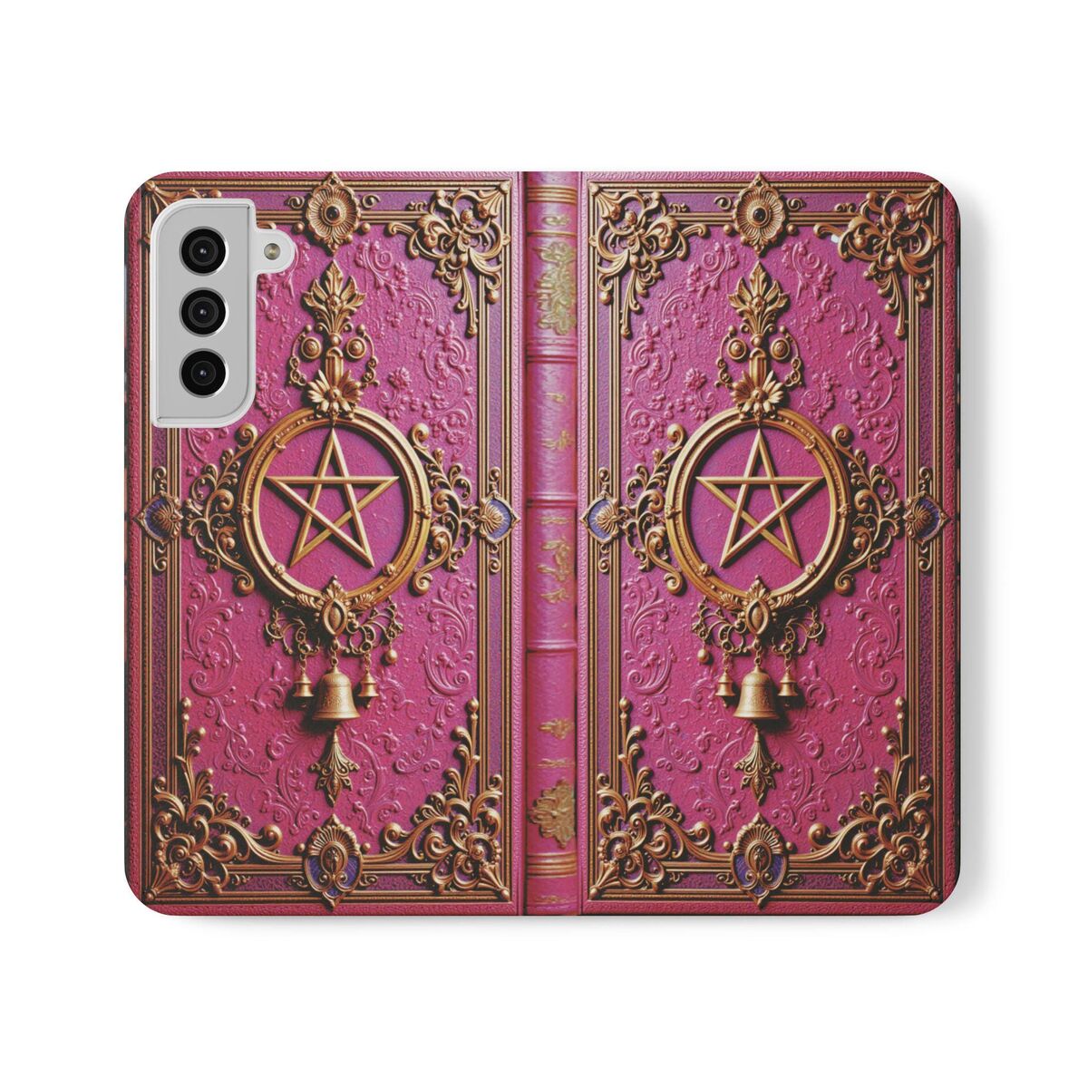 Wicca Book Phone Case Pink Wallet Witchy Moon Pegan Dark Academia Flip Case Card Case Fits iphone 16 15 14 Galaxy S25 And More