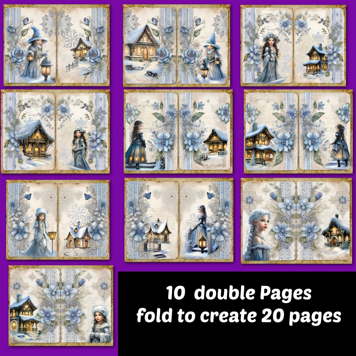 Snow Angel Journal Pages Shabby Winter Printable Journal Junk Kit Vintage Ephemera Paper Digital Download