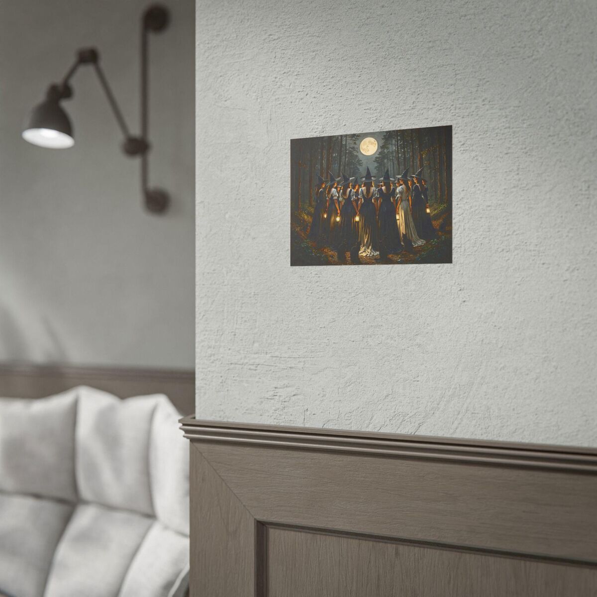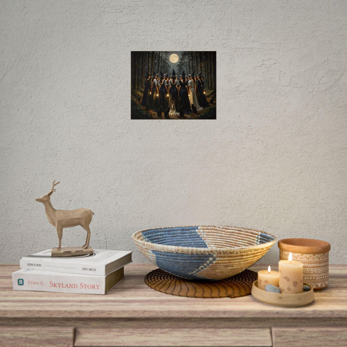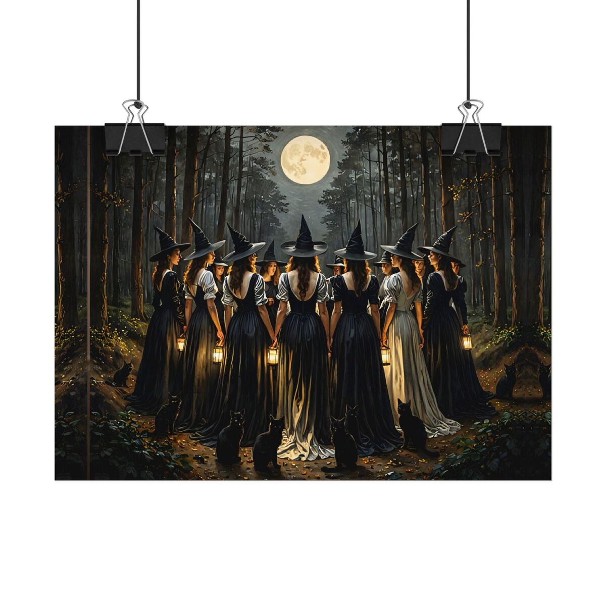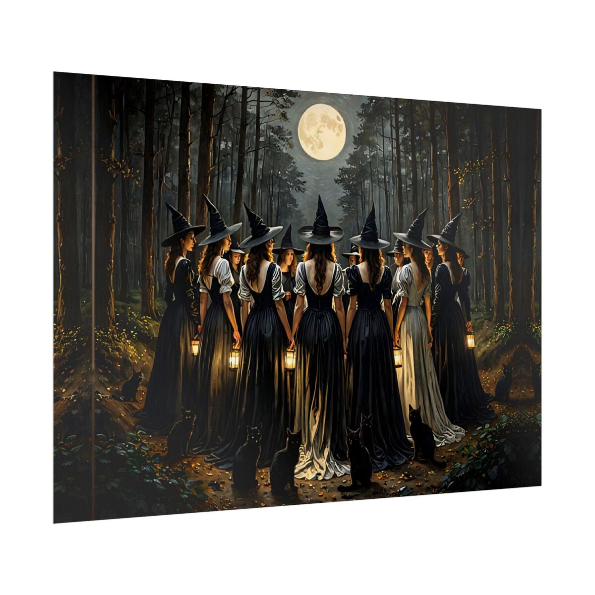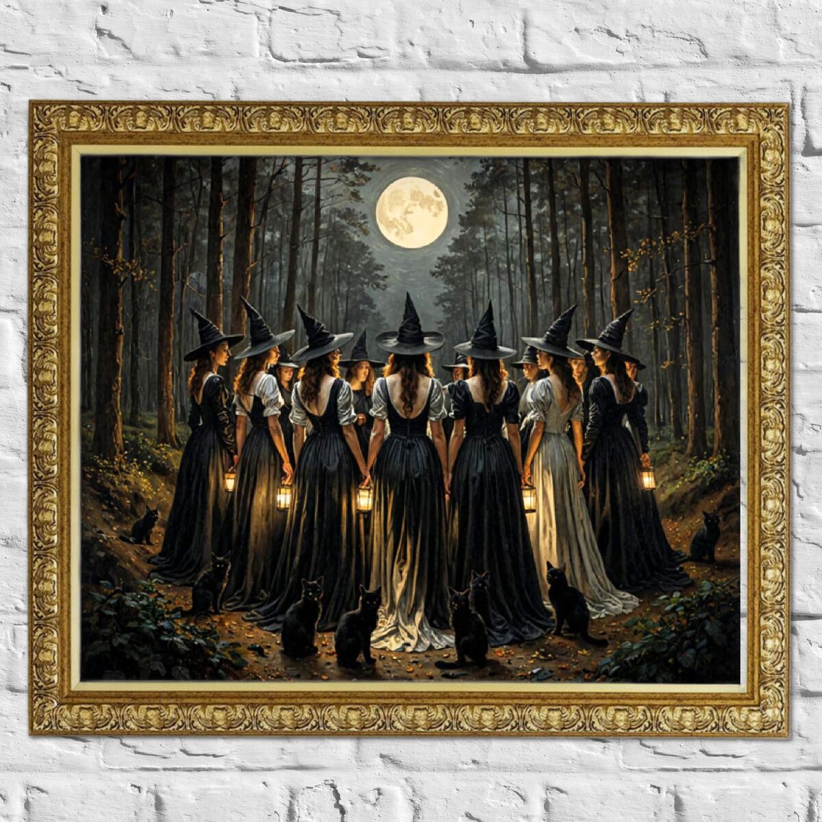 Enhance the ambiance of your living space with this captivating painting Print. This exquisite dark academia print features a mesmerizing witch coven in the forest, exuding an enchanting aura that will add a touch of mystique to any room. This is a print of the original painting, and is exclusive to Dreamland