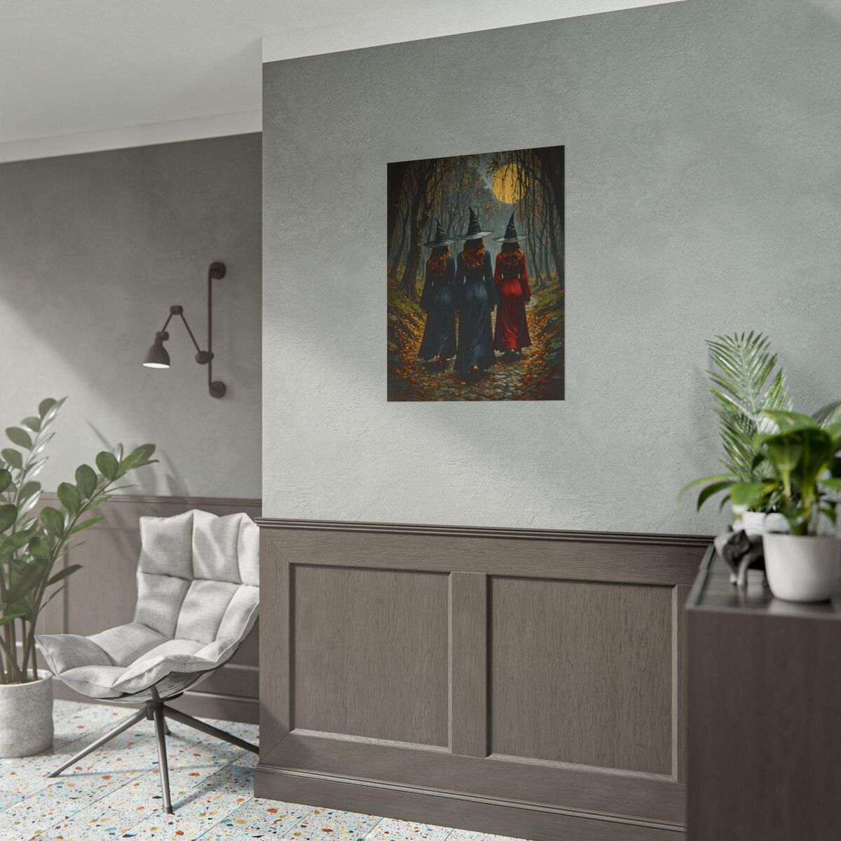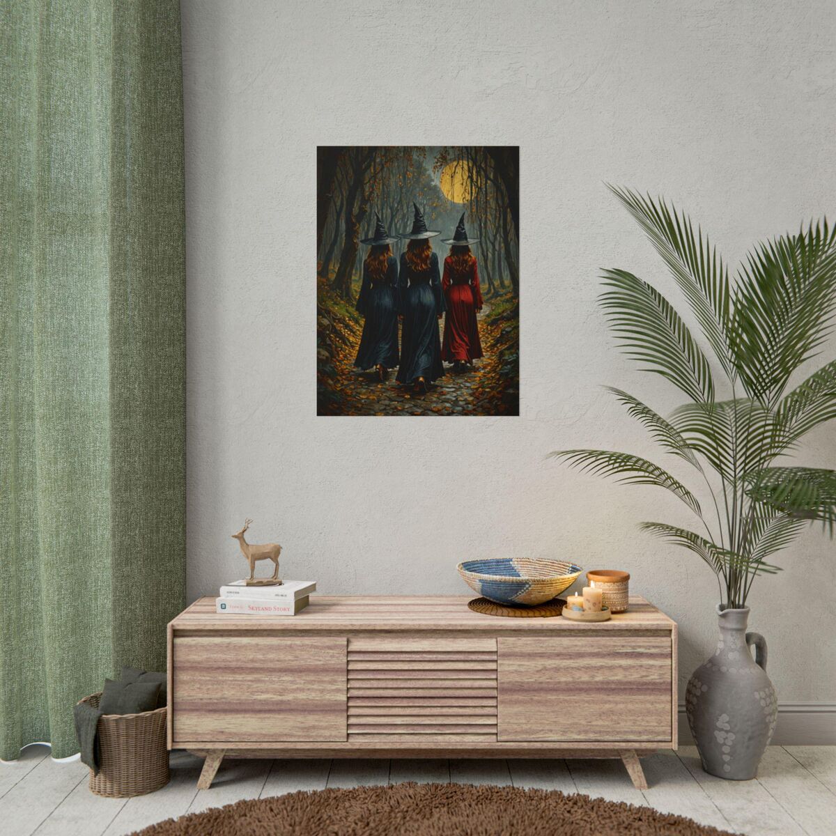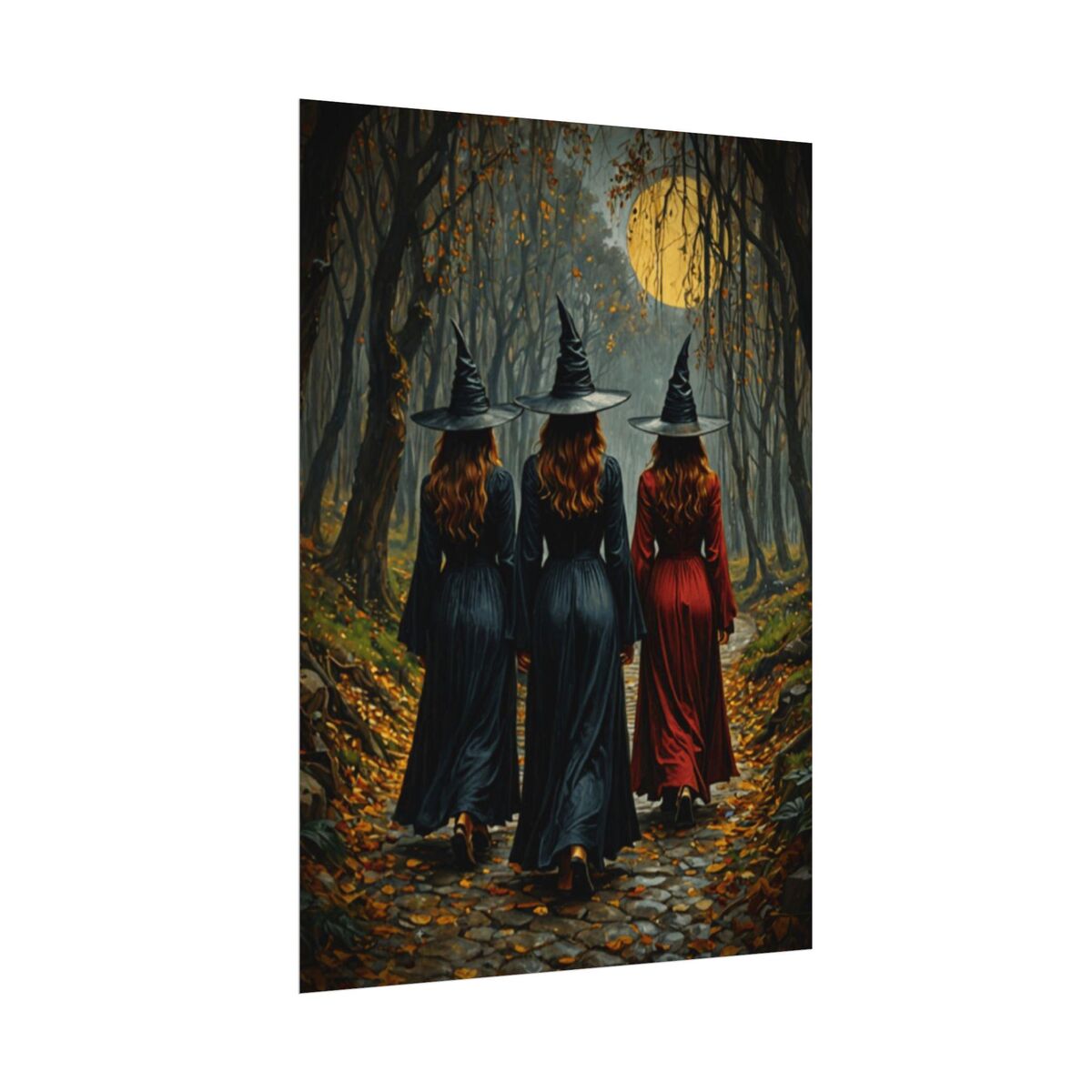 Enhance the ambiance of your living space with this captivating painting Print. This exquisite dark academia print features a mesmerizing witches in the forest, exuding an enchanting aura that will add a touch of mystique to any room. This is a print of the original painting, and is exclusive to Dreamland