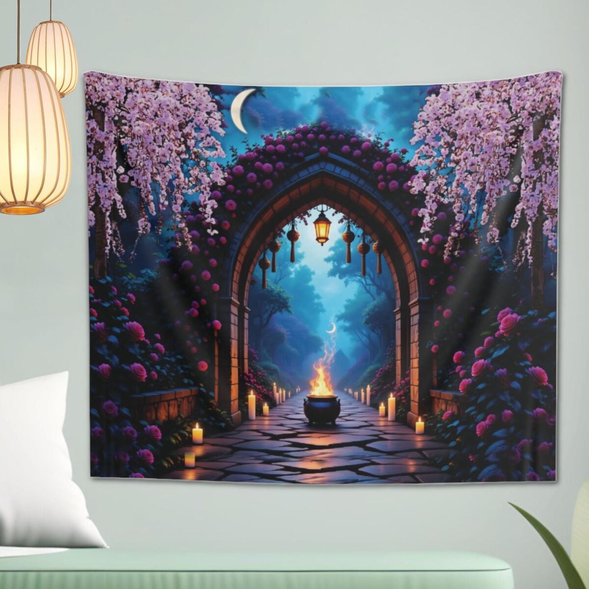 Witches Moon Garden Tapestry Lightweight Indoor Wall Hanging Mystical Witchy Dark Academia Boho Home Decor