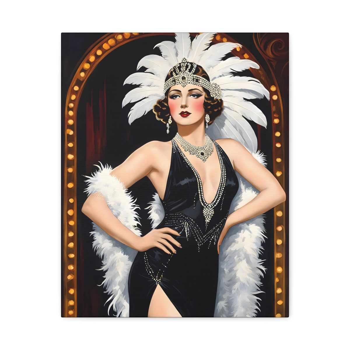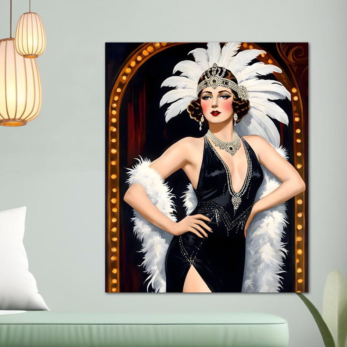 Art Deco Wall Art Showgirl Zeigfeld Girl Canvas Wall Art Print Gatsby GIrl Portrait 1920s Gatsby Style Home Decor Painting Print